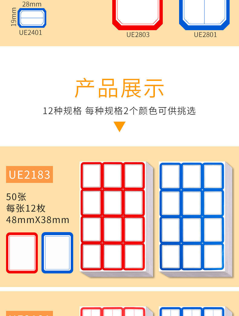 颜色 UE2181B蓝 200张,UE2181C红 200张,UE2183B蓝 200张,UE2183C红 200张,UE2201B蓝 200张,UE2201C红 200张,UE2203B蓝 200张,UE2203C红 200张,UE2401B蓝 200张,UE2401C红 200张,UE2403B蓝 200张,UE2403C红 200张,UE2501B蓝 200张,UE2501C红 200张,UE2503B蓝 200张,UE2503C红 200张,UE2801B蓝 200张,UE2801C红 200张,UE2803B蓝 200张,UE2803C红 200张,UE2901B蓝 200张,UE2901C红 200张,UE2903B蓝 200张,UE2903C红 200张,混装4款A 共200张,混装4款B 共200张