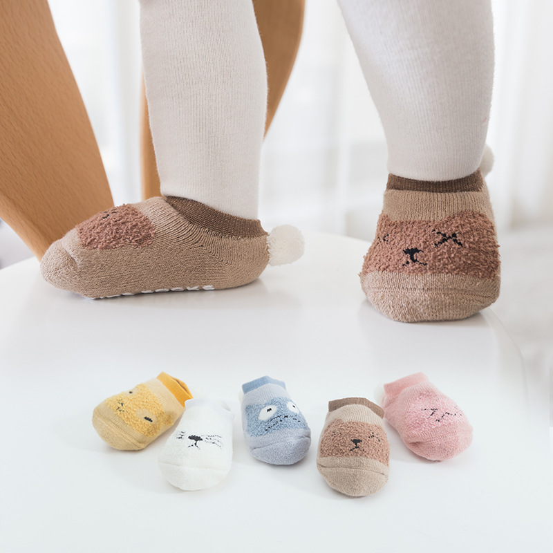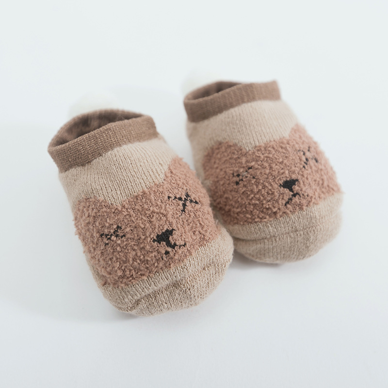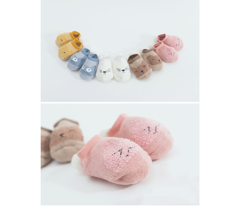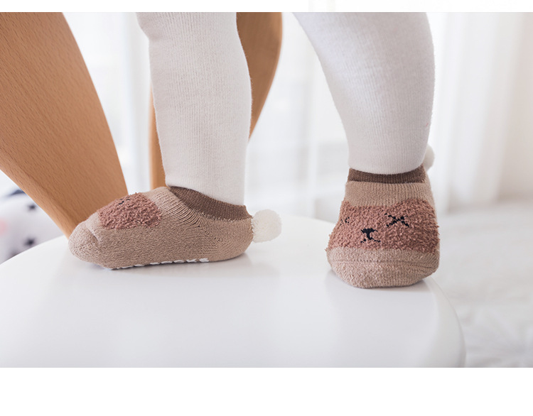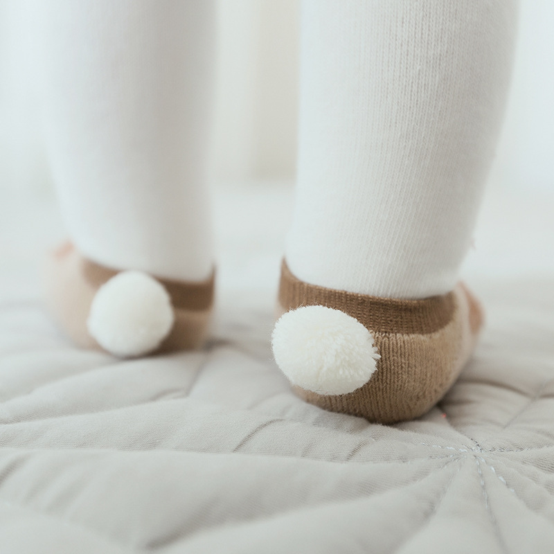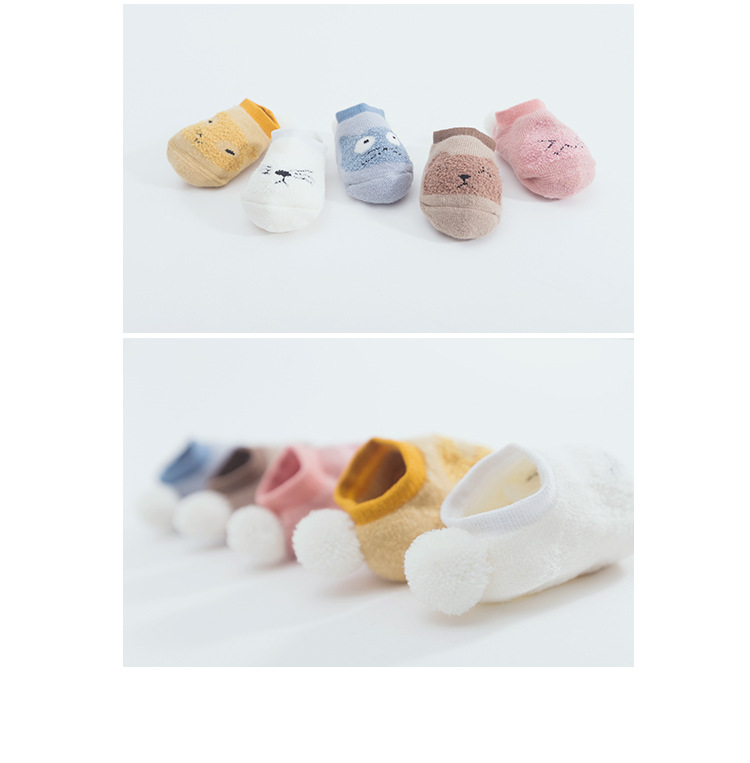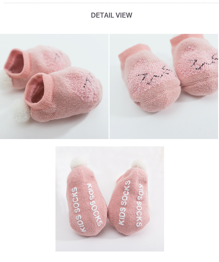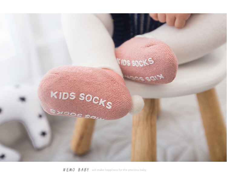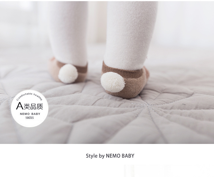 春秋宝宝地板袜子防滑婴儿鞋袜套后跟球球可爱儿童船袜学步室内