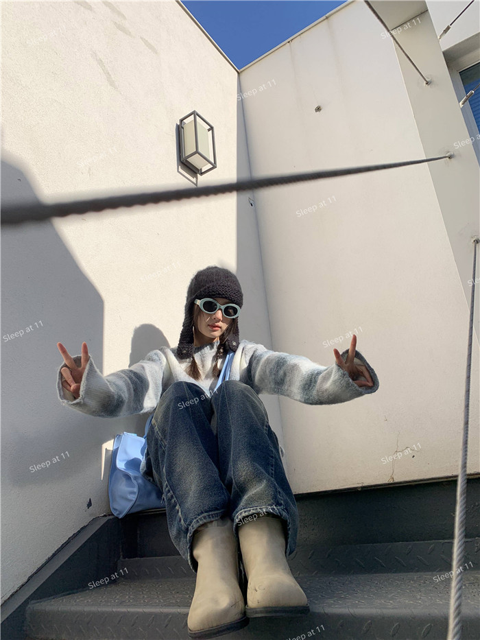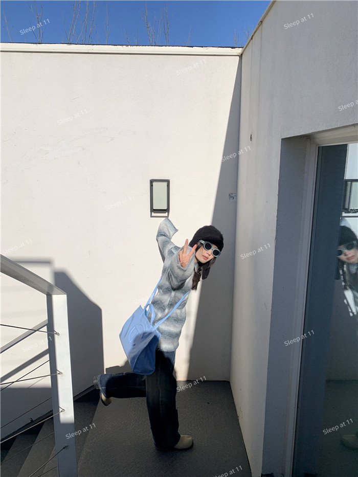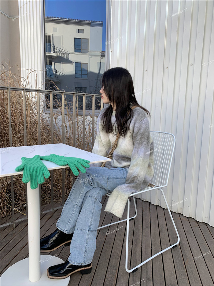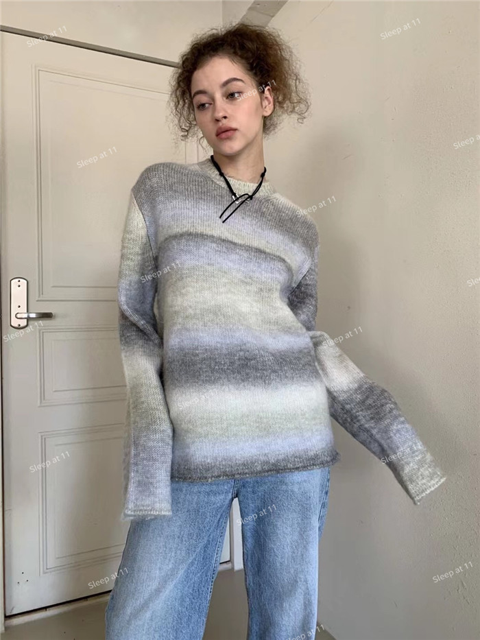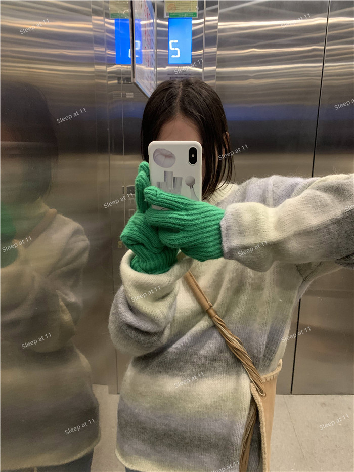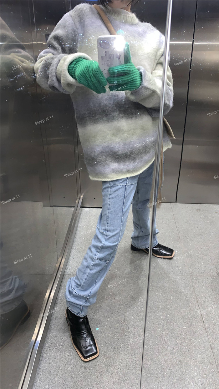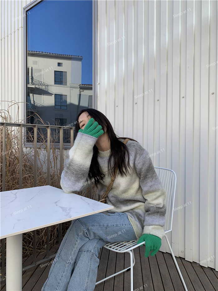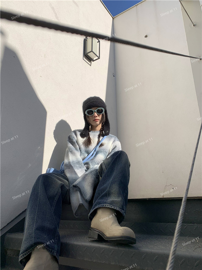sleep at 11變身韓劇溫柔女主 慵懶個性漸層寬鬆舒適條紋圓領毛衣