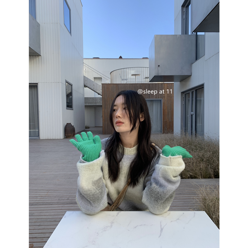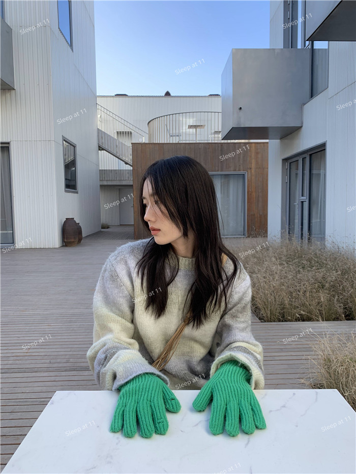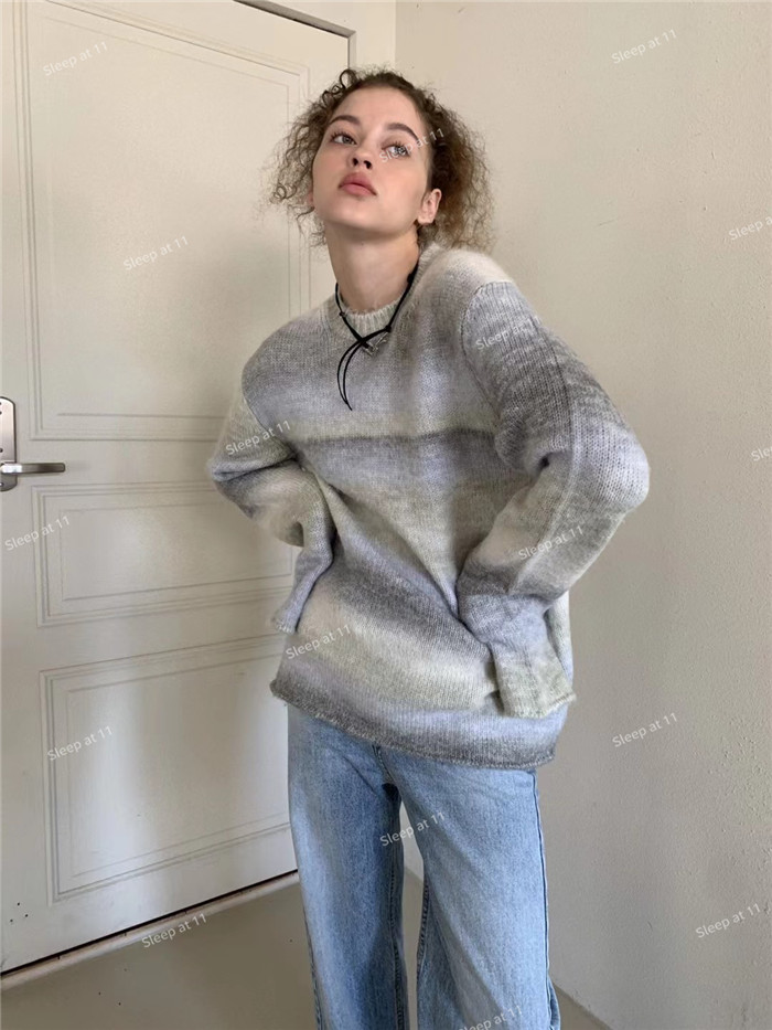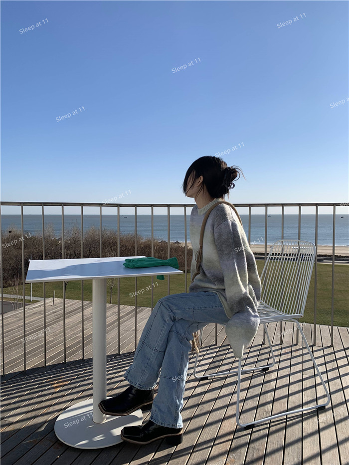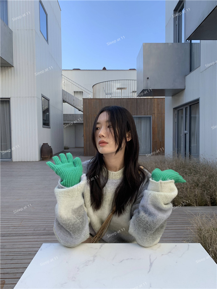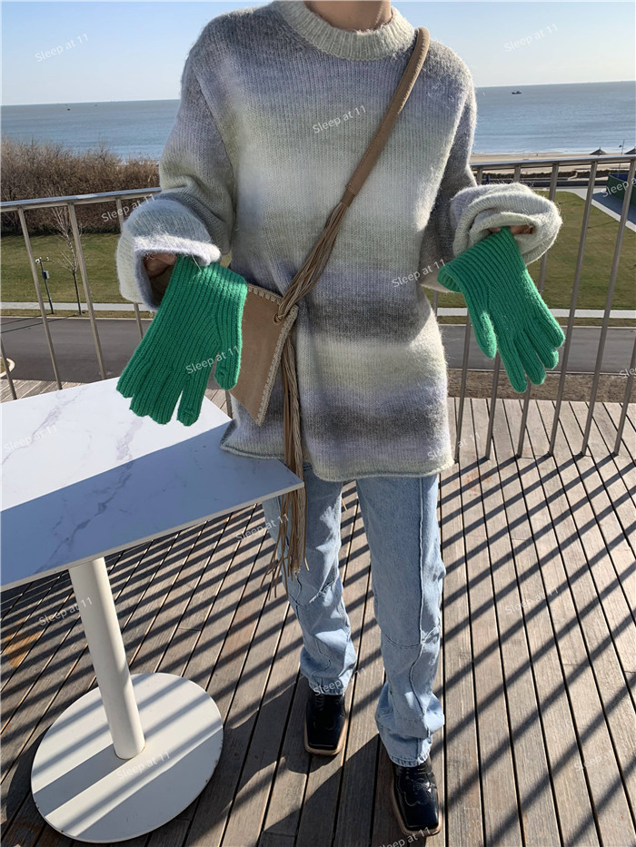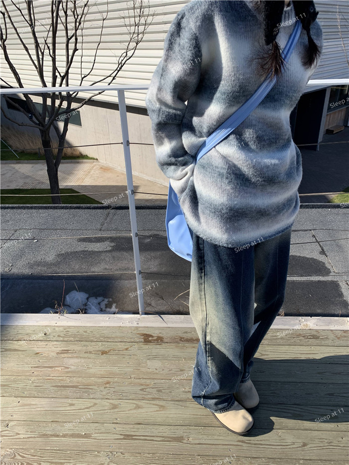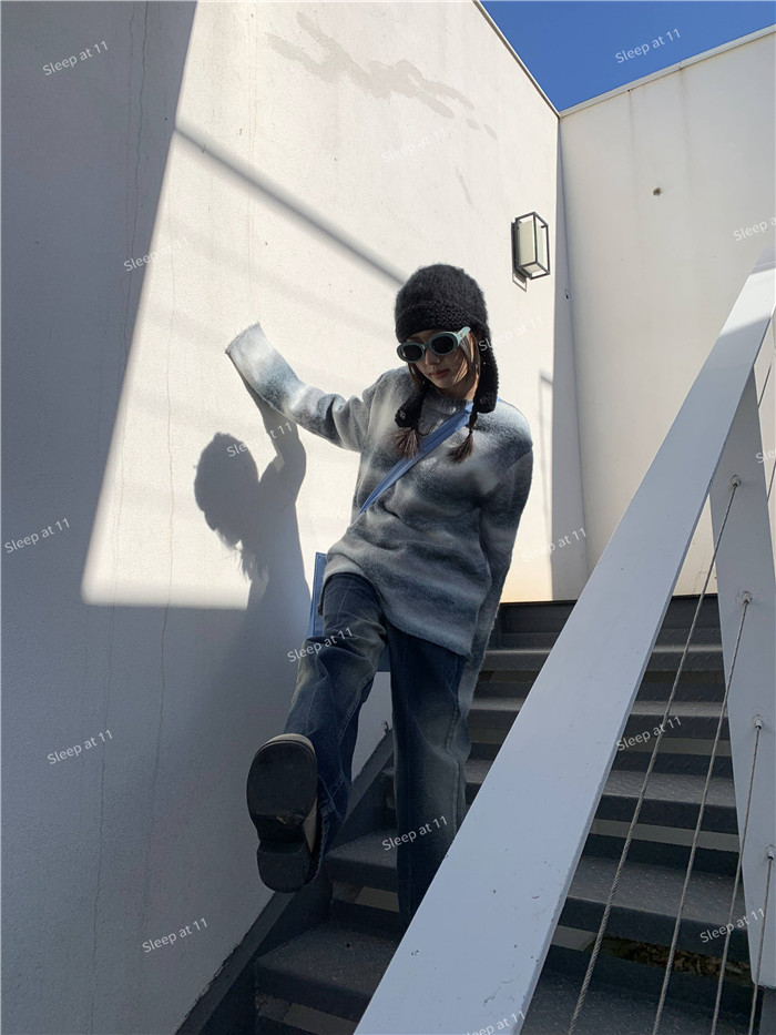 sleep at 11變身韓劇溫柔女主 慵懶個性漸層寬鬆舒適條紋圓領毛衣