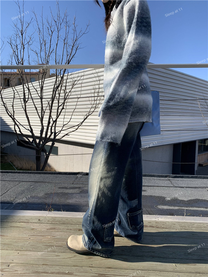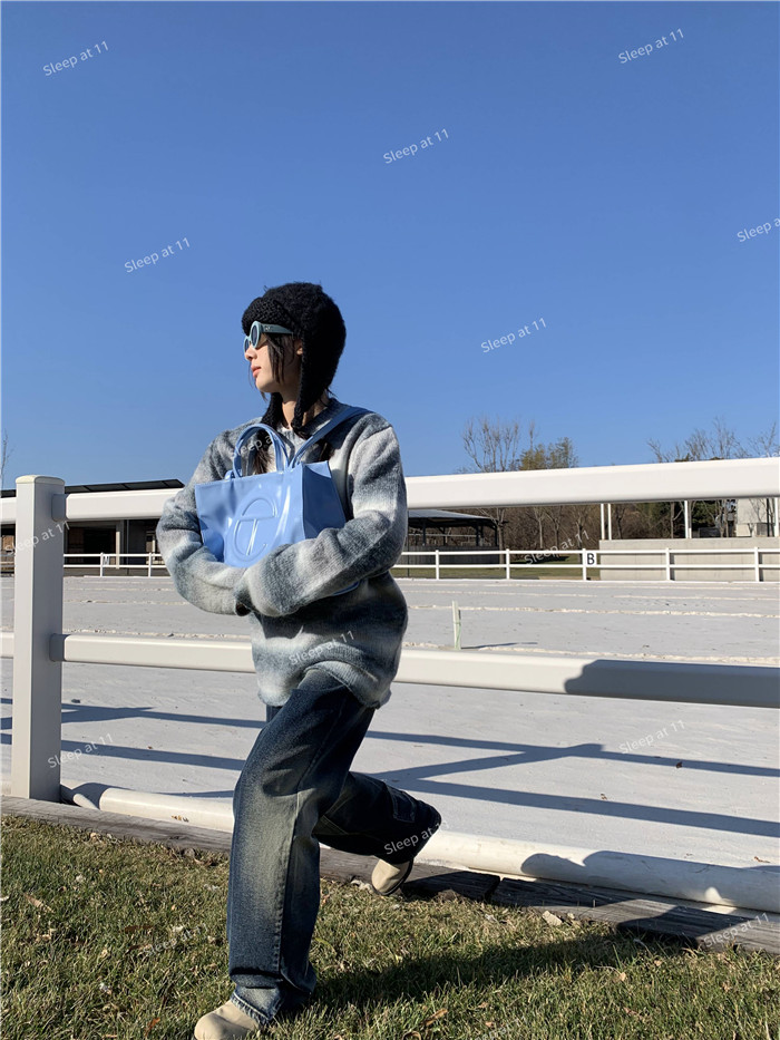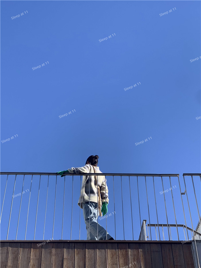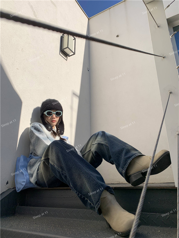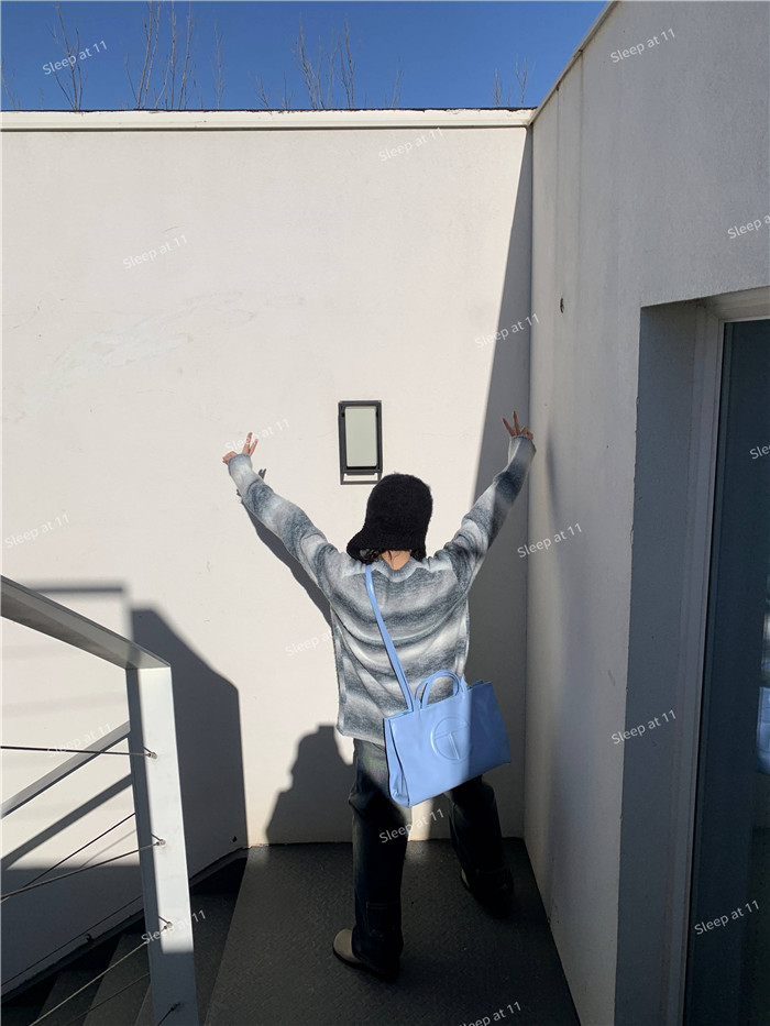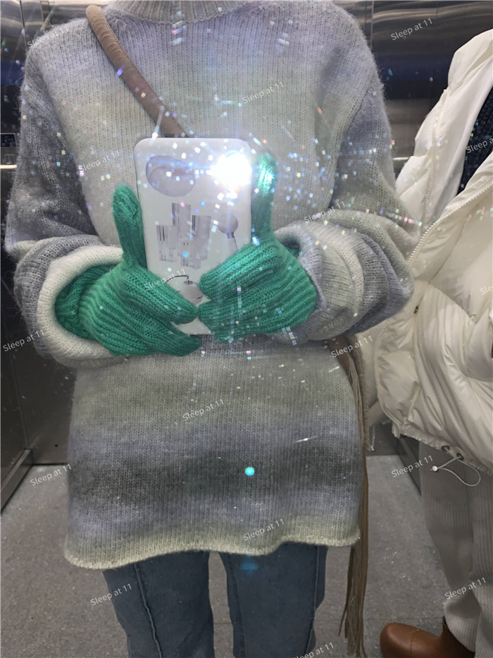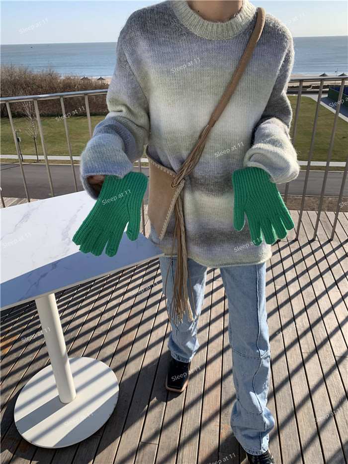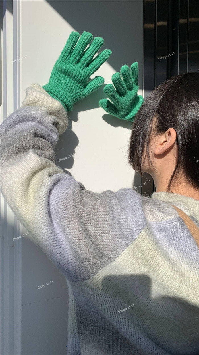 sleep at 11變身韓劇溫柔女主 慵懶個性漸層寬鬆舒適條紋圓領毛衣