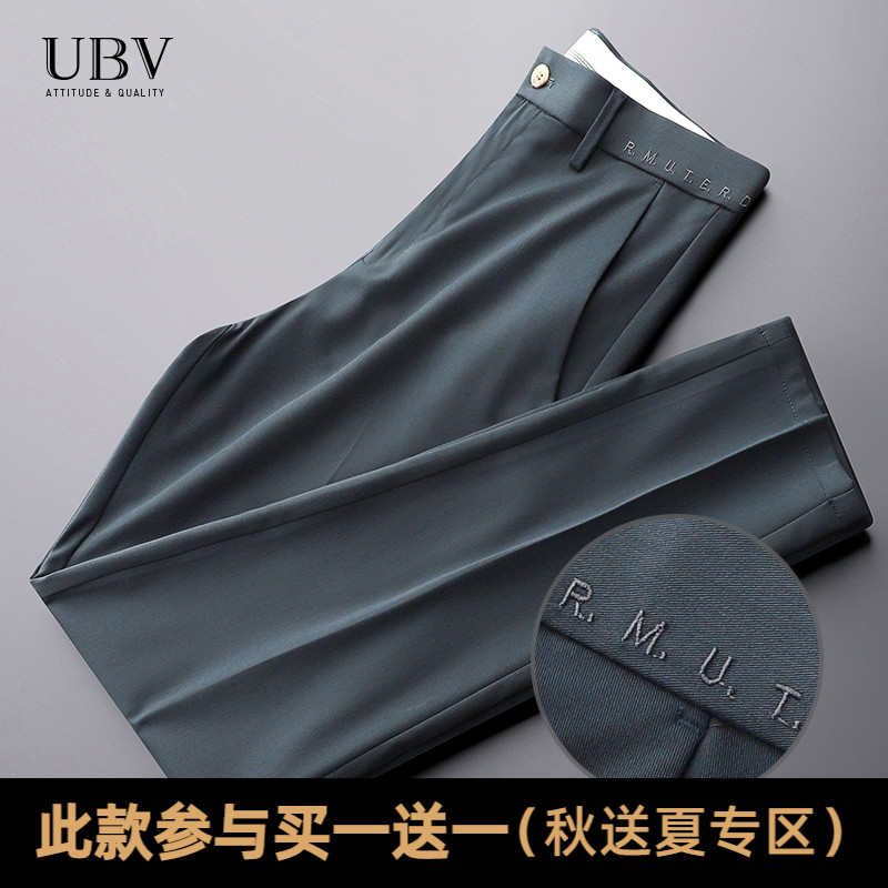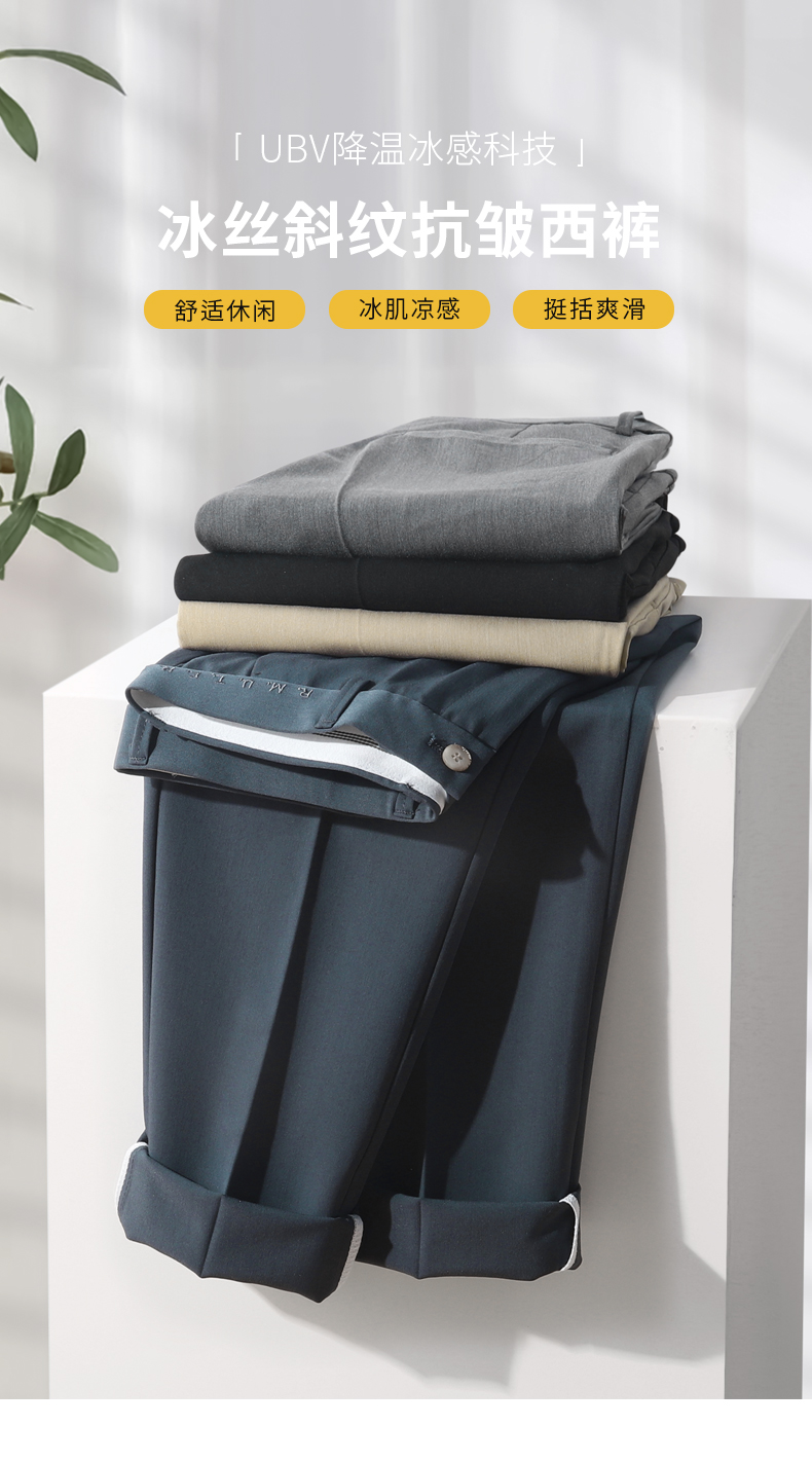 UBV夏季休閒褲子商務冰絲西裝褲男士2023新款春秋薄修身九分西褲