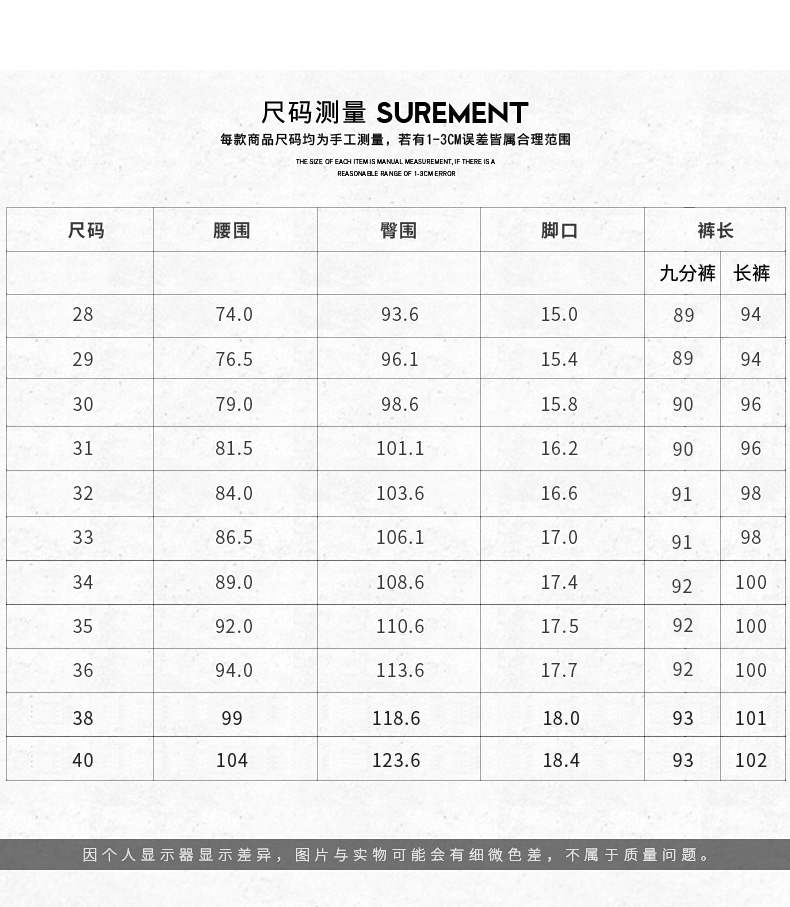 尺碼 28 29 30 31 32 33 34 36 35 38 40