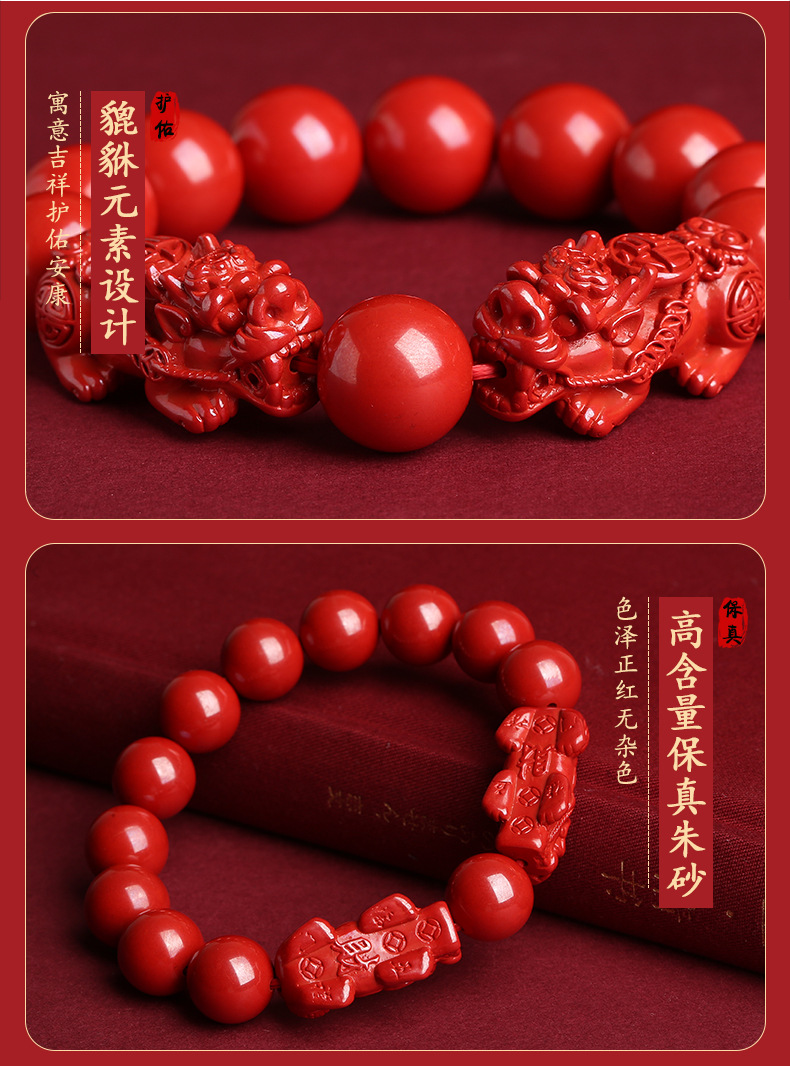 原矿天然朱砂貔貅手串男女生肖兔虎本命年转运帝王砂皮丘手链
