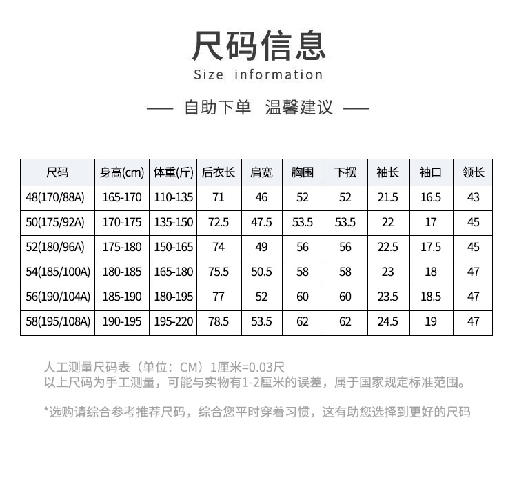尺碼 48 50 52 54 56