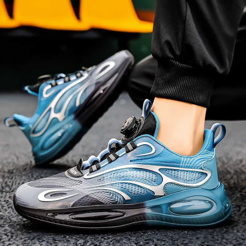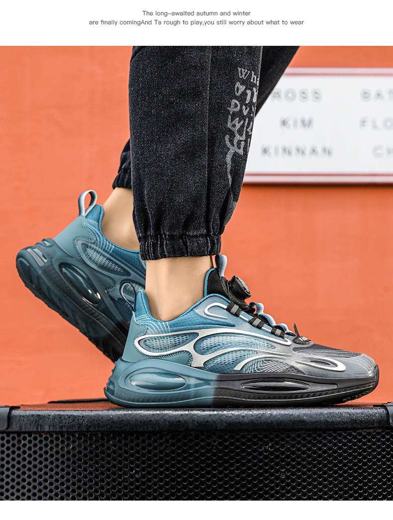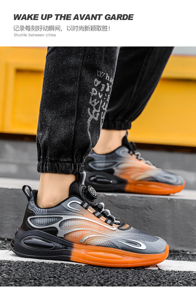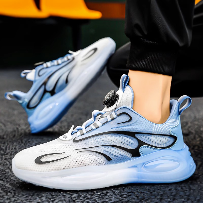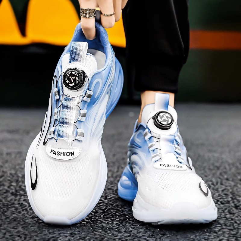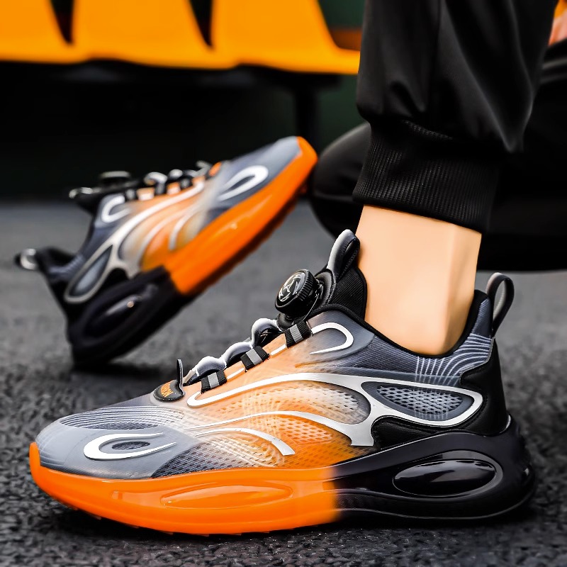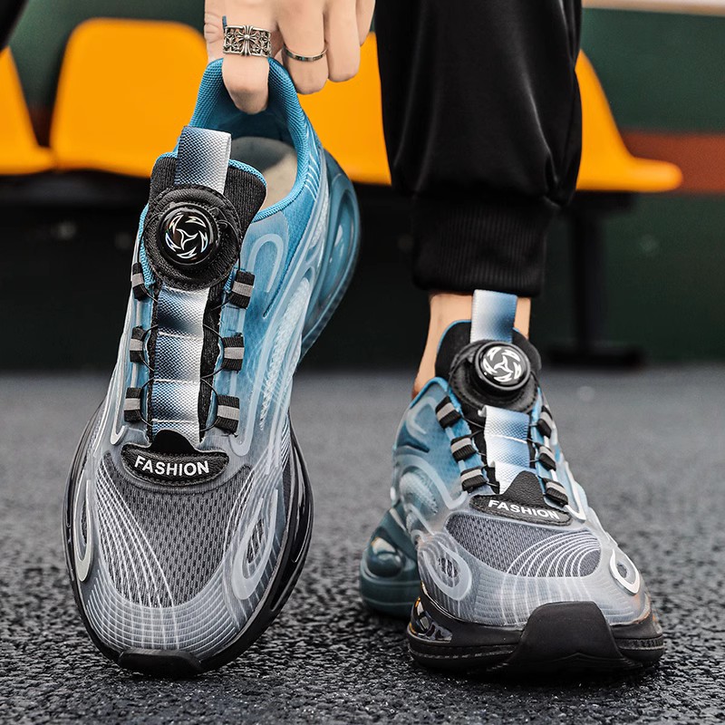 男鞋秋季透氣旋轉鈕釦網面休閒運動鞋青少年減震氣墊鞋子潮鞋男款