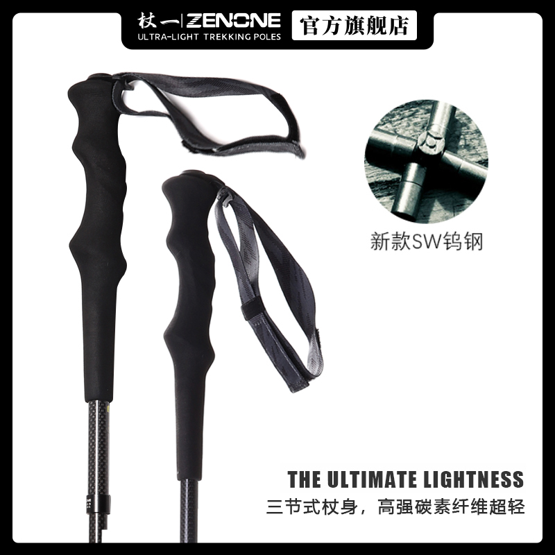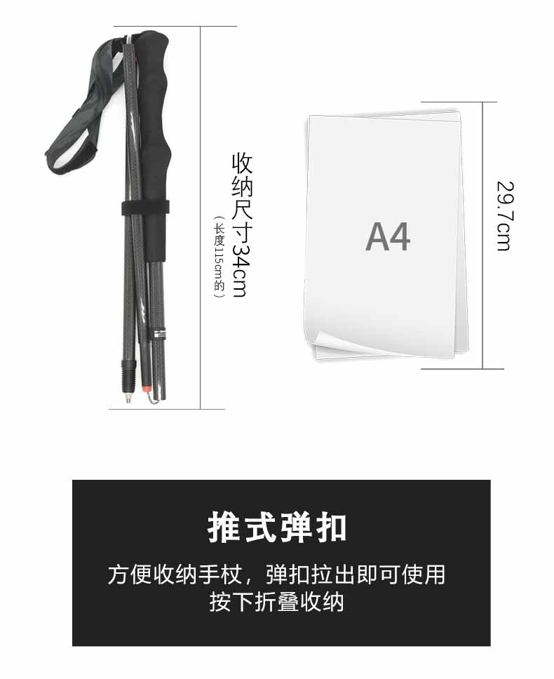 杖一酷黑定製款碳纖維登山杖 超輕摺疊碳素徒步越野手杖戶外Z2003