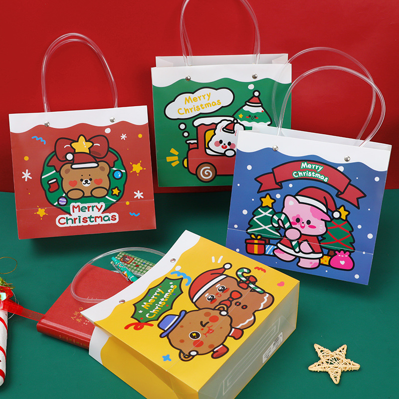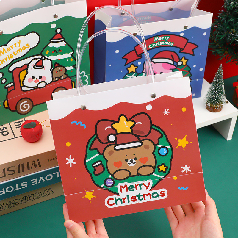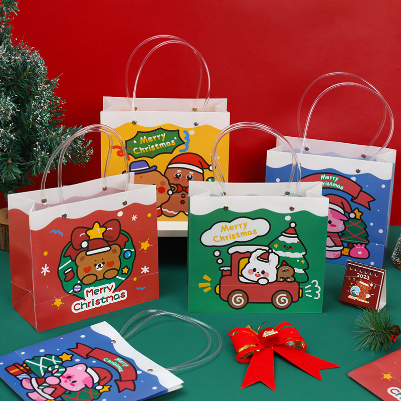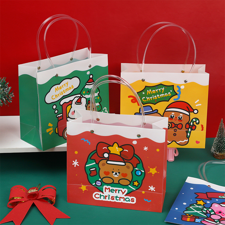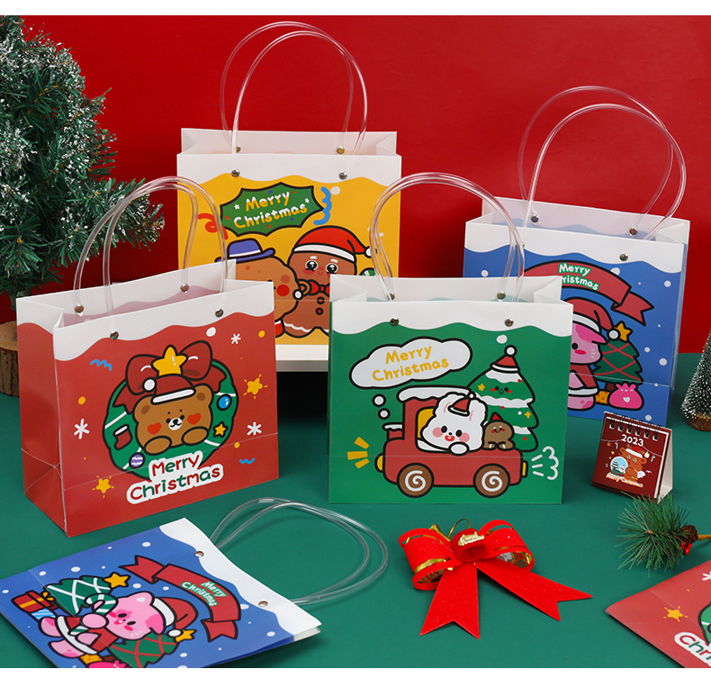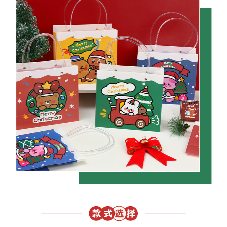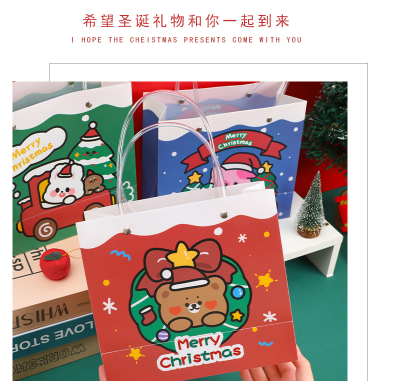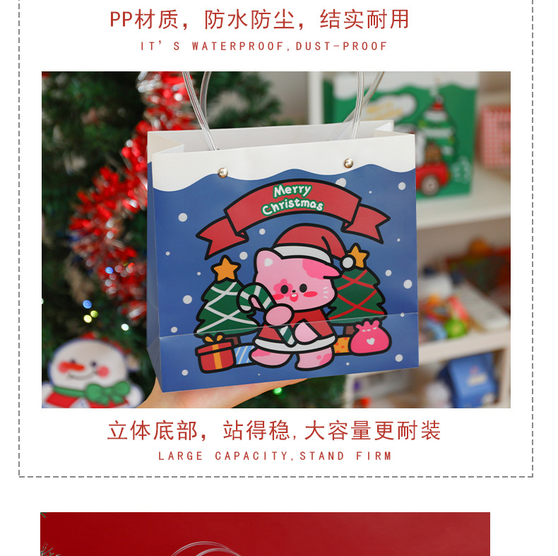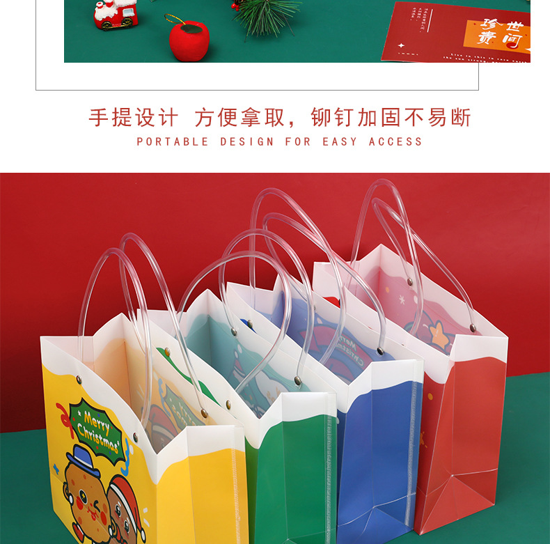 ins可爱圣诞礼品袋 圣诞节礼物包装袋高颜值pvc便携手提收纳袋