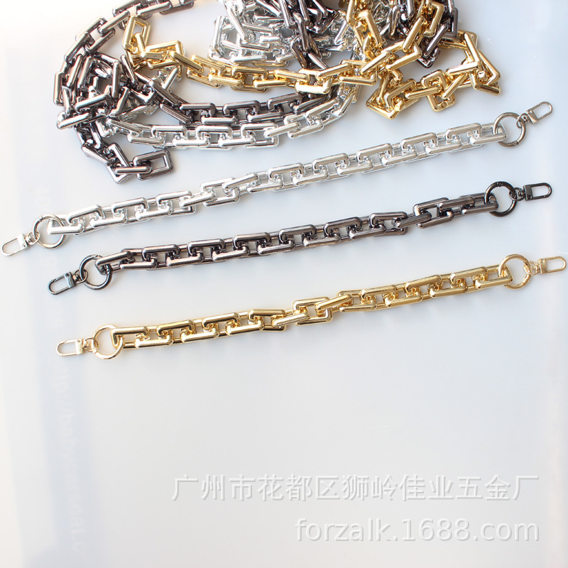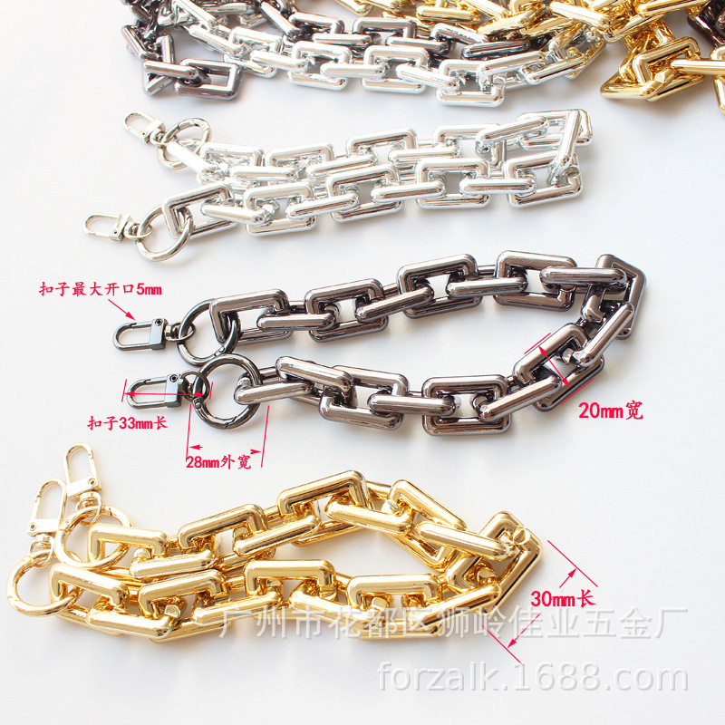 三、本店提供加工服务,你可以选好链条跟扣子及要剪的长度给客服,我们可以收加工费帮您加工成成品,如果有需要可以联系客服(加工需外发,发货时间会延后)。如果购买链条请看好算好长度,按米卖的是没加扣的。如果按条算的话都是一般都是两边加好扣子的。如果是手提一般为40-50cm,单肩一般为100cm,斜挎一般为110-120cm左右。以上只是推荐,因为个人身高及包包所到的位置不同,如果要准确的最好自己拿米尺量下哦。