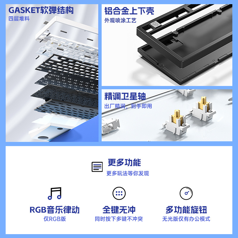颜色 【雪域白】单模RGB版-单套件,【曜石黑】单模无光版-单套件,【奶白紫】冰清轴-原厂键帽,【迷踪绿】积木轴V2-MDA键帽,【宇航员】积木轴V2-SOA键帽