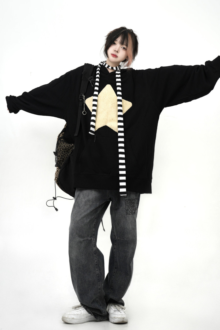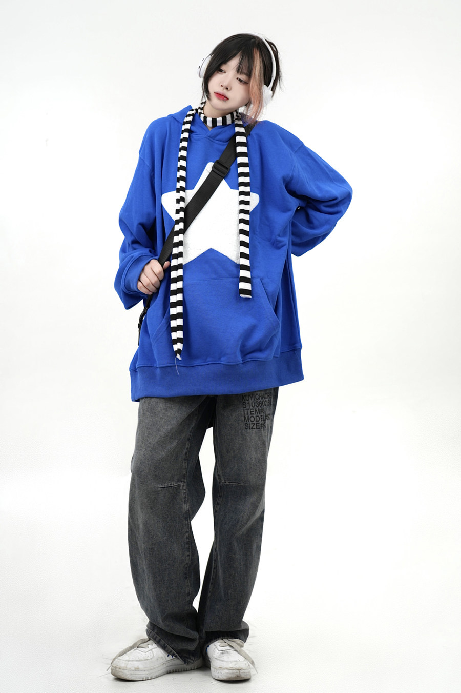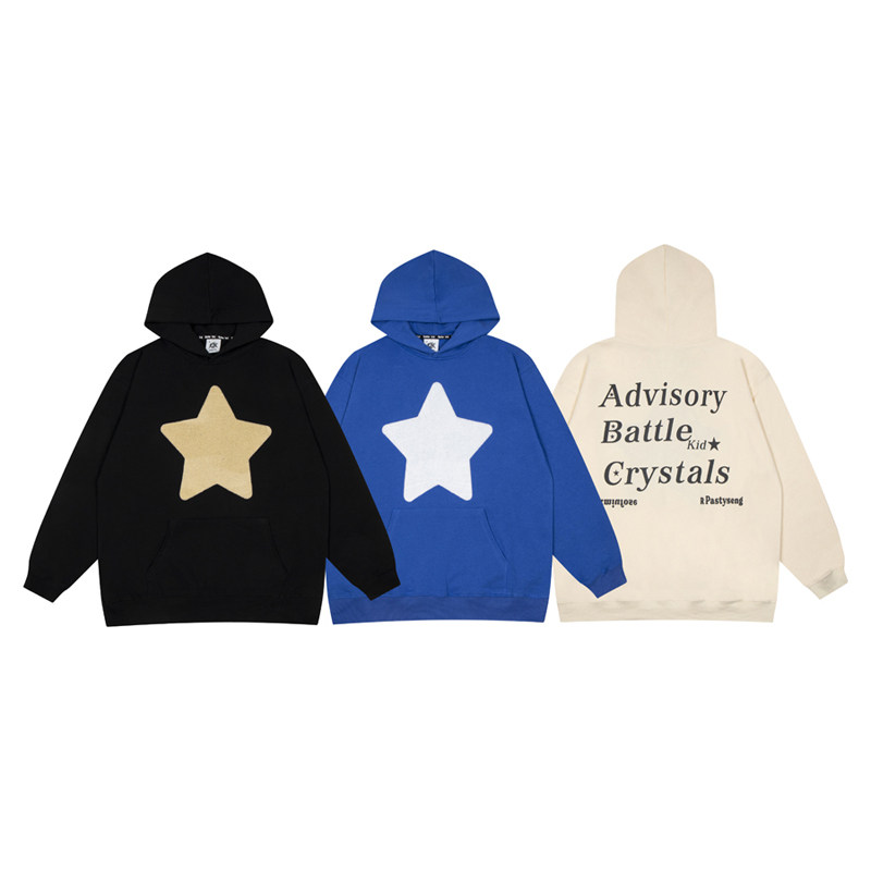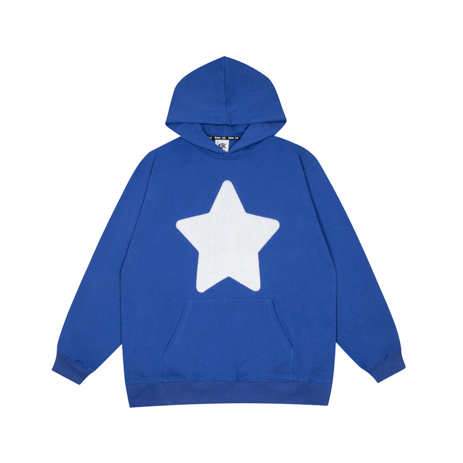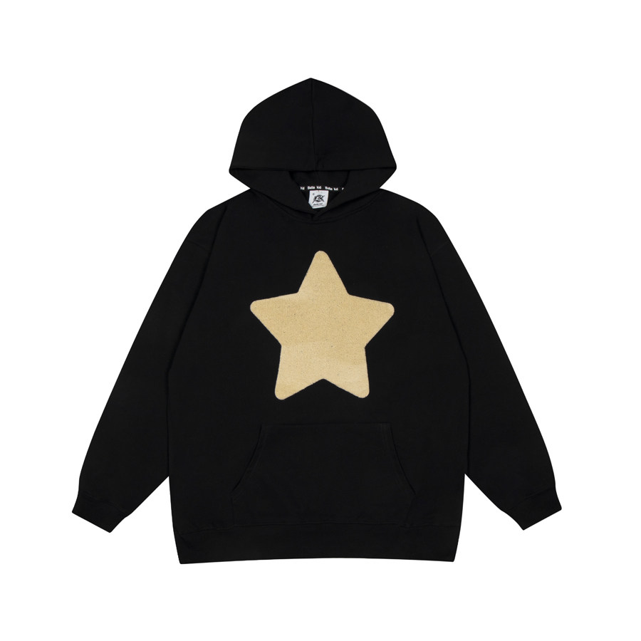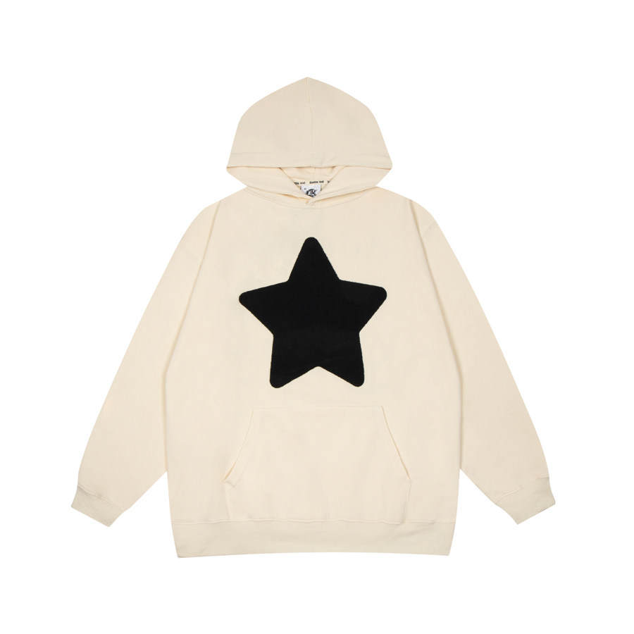 咖哩人美式復古毛圈繡五角星男女連帽運動衫ins寬鬆字母情侶上衣潮