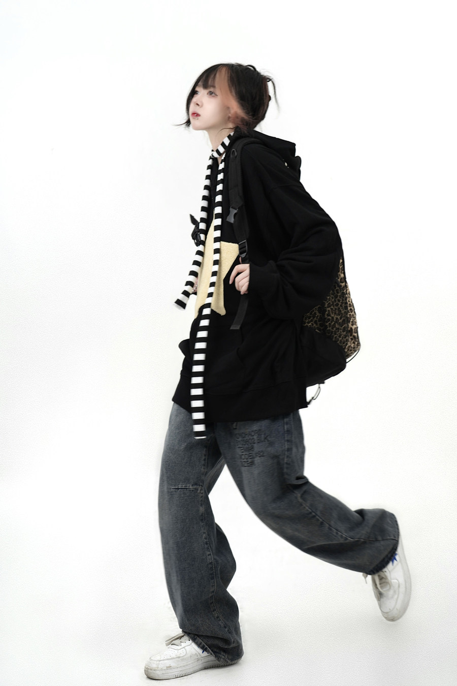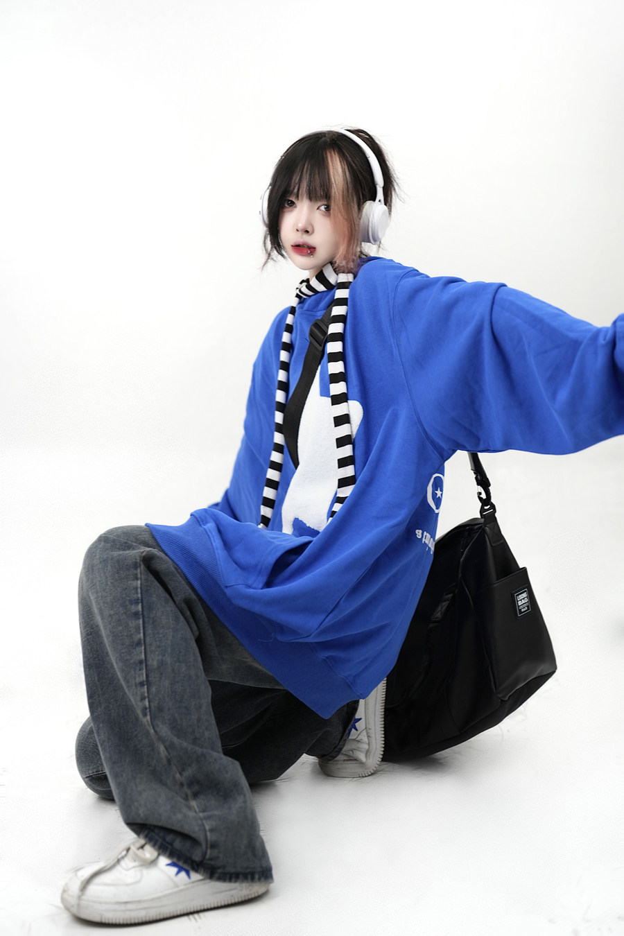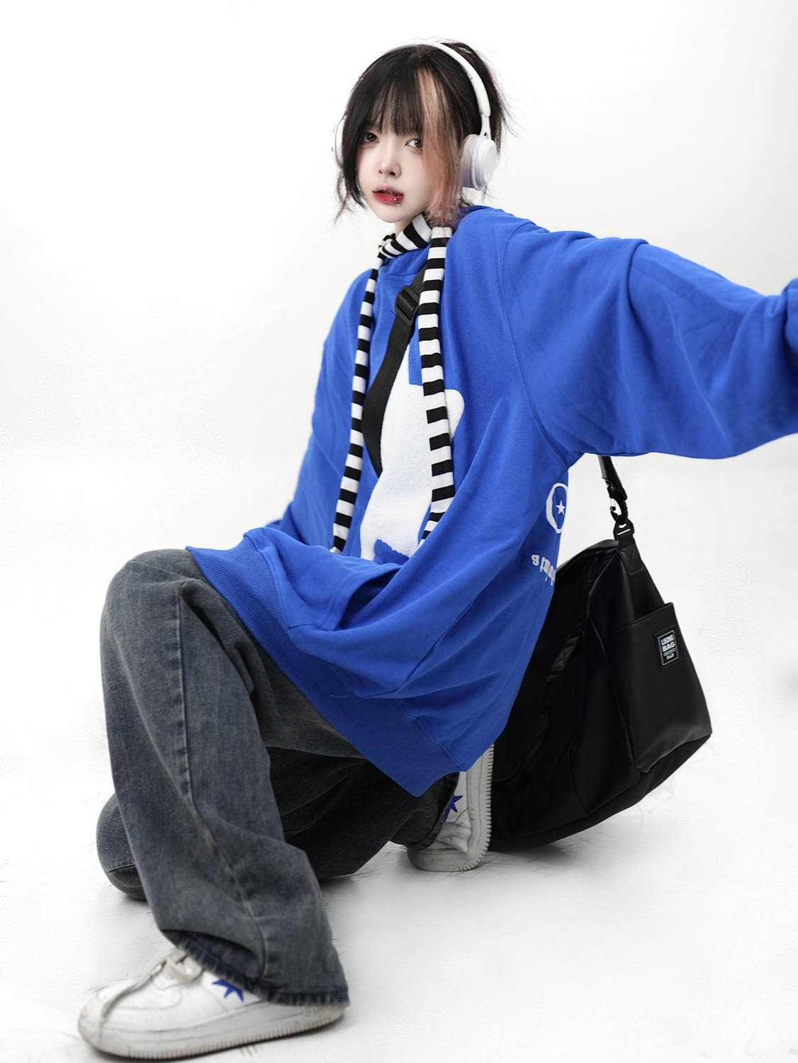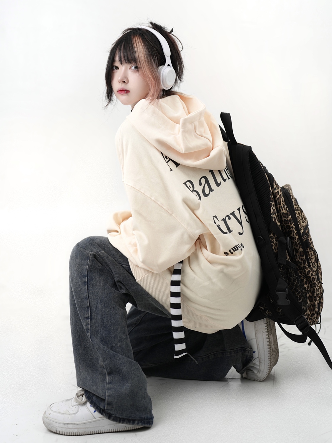 咖哩人美式復古毛圈繡五角星男女連帽運動衫ins寬鬆字母情侶上衣潮