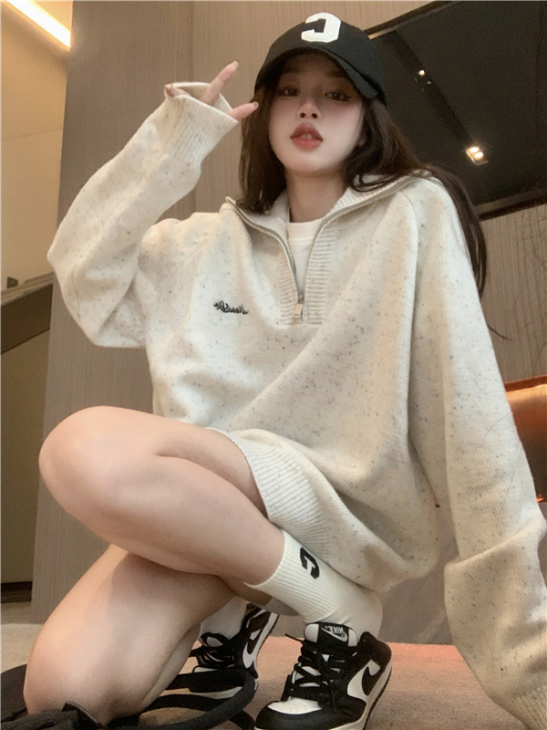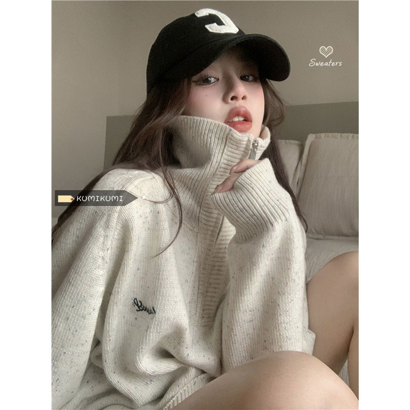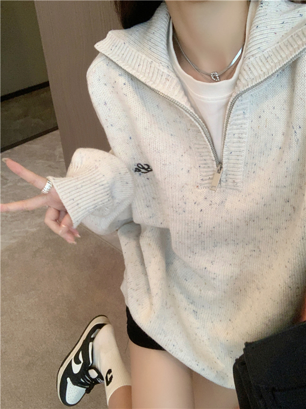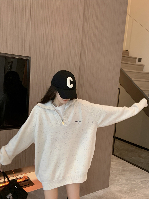 小眾慵懶風2023新款復古針織衫加厚毛衣女冬季寬鬆設計感套頭上衣