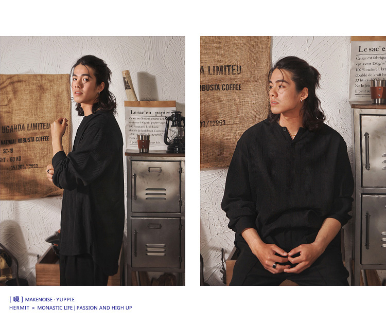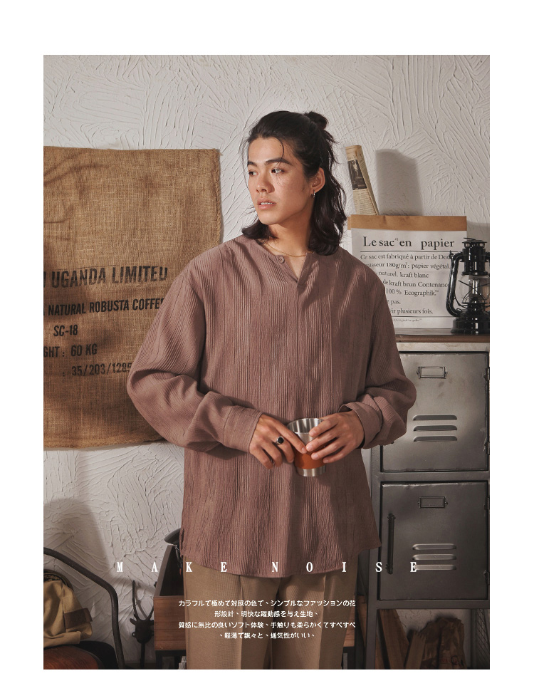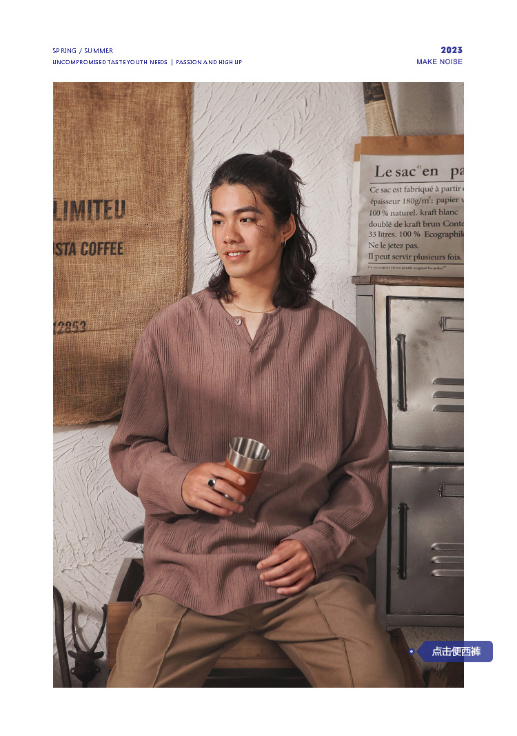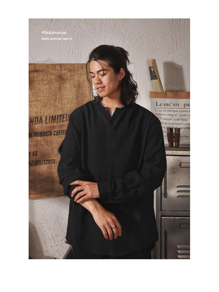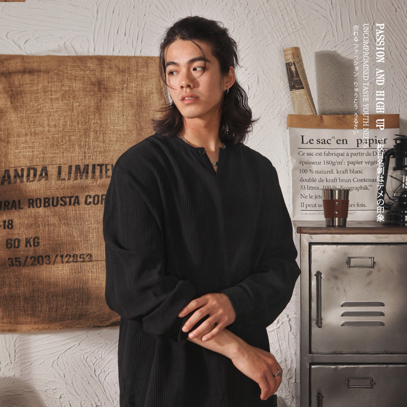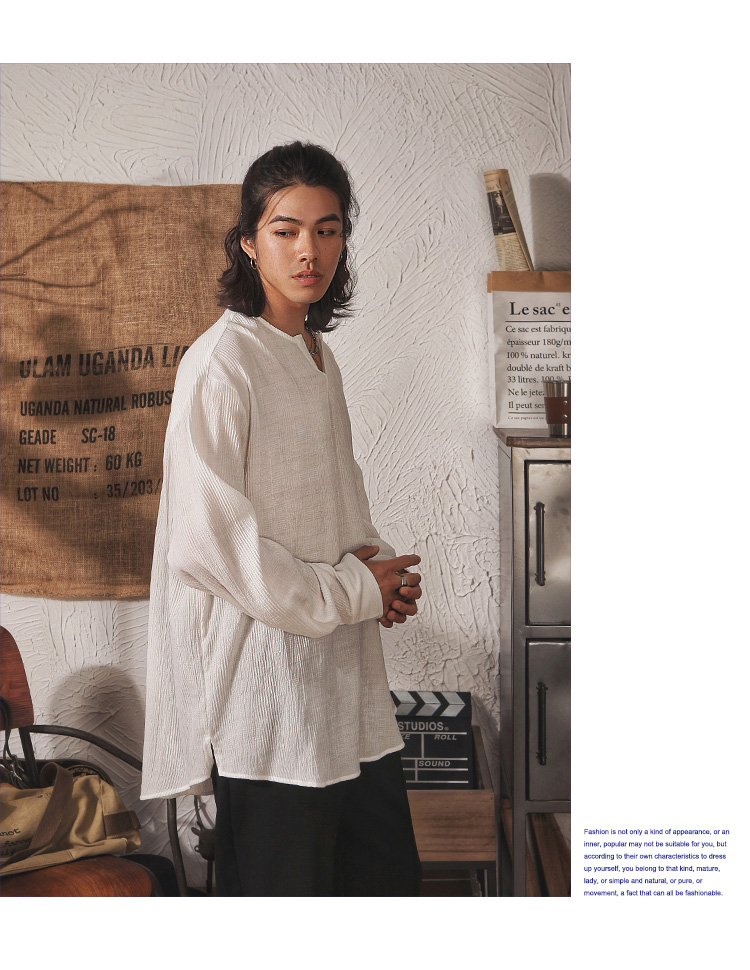 夏季垂墜感輕薄款長袖T恤男美式復古硬漢純色寬鬆V領打底亨利衫