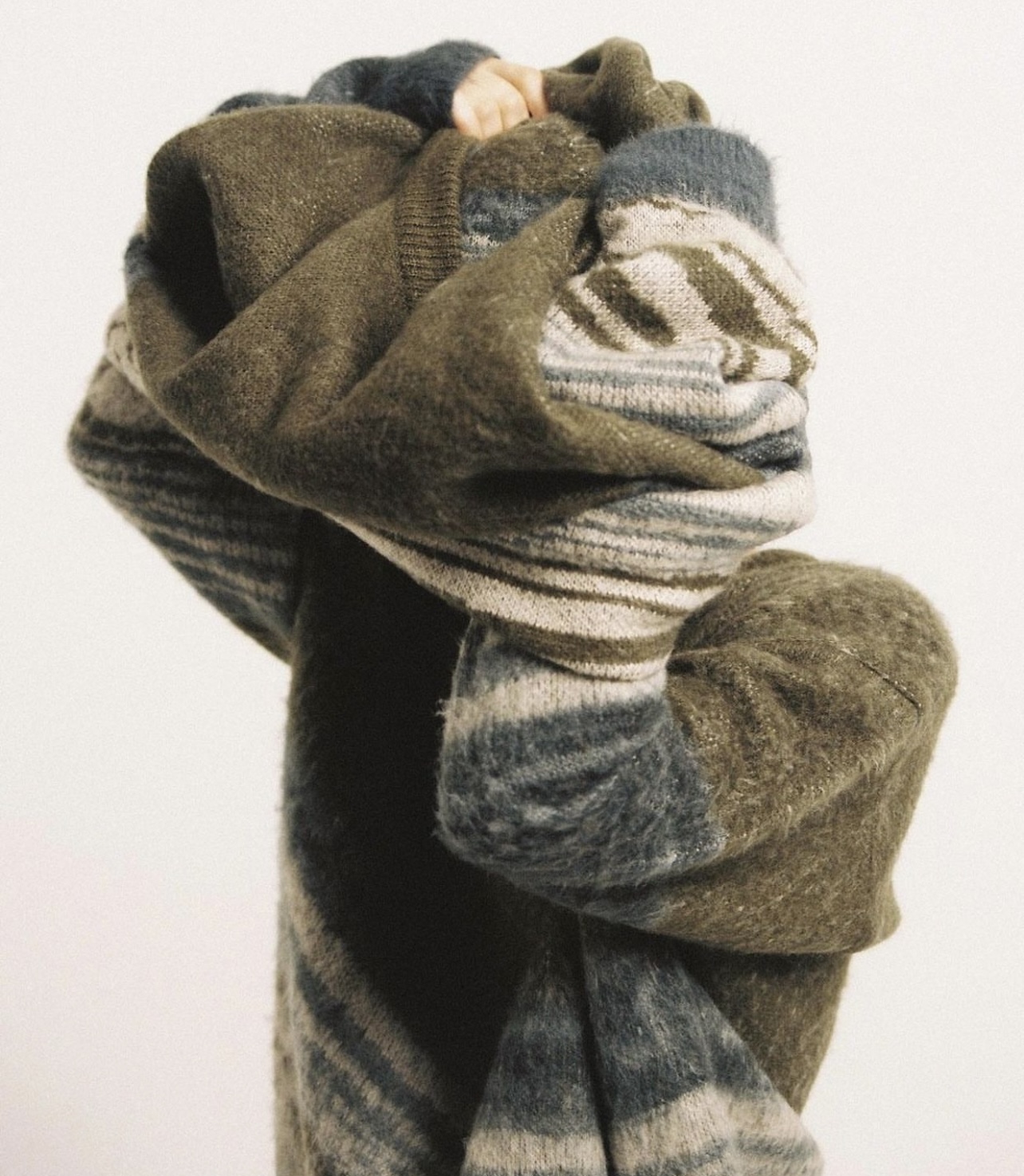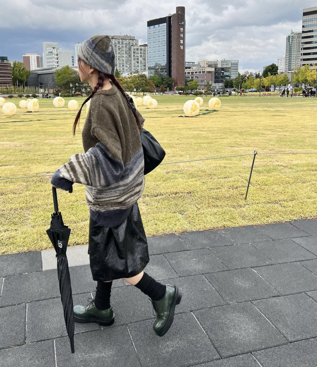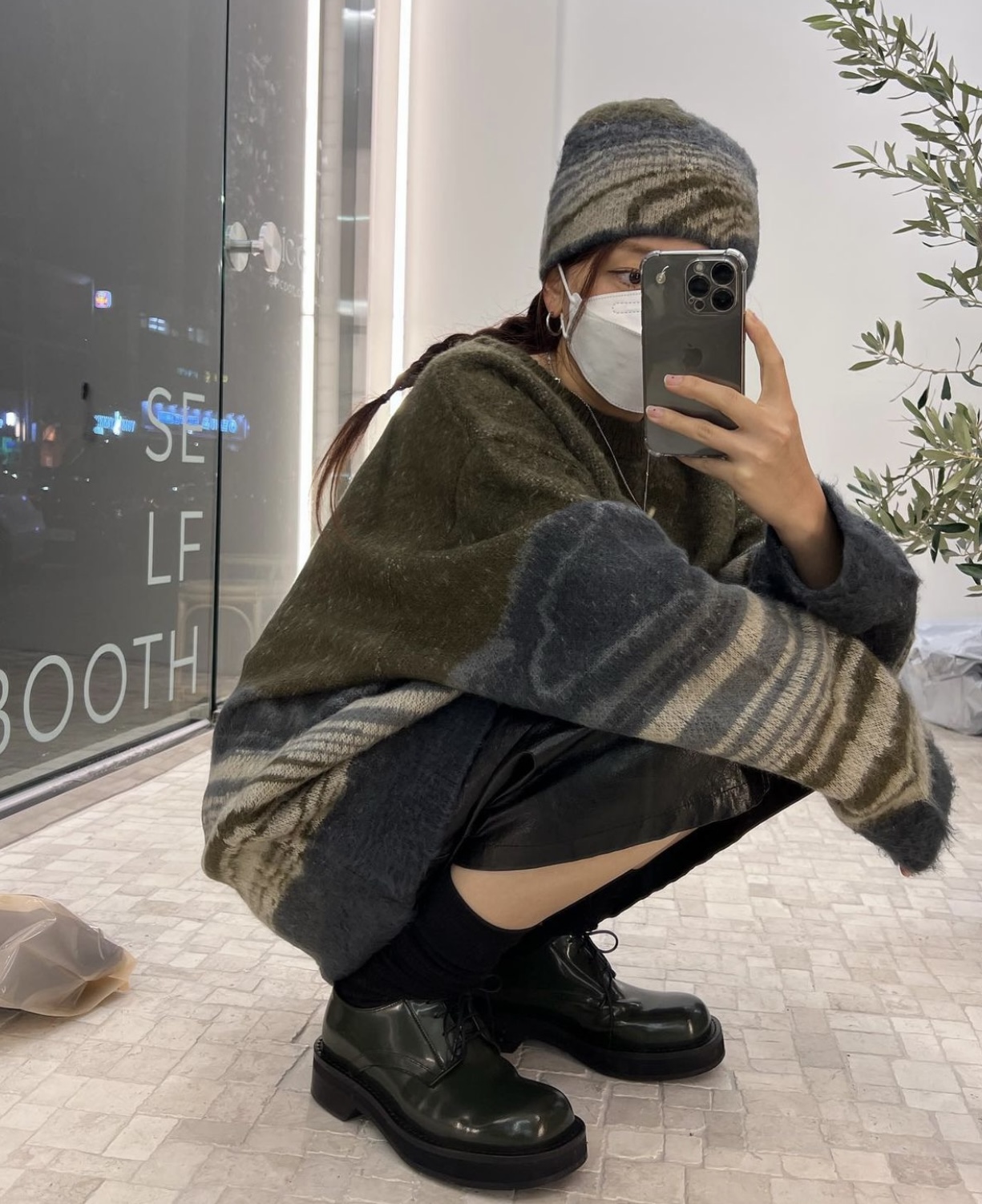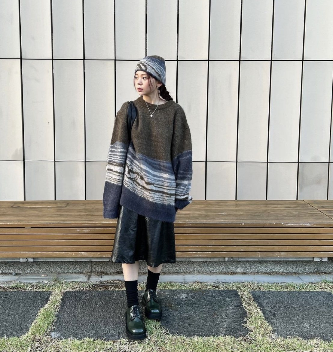 Unique SEI 復古百搭街頭個性抽象圖案拼色圓領寬鬆休閒套頭毛衣