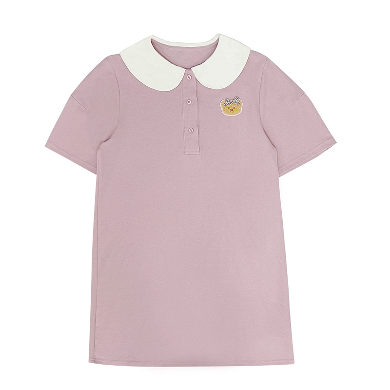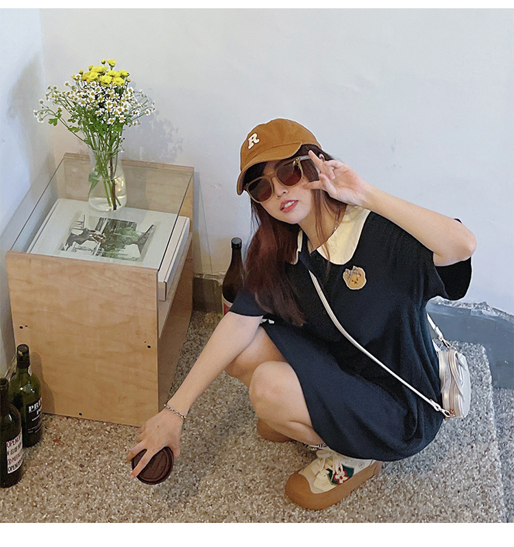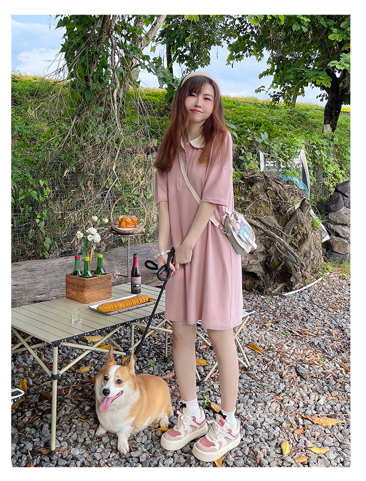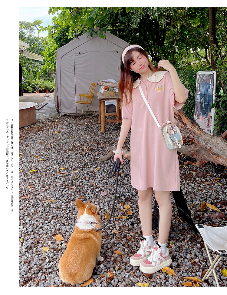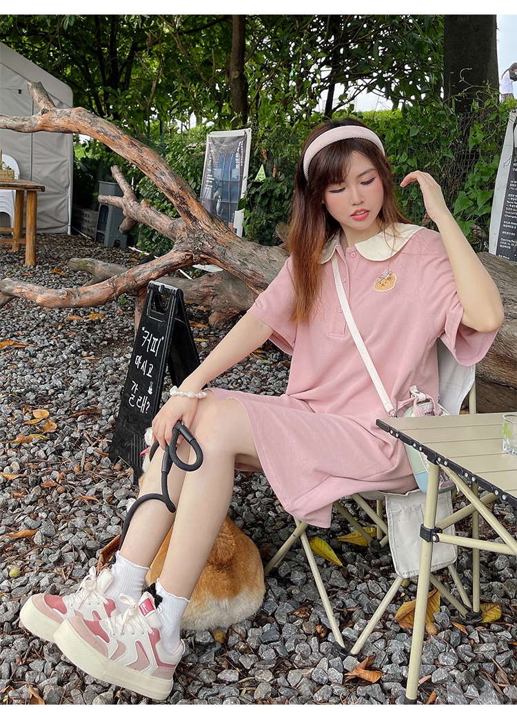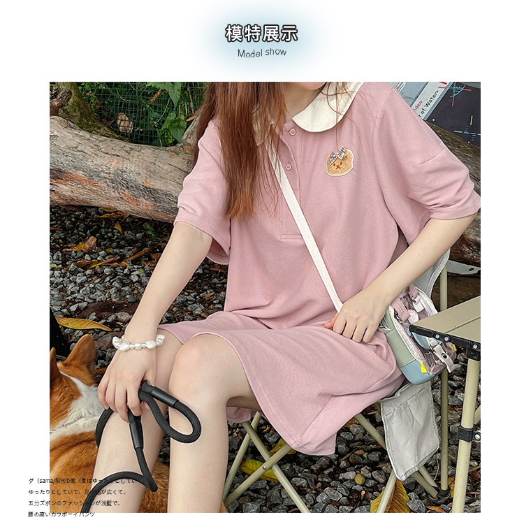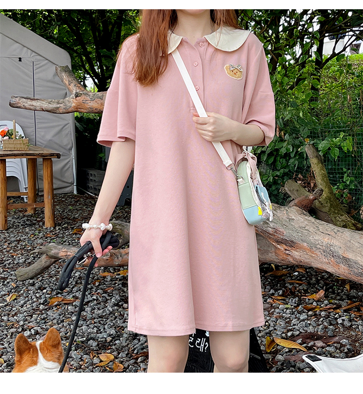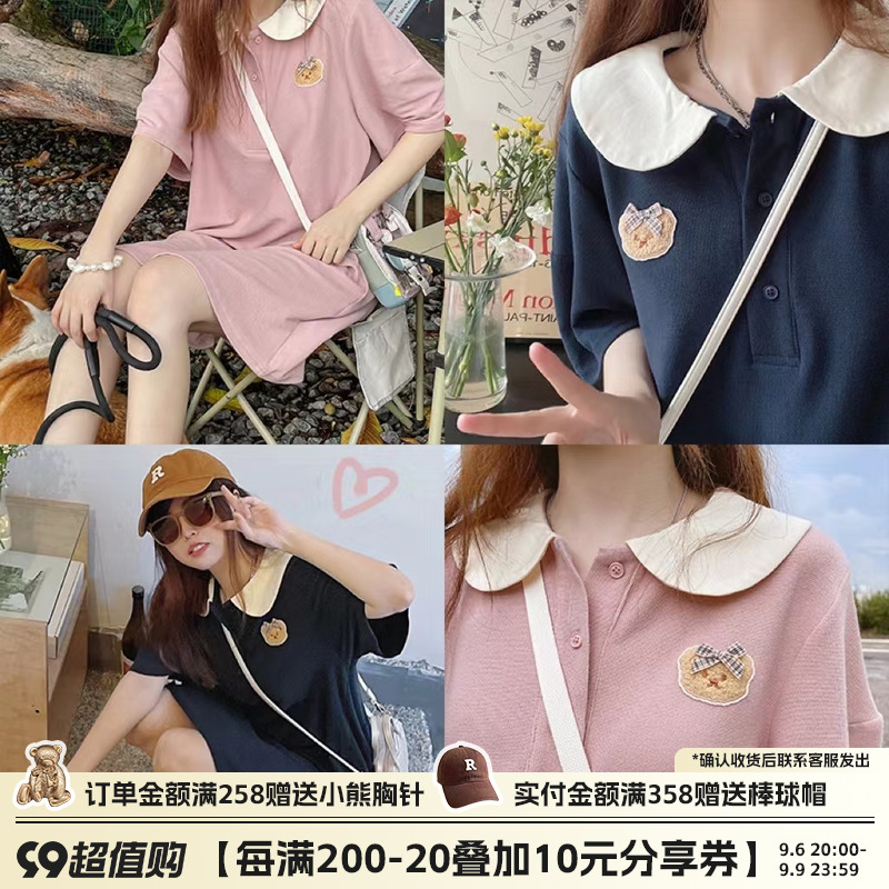 噠噠sama 草莓鬆餅 原創娃娃領華夫格polo裙女夏季休閒寬鬆中長裙
