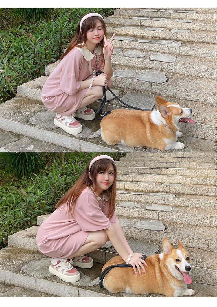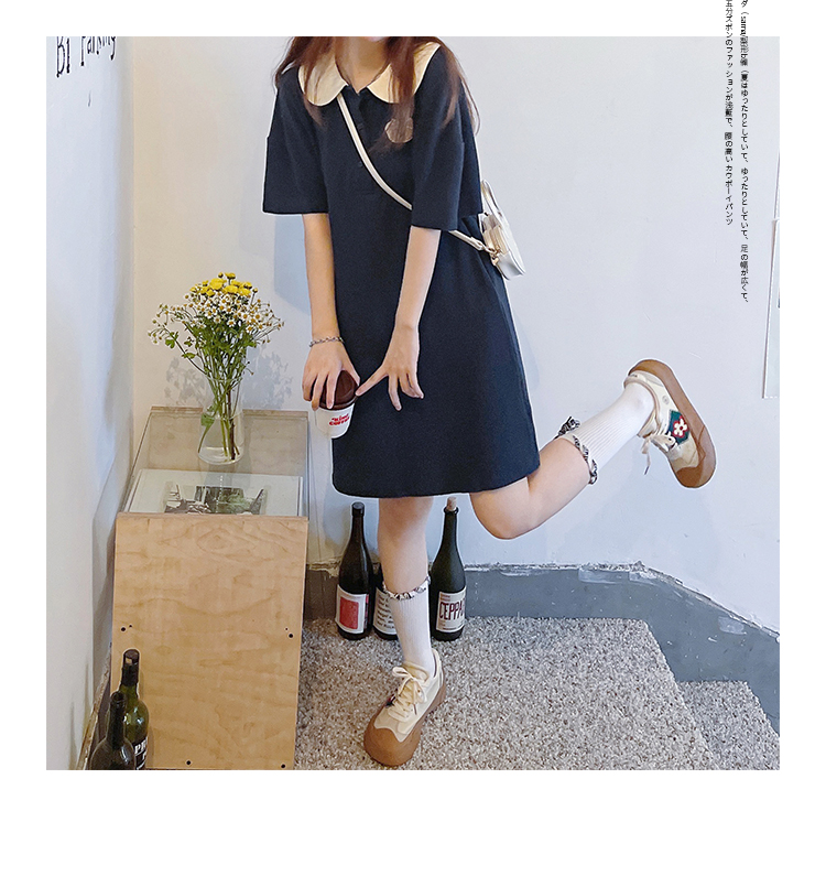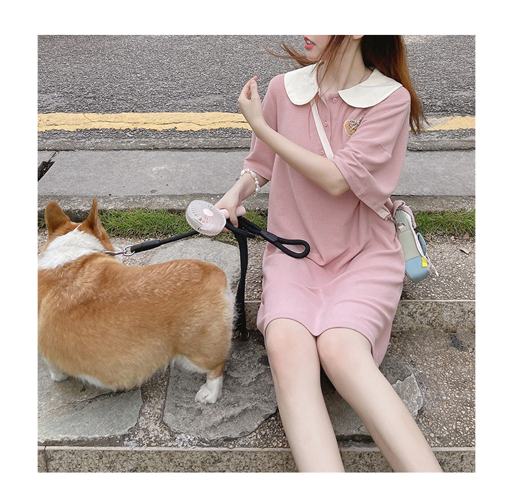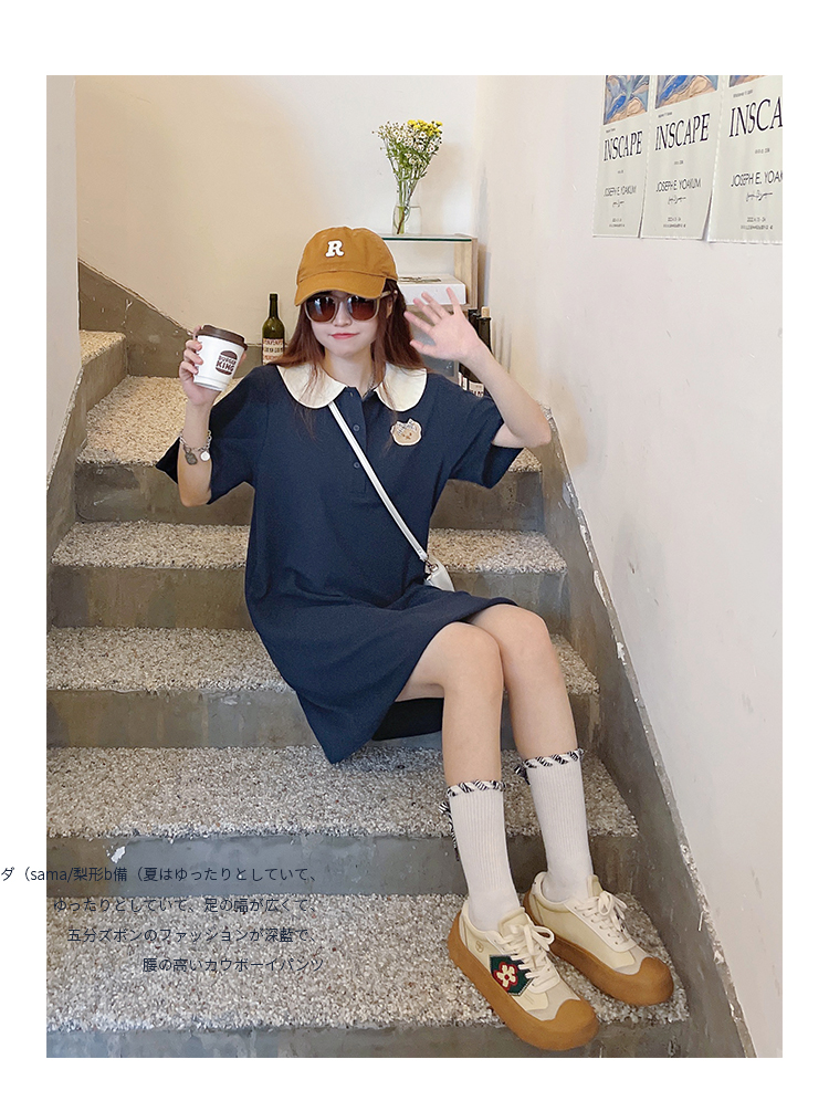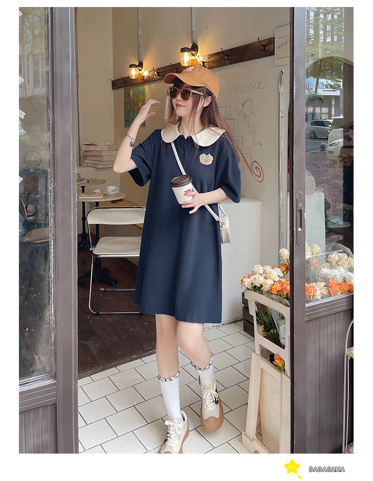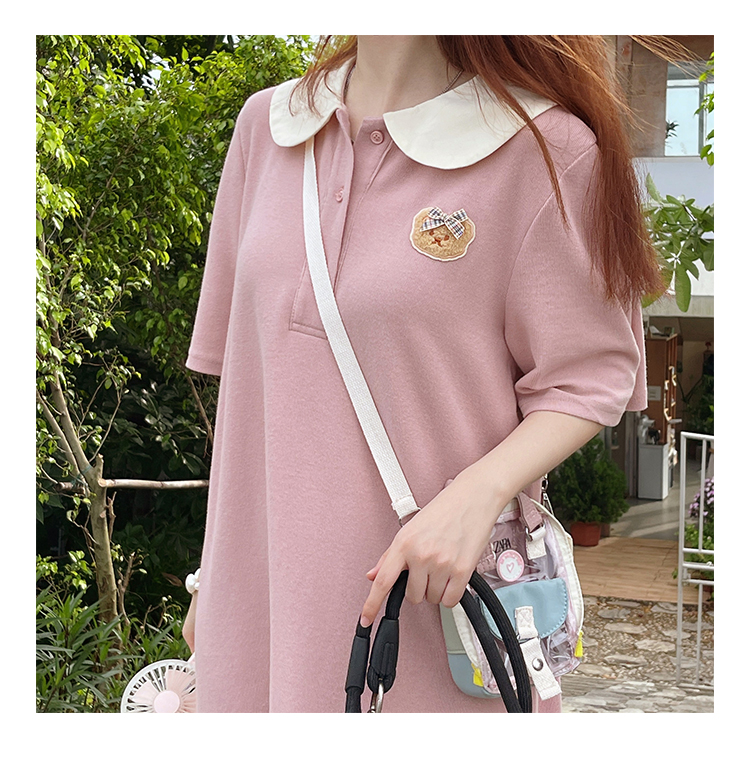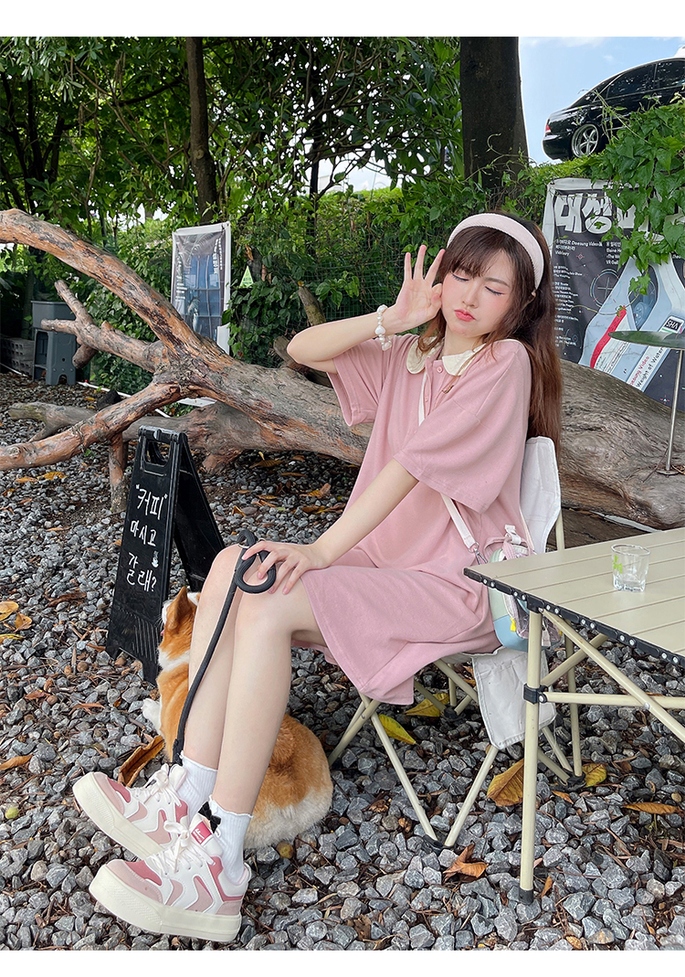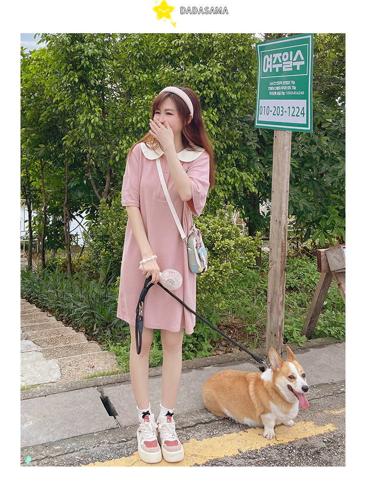 噠噠sama 草莓鬆餅 原創娃娃領華夫格polo裙女夏季休閒寬鬆中長裙