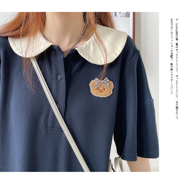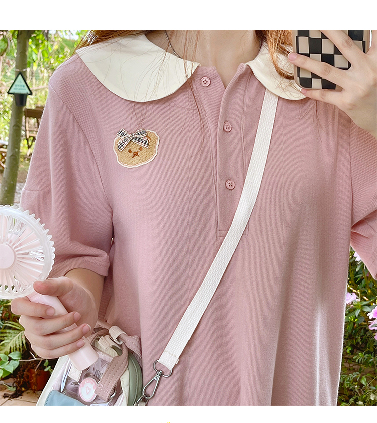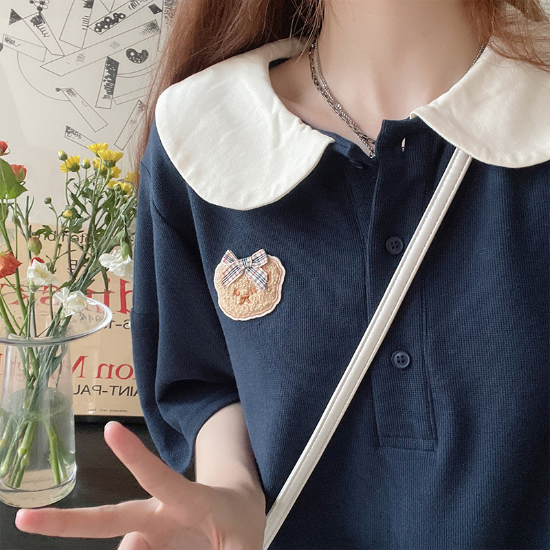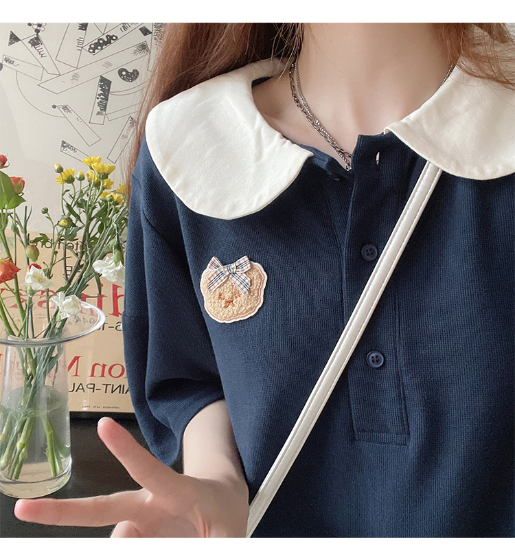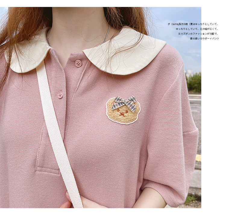 领子是浅杏撞色娃娃polo领+三粒扣开合~ 很学院