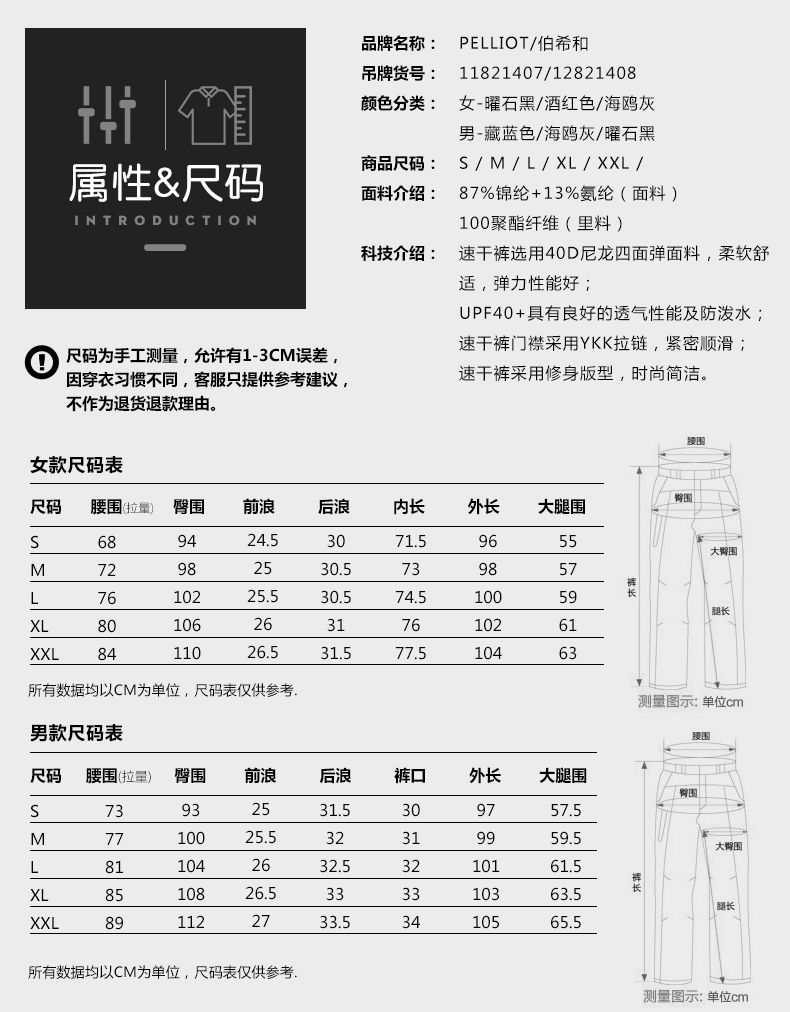 伯希和戶外速乾褲男女夏季透氣快乾褲休閒旅遊運動褲徒步登山長褲
