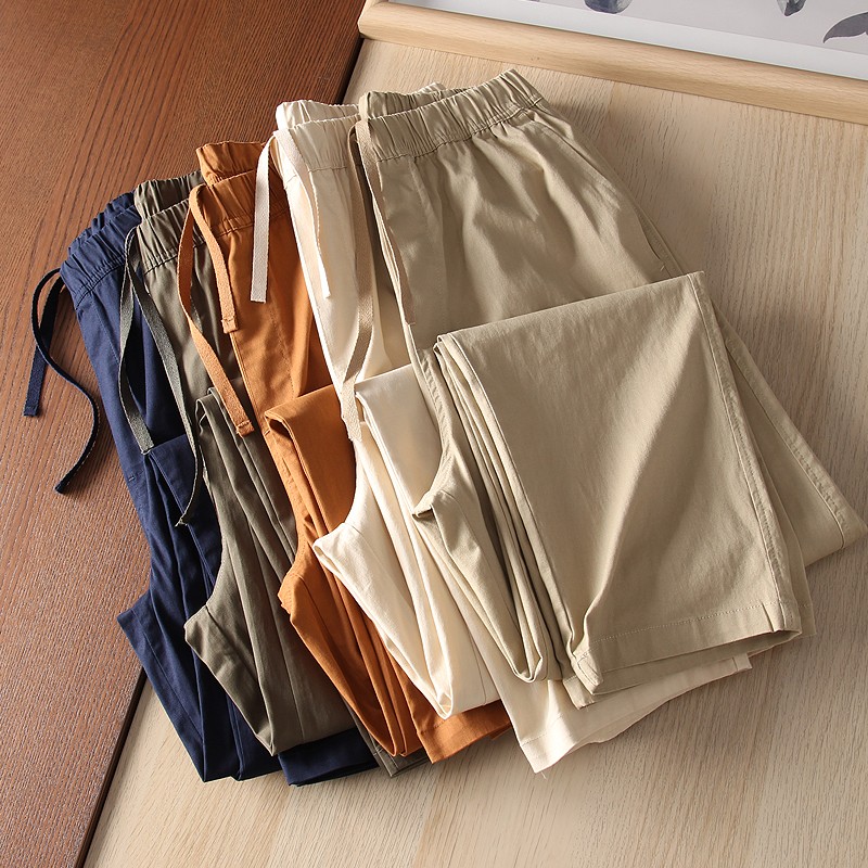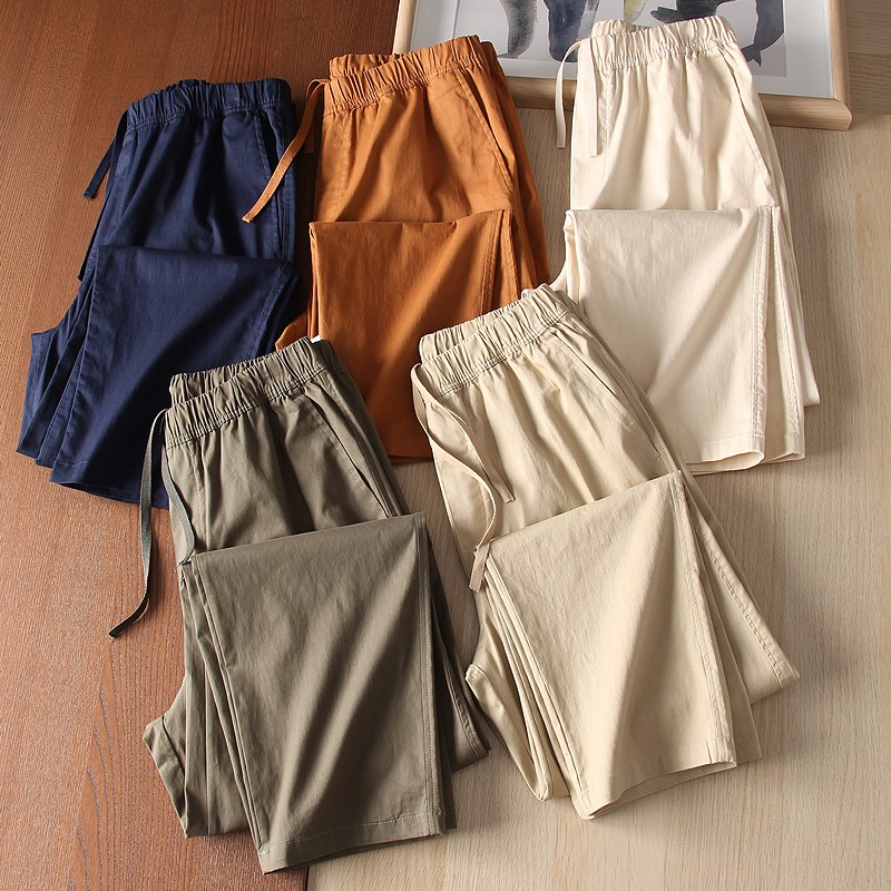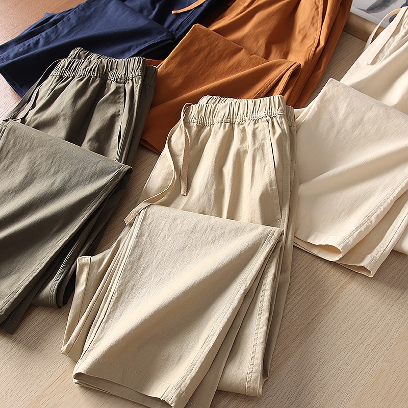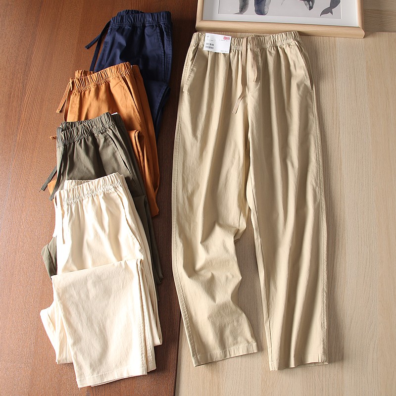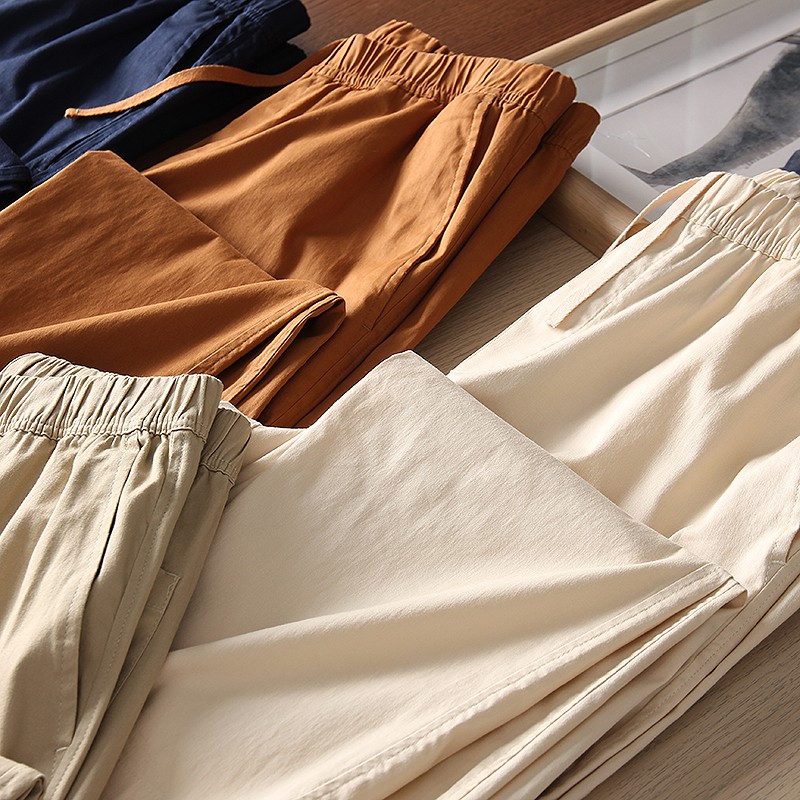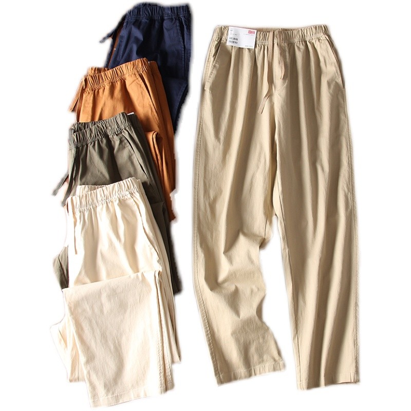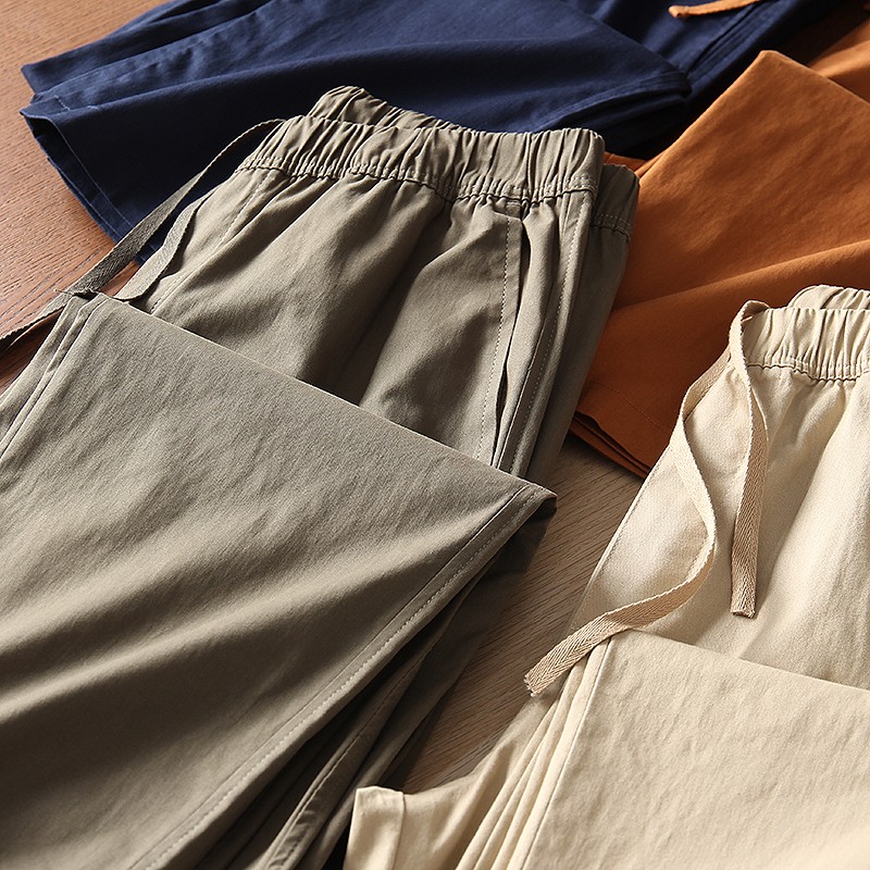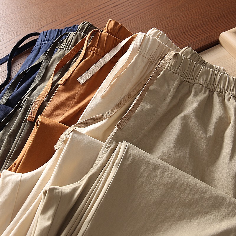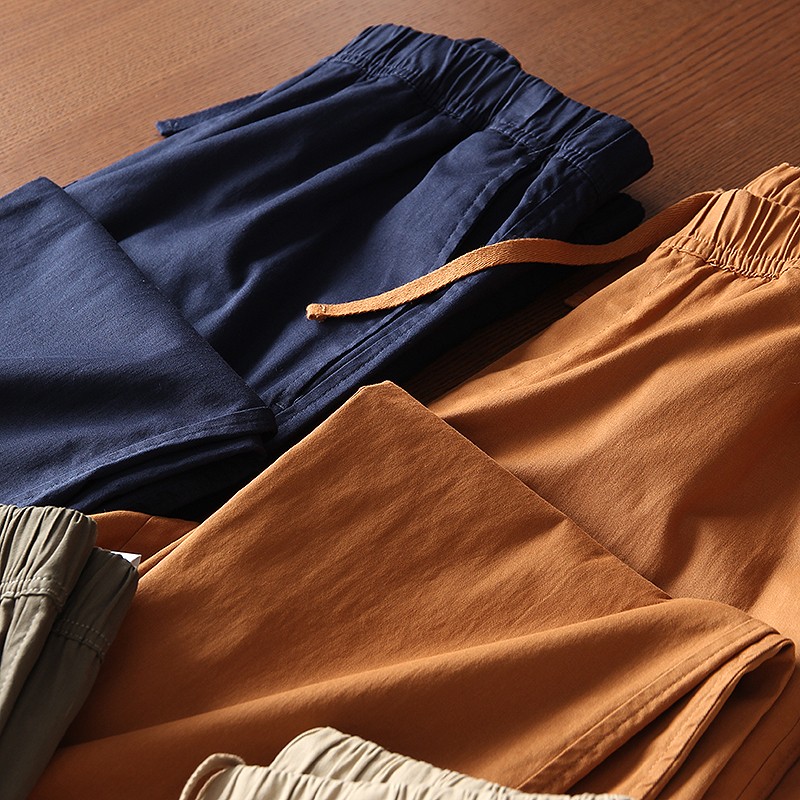 爆款優家 男士夏季薄款棉質鬆緊抽繩休閒窄口九分褲休閒褲433520