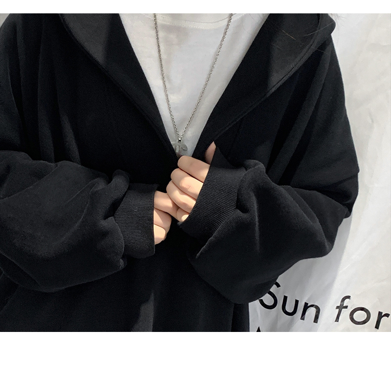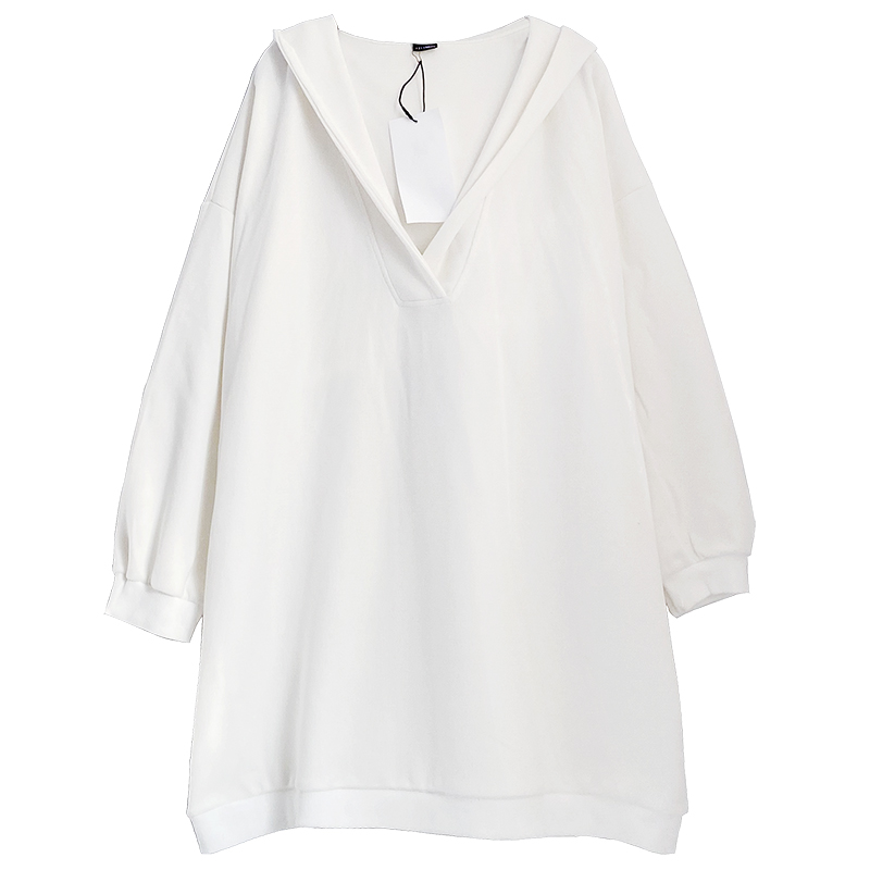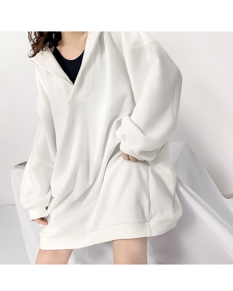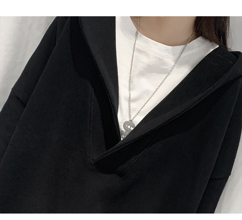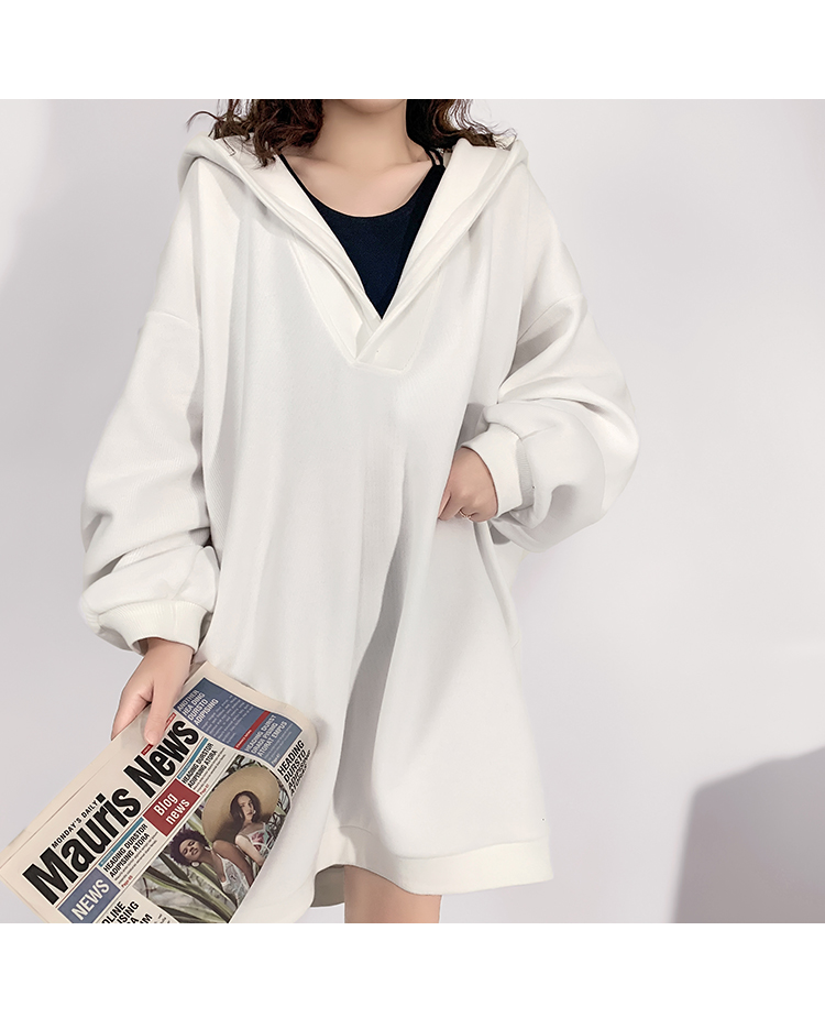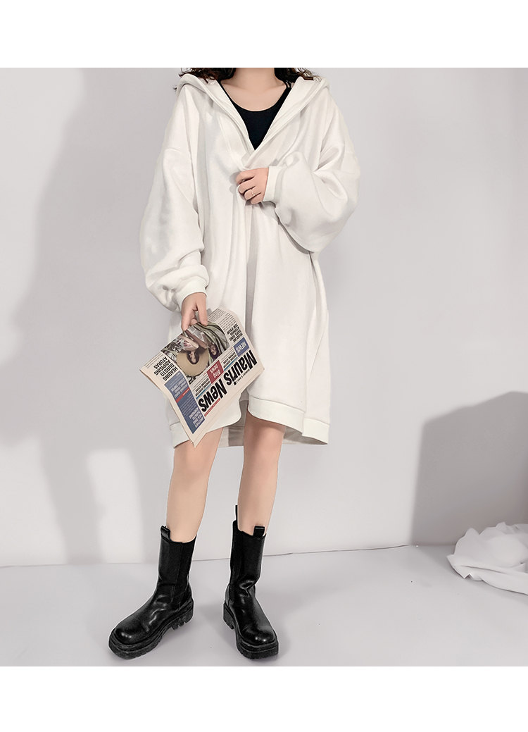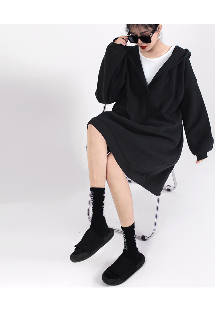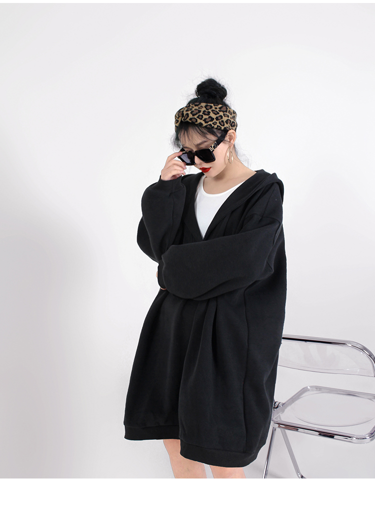 中長版寬鬆超大尺碼胖mm連帽運動衫裙女2023秋季黑色遮臀顯瘦慵懶外套