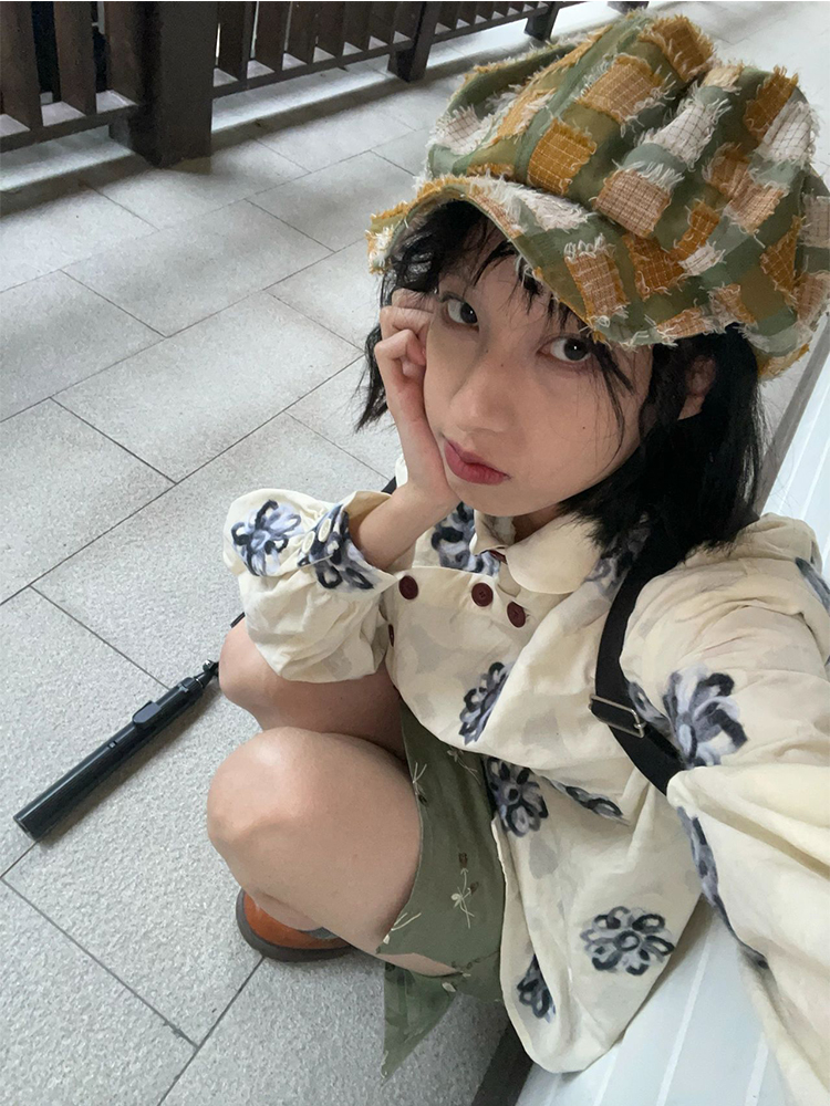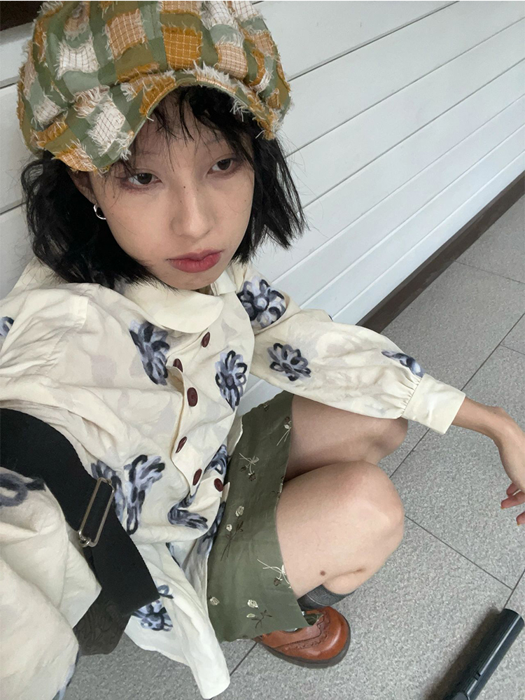 2023夏季新款印花鏤空襯衫女國風中式小眾設計感薄款高級感上衣女
