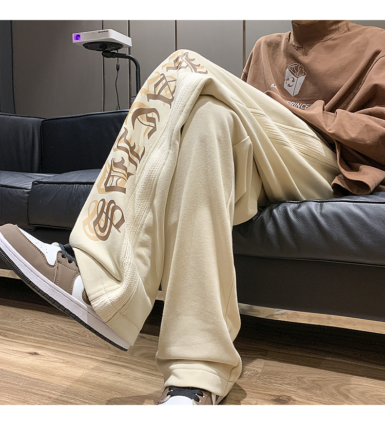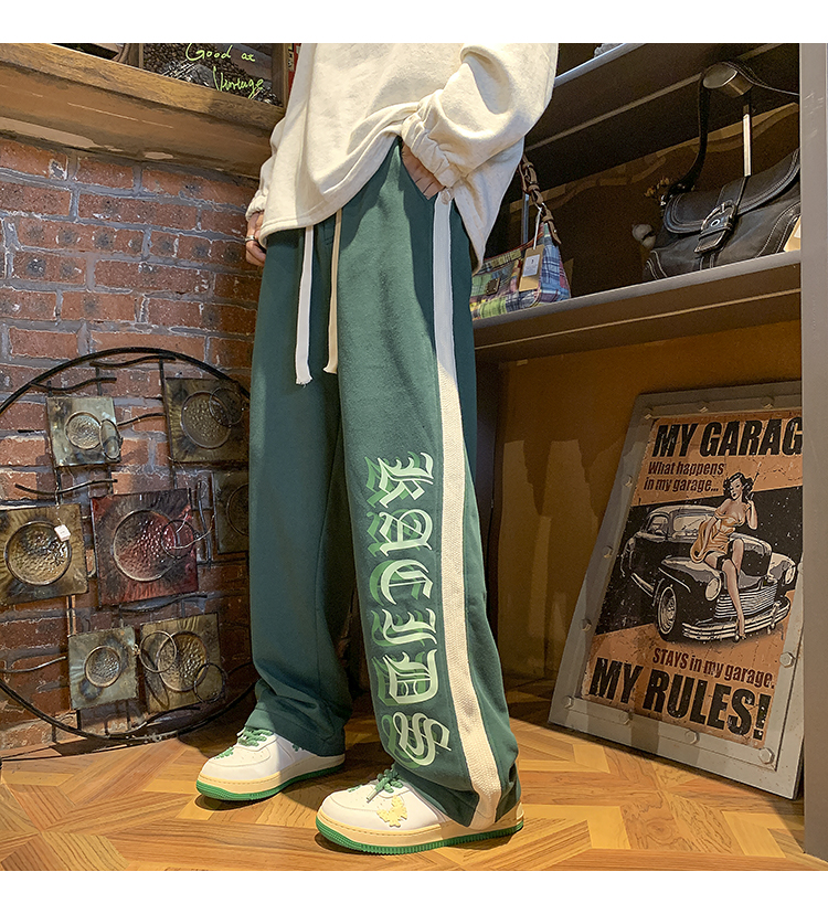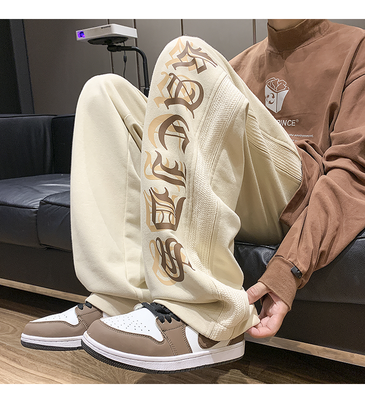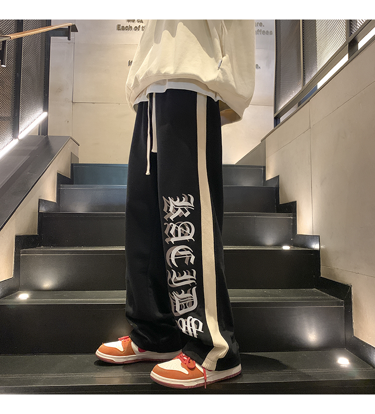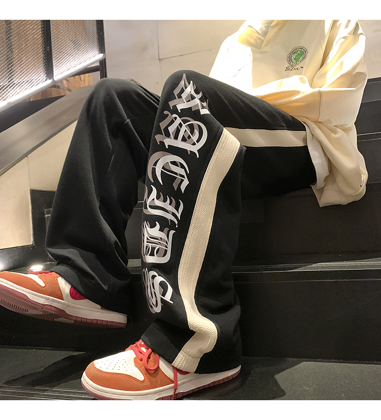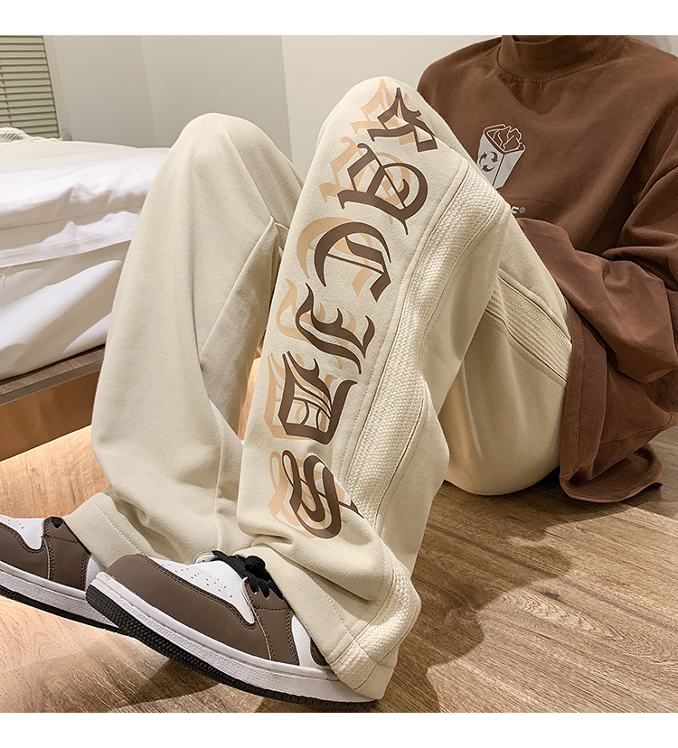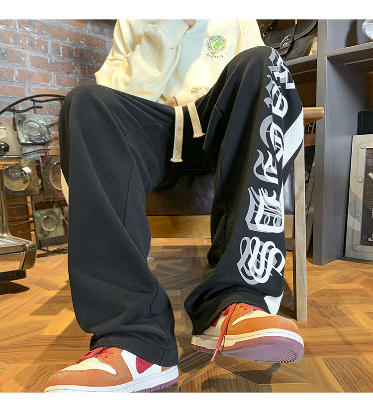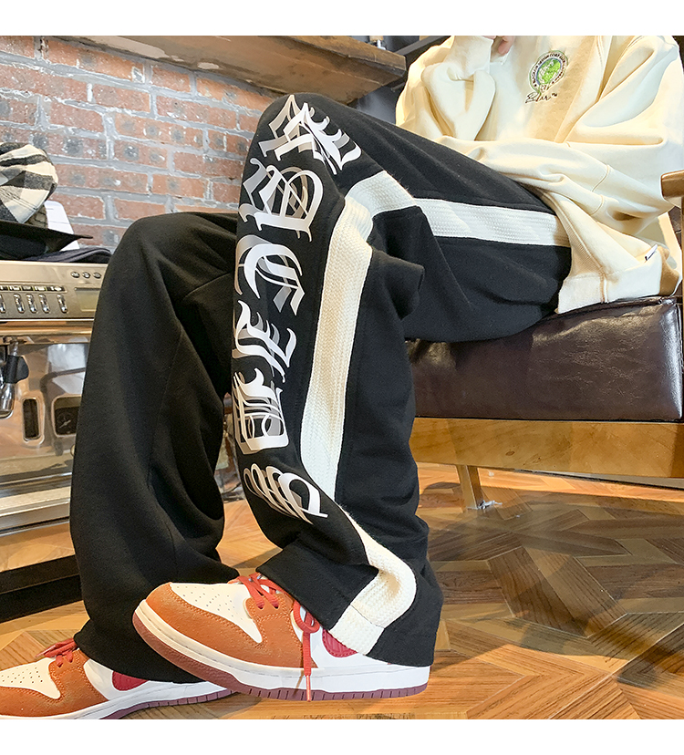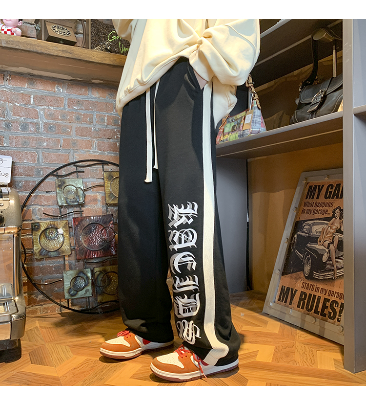 美式潮牌痞帥炸街褲子vintage印花休閒褲高街男慵懶風寬鬆拖地褲