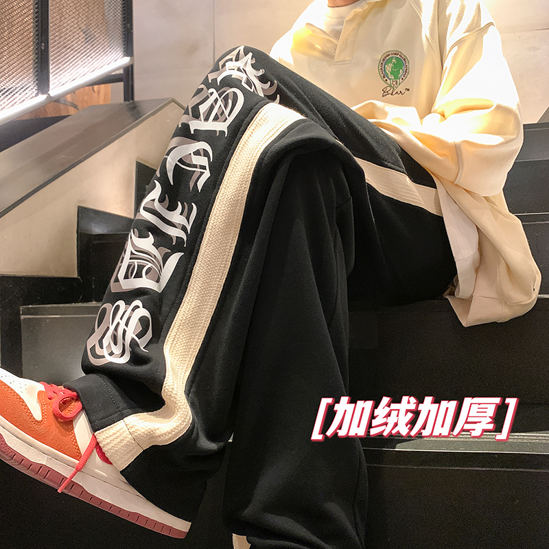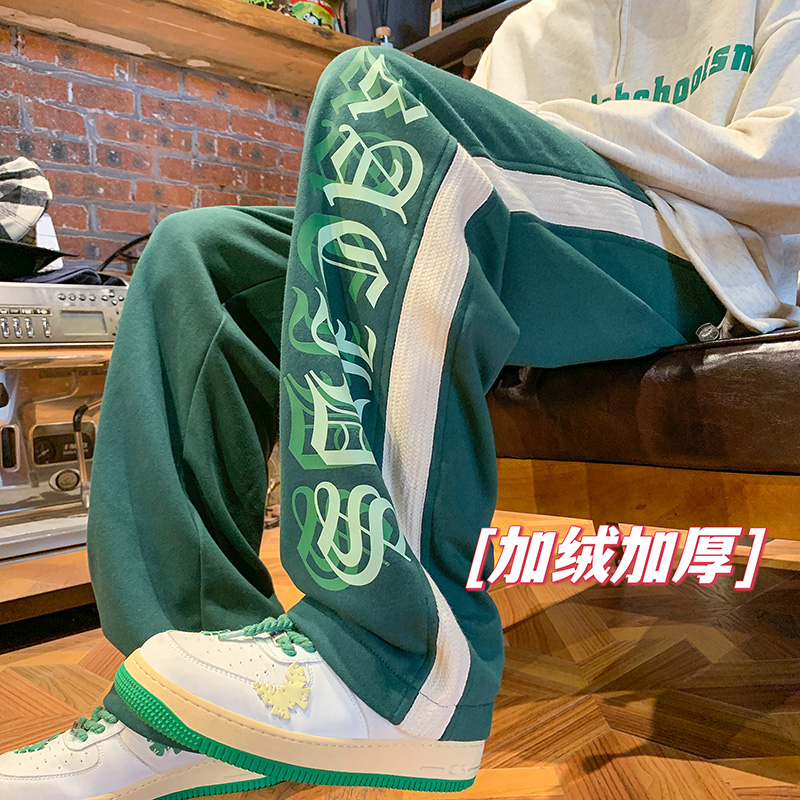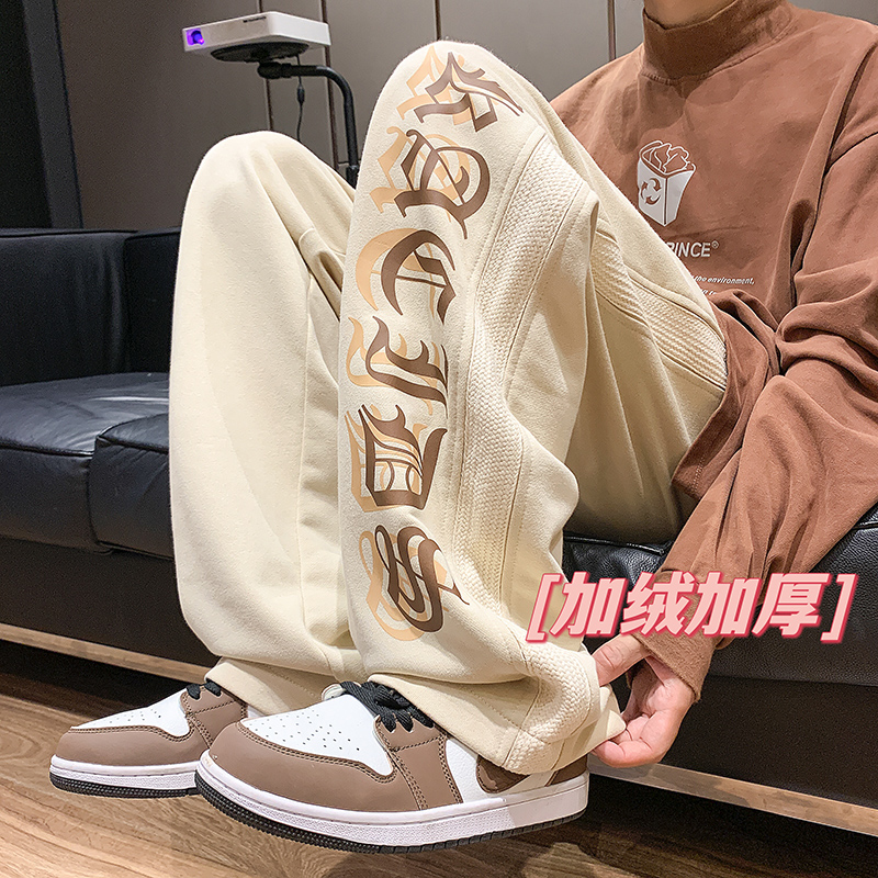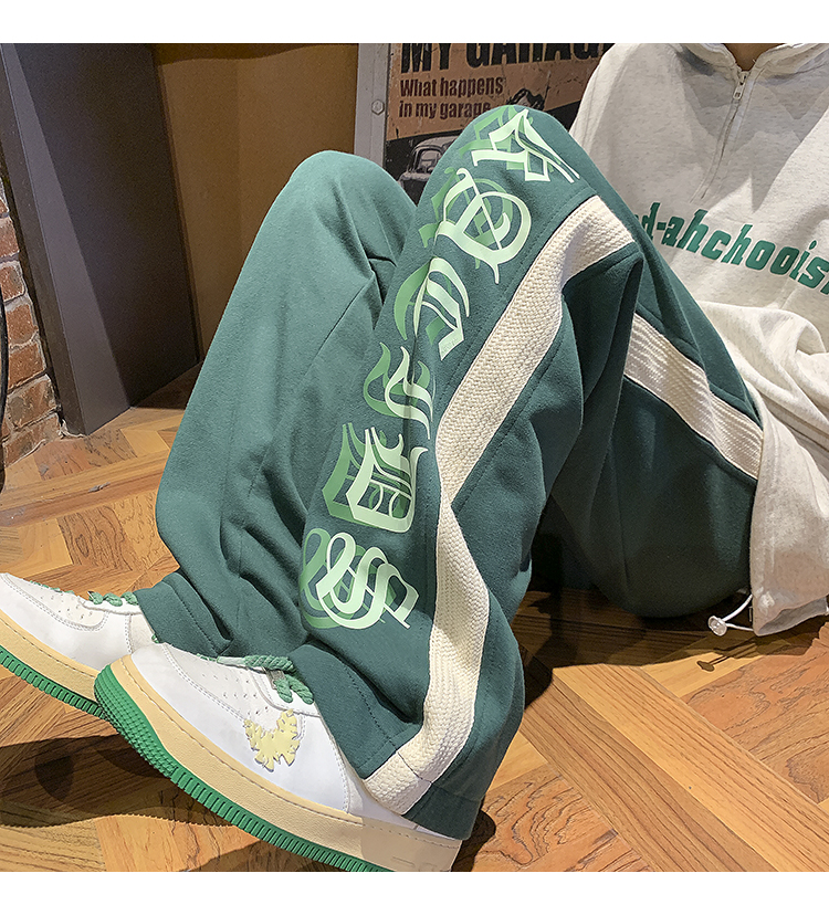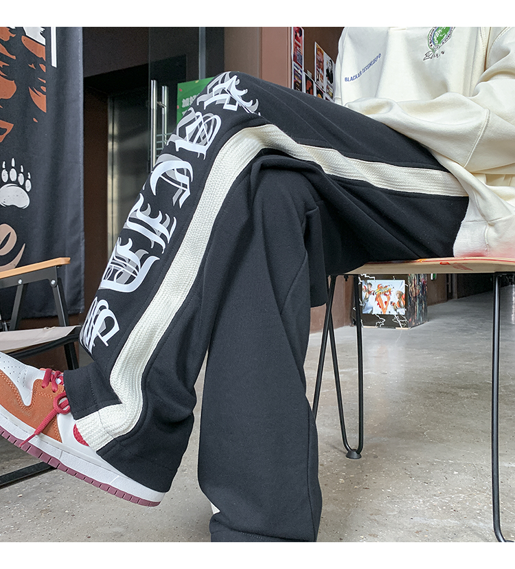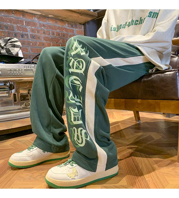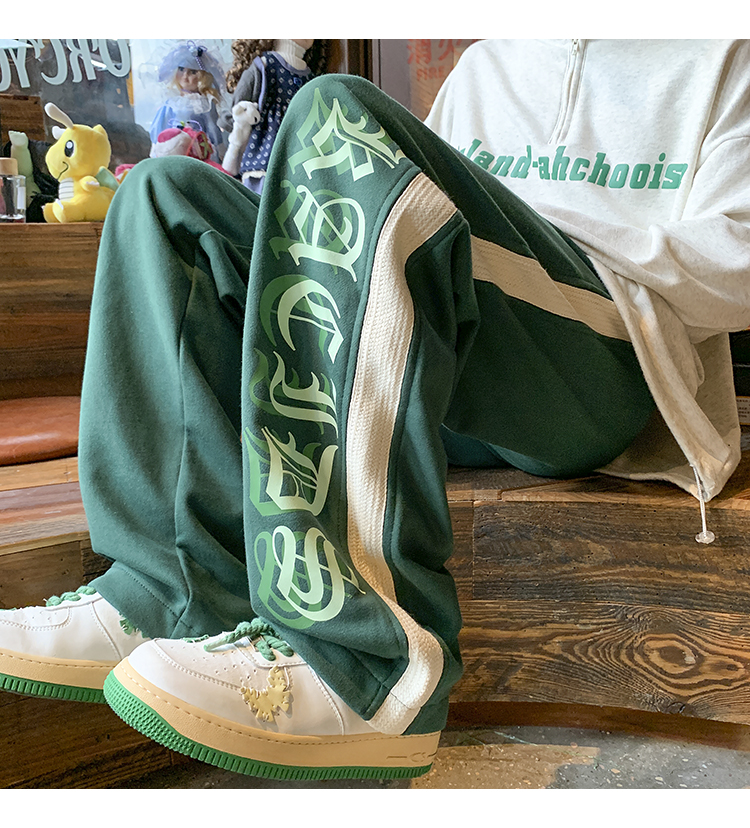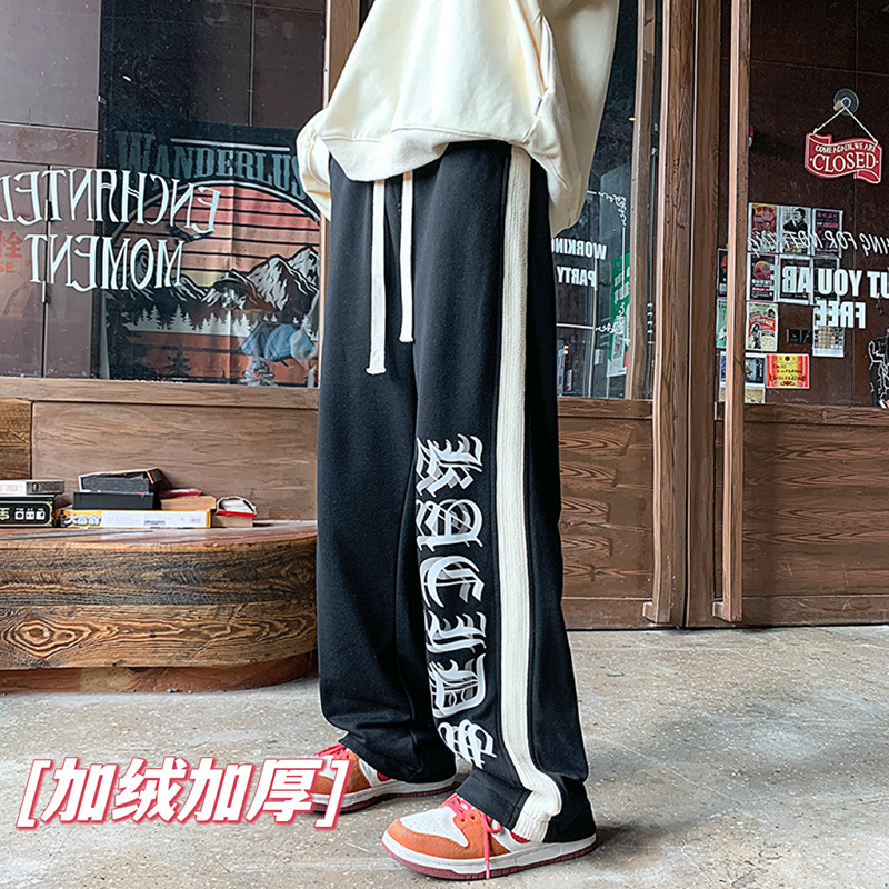 美式潮牌痞帥炸街褲子vintage印花休閒褲高街男慵懶風寬鬆拖地褲