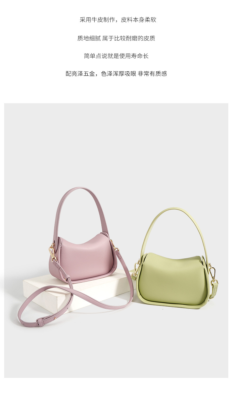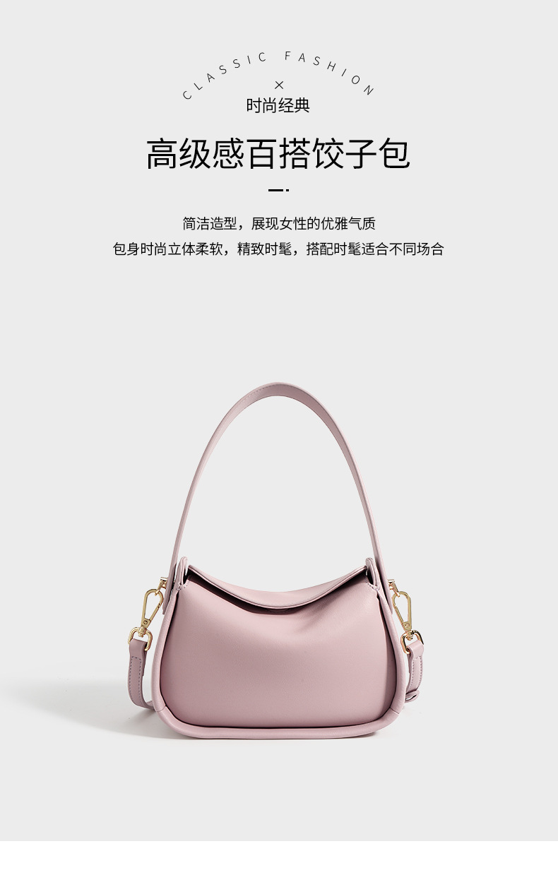 高级感牛皮斜挎包2024新款时尚百搭手提包女小众通勤单肩饺子包女
