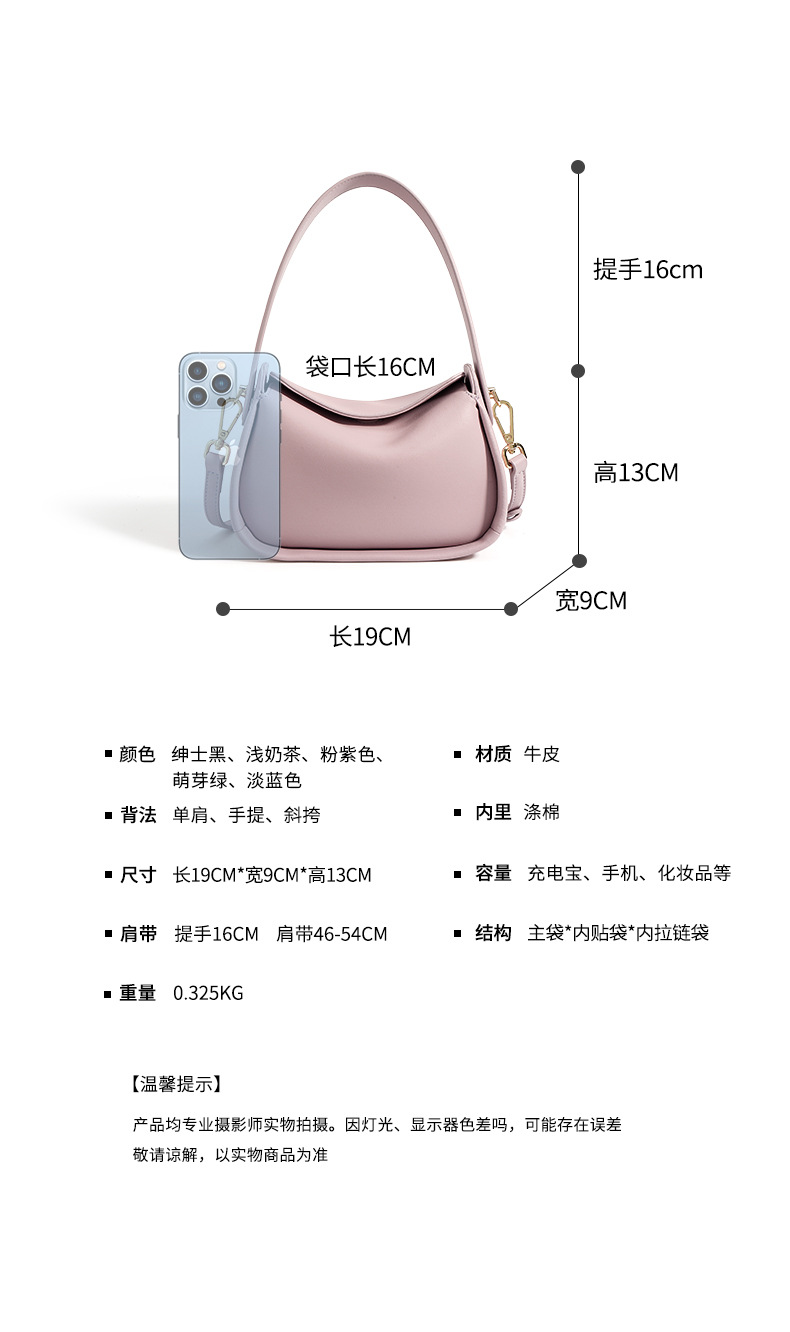 头层牛皮枕头包女高级感真皮质感单肩斜挎百搭简约波士顿包腋下包
