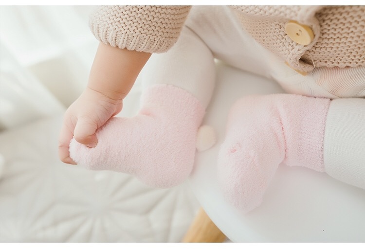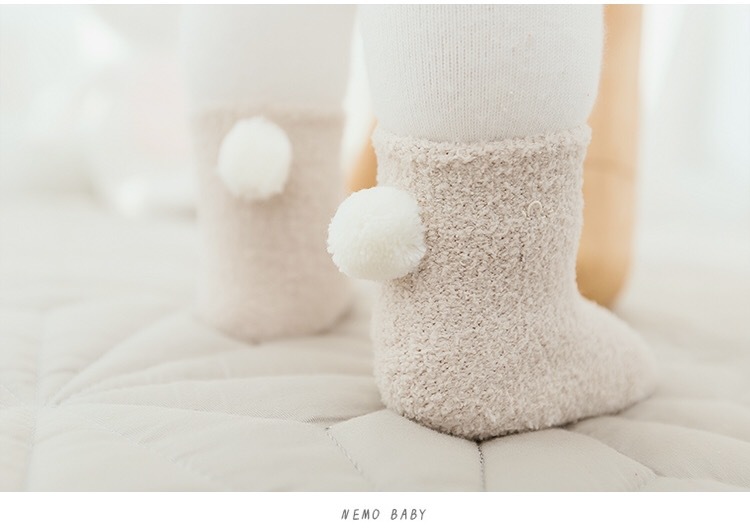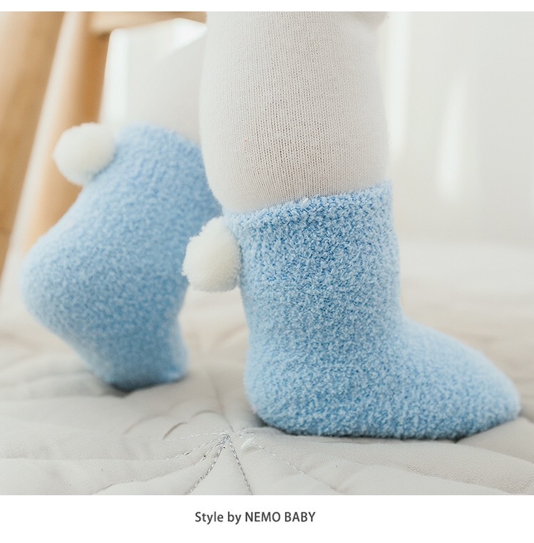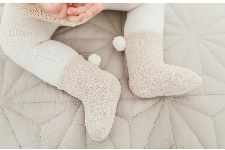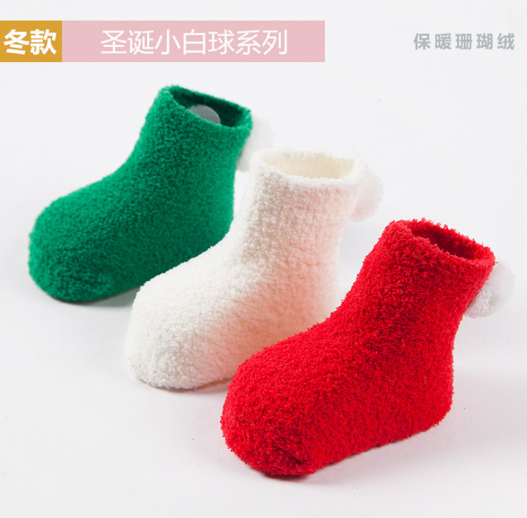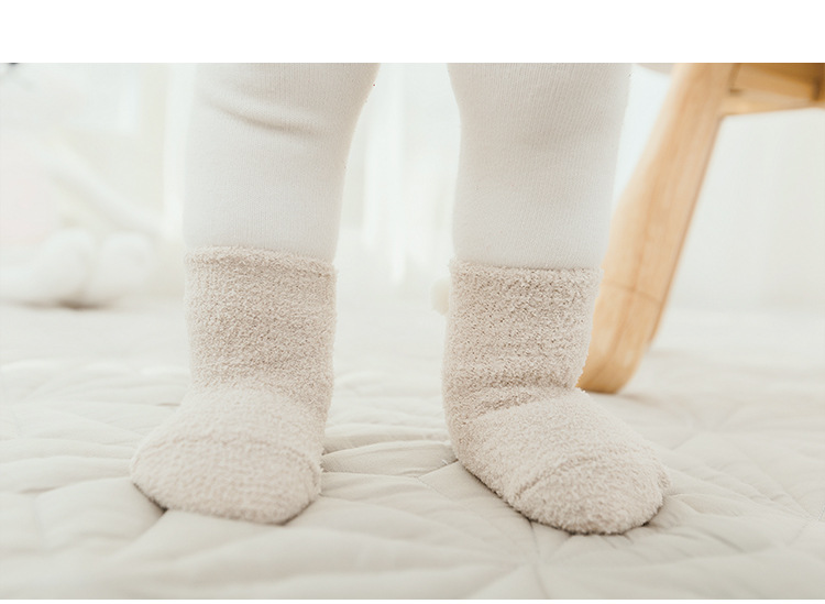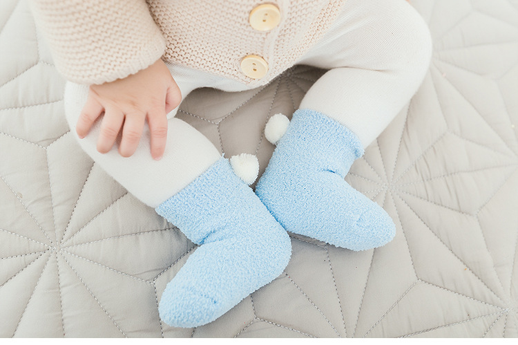 新款秋冬加厚保暖宝宝袜子 0-1-3岁婴儿纯色珊瑚绒球球初生儿袜子