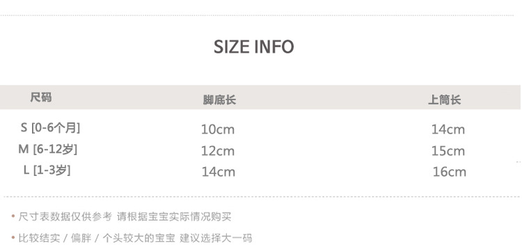 童袜尺码 XS码0-6个月,S码6-12个月,M码1-3岁