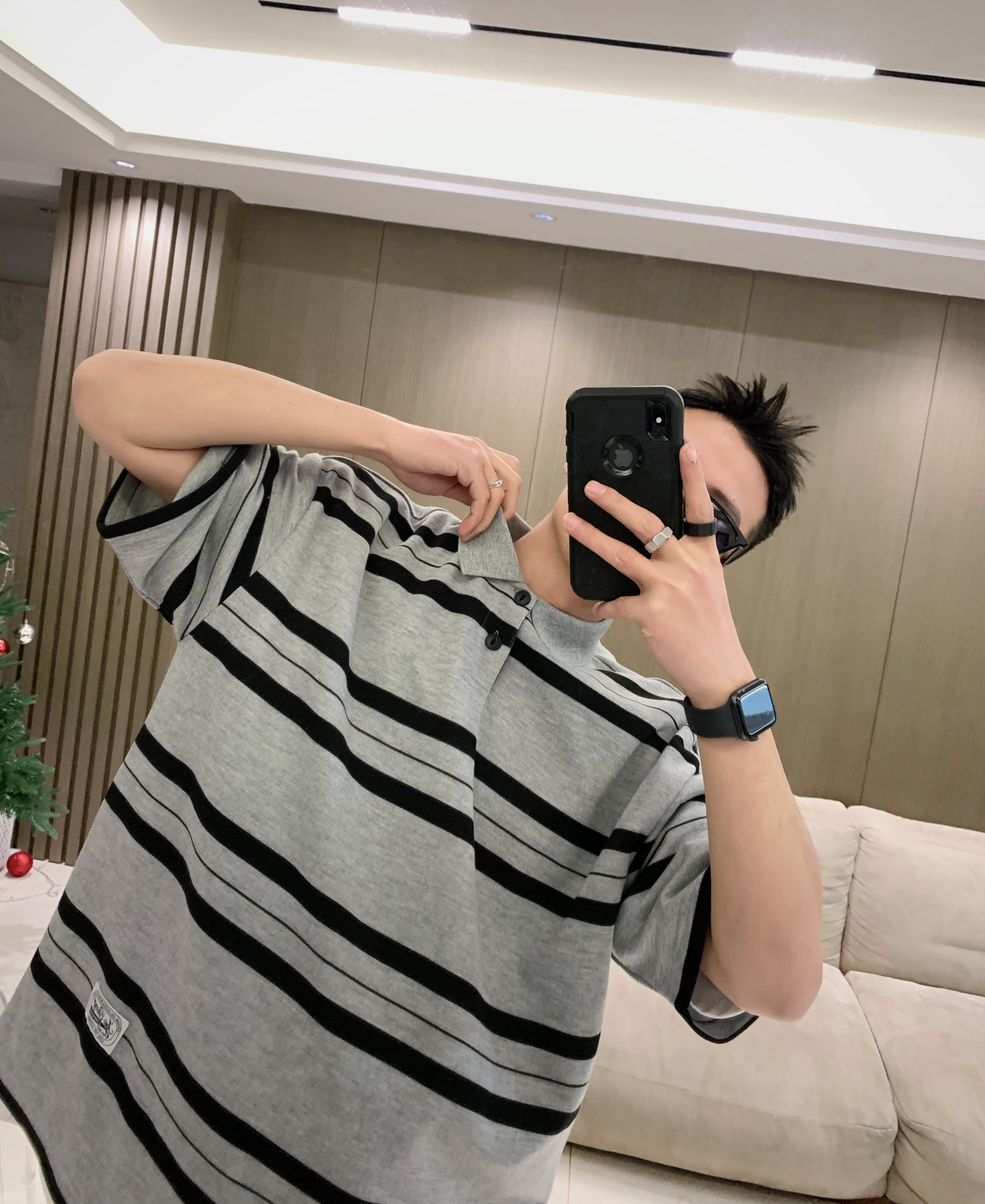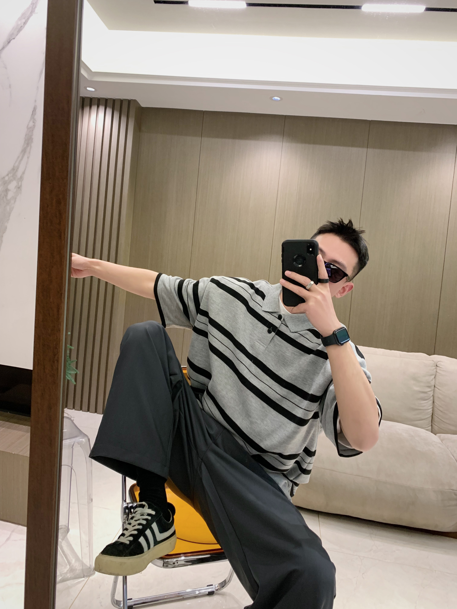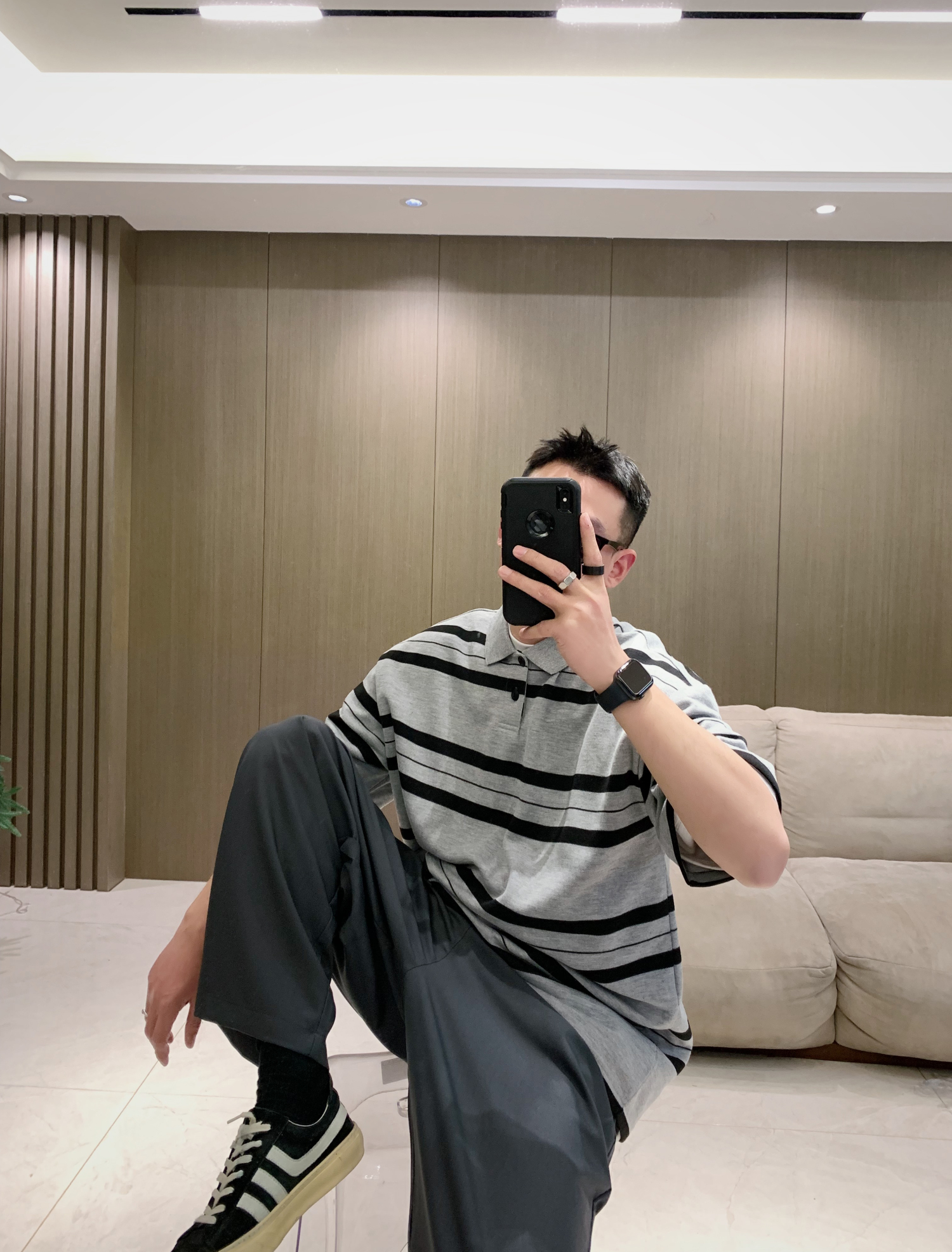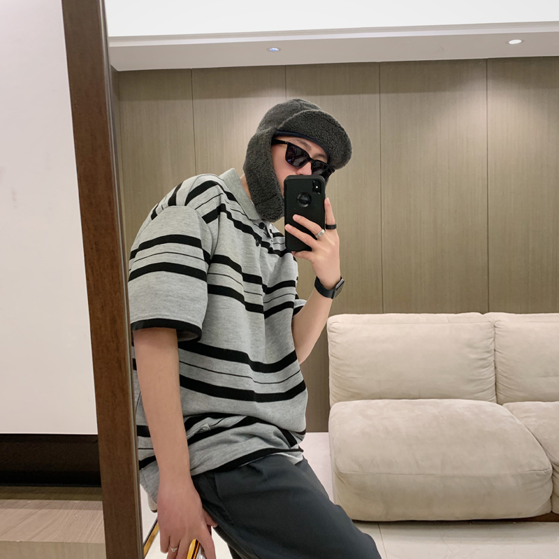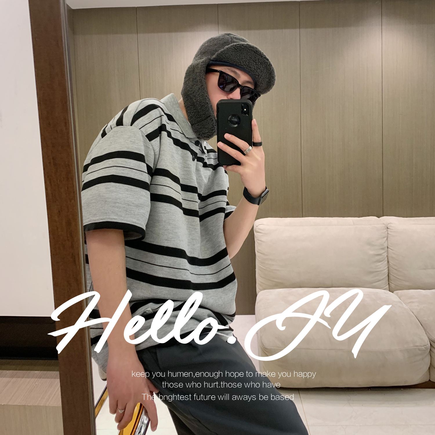 Hello雞爺 夏季新品男士翻領簡約條紋POLO衫韓版時尚百搭男短袖潮