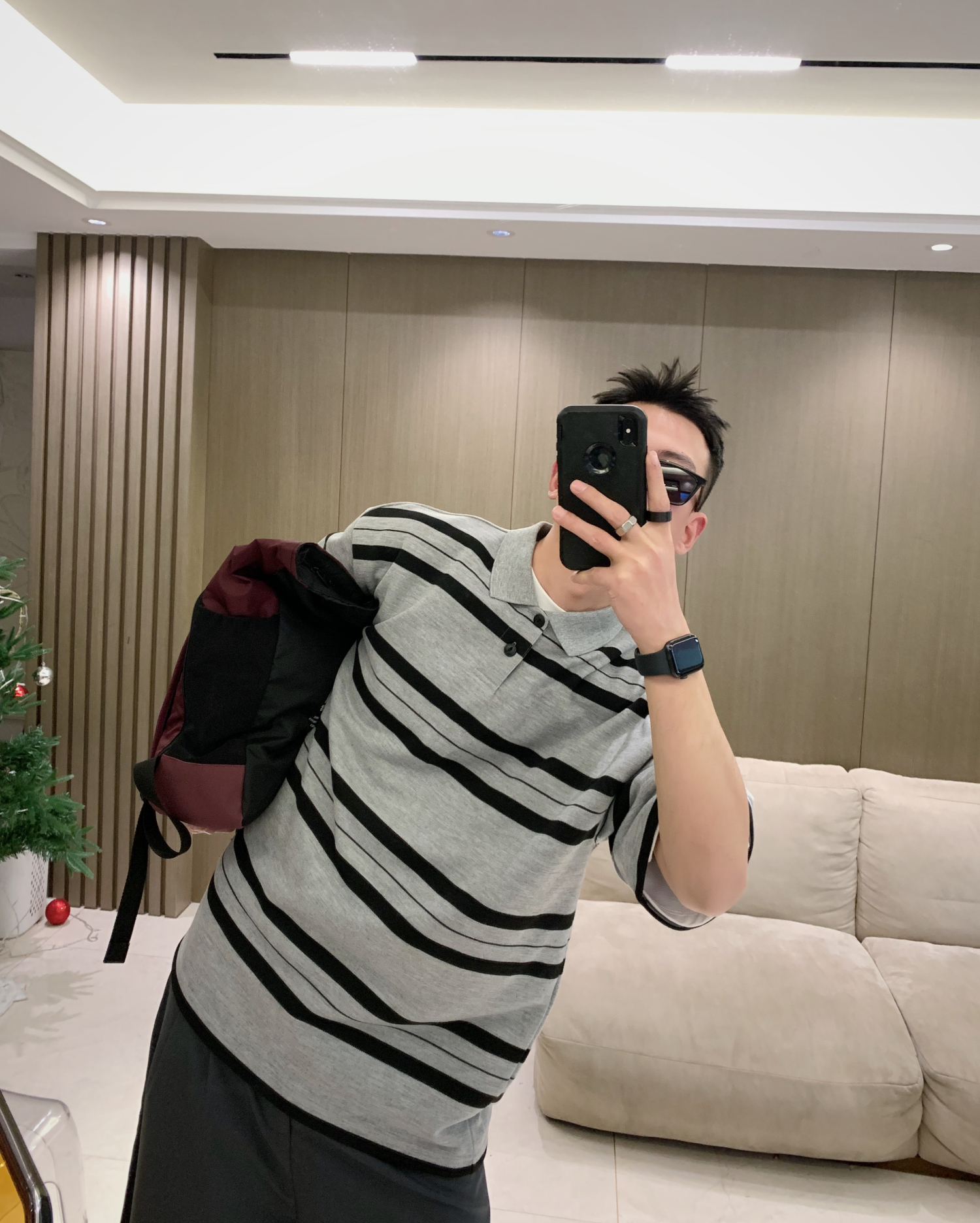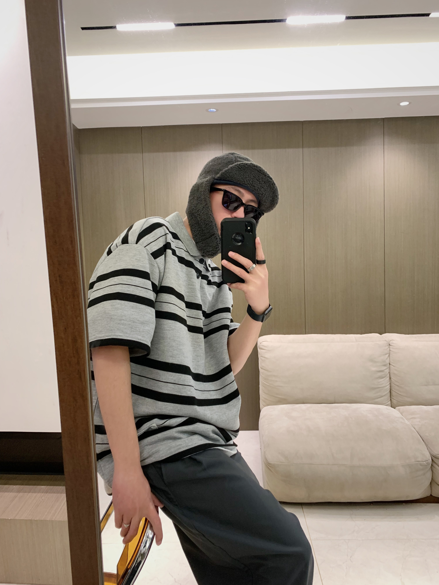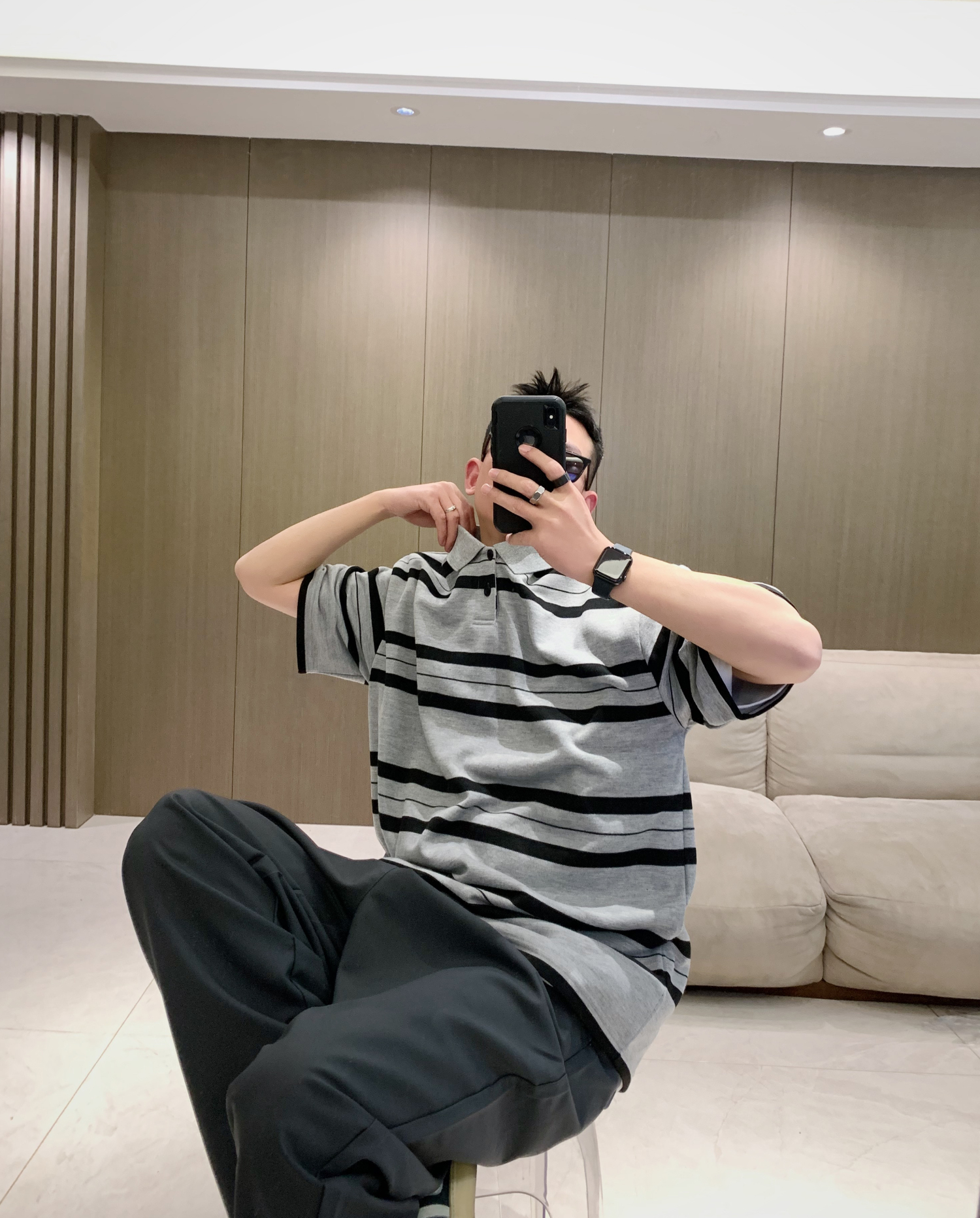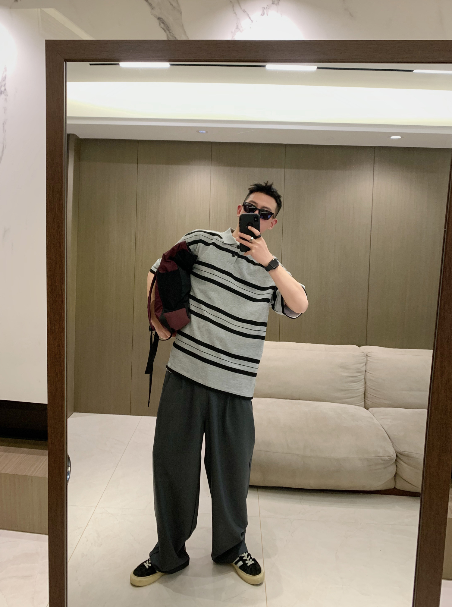Hello雞爺 夏季新品男士翻領簡約條紋POLO衫韓版時尚百搭男短袖潮