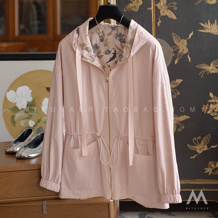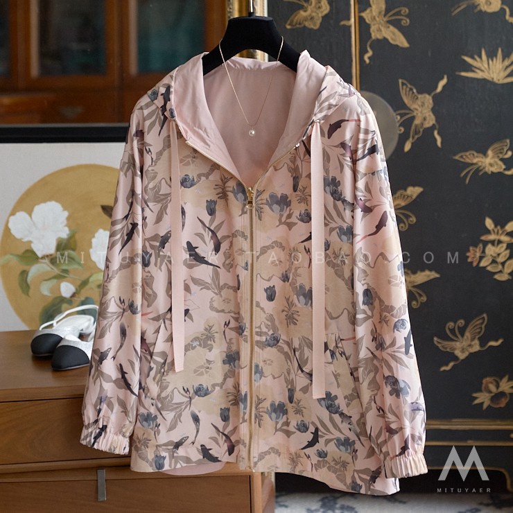 面面俱到的品質 正反兩穿! 精緻兩穿印花拉鍊連帽外套V06016