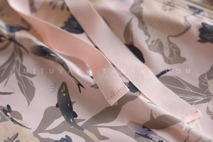一种是浅粉色调,腰间抽绳设计,凸显腰线塑形