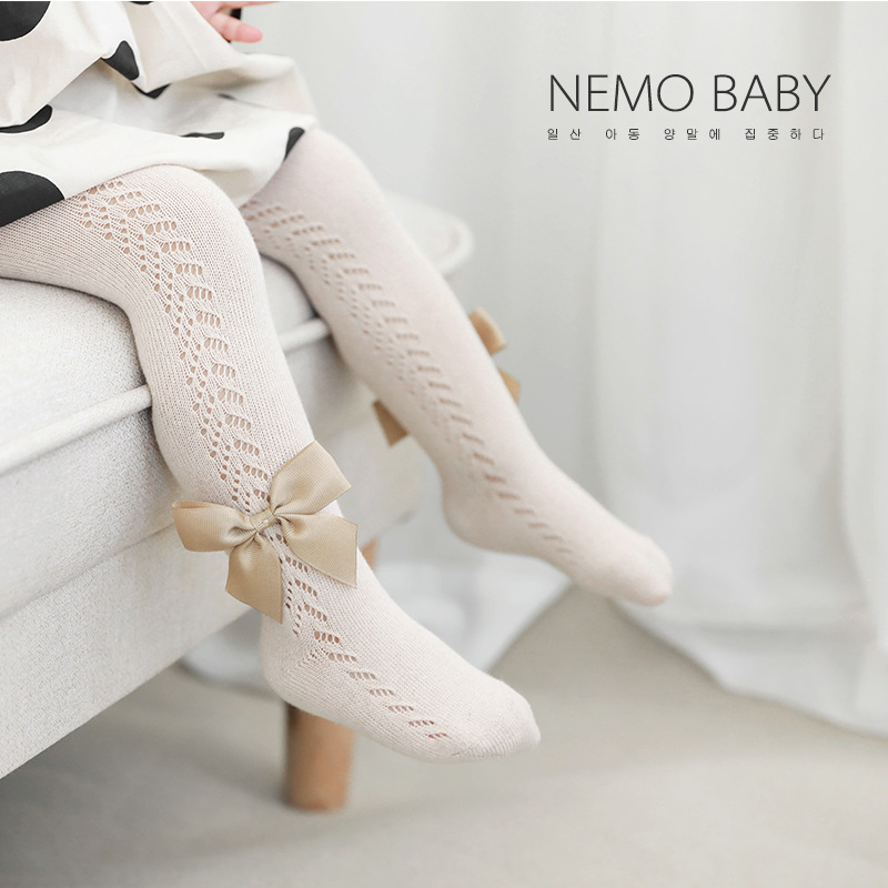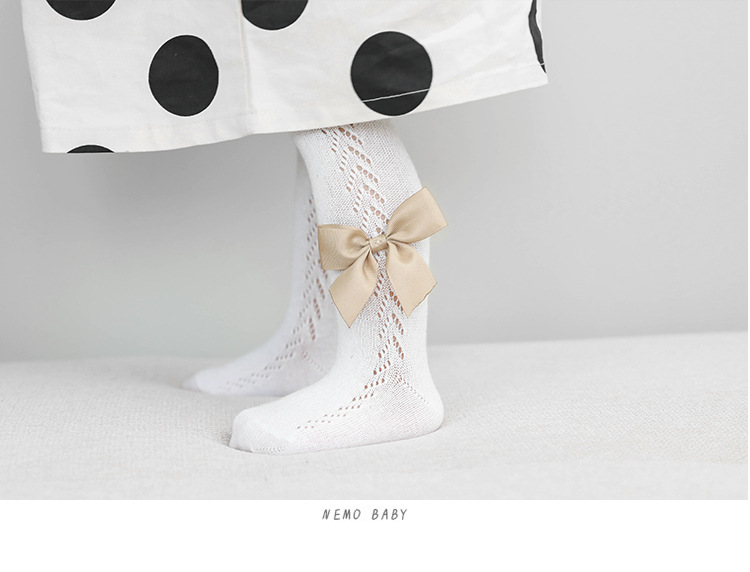 23新款春夏新生儿宝宝防蚊连裤袜移圈镂空大蝴蝶结女童公主连裤袜
