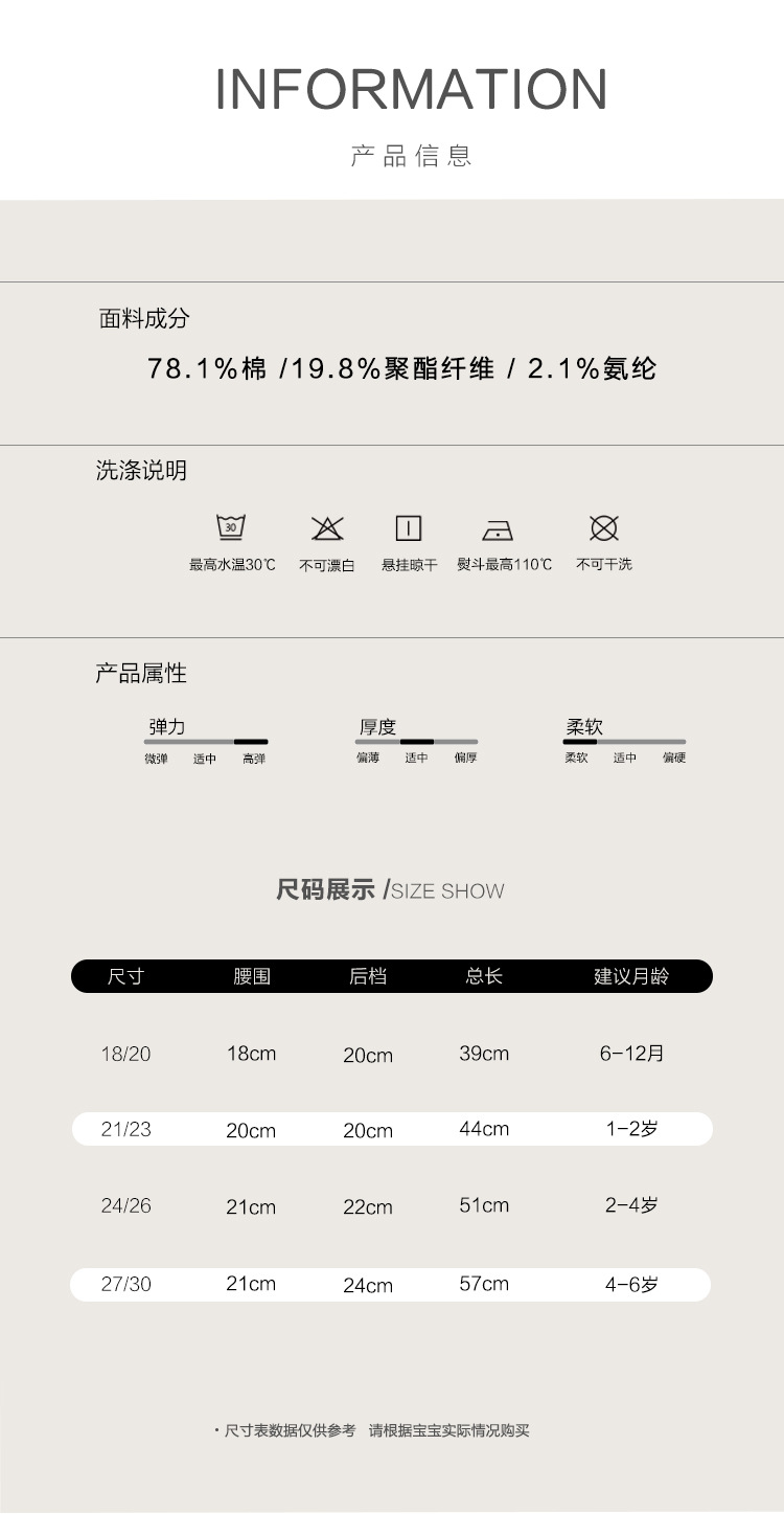 童袜尺码 18-20【6-12个月】,21-23【1-2岁】,24-26【2-4岁】,27-30【4-6岁】