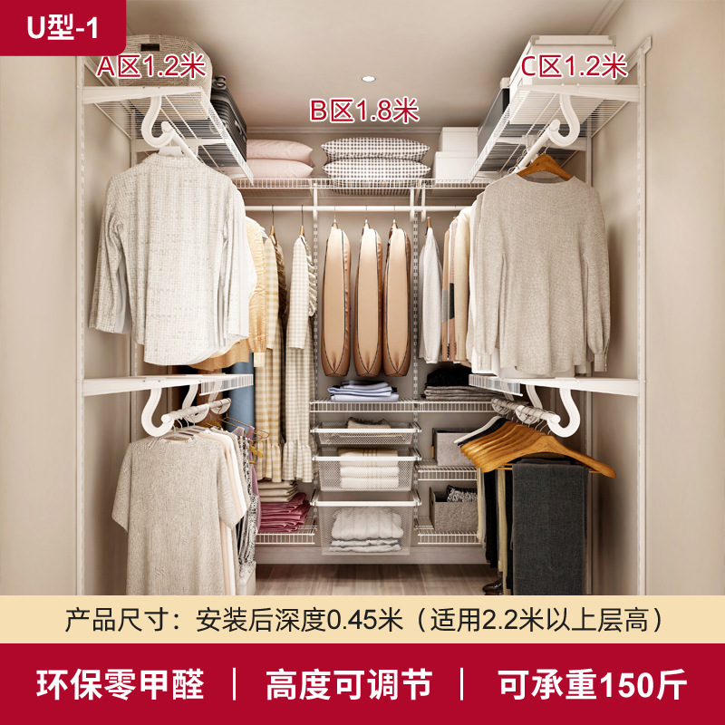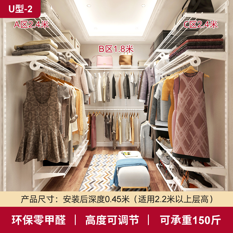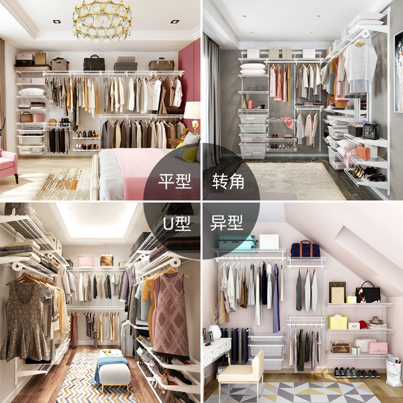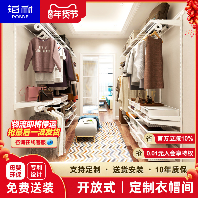 9URT批发铂耐步入式衣帽间架子砌墙衣柜开放式金属衣帽间柜子组合