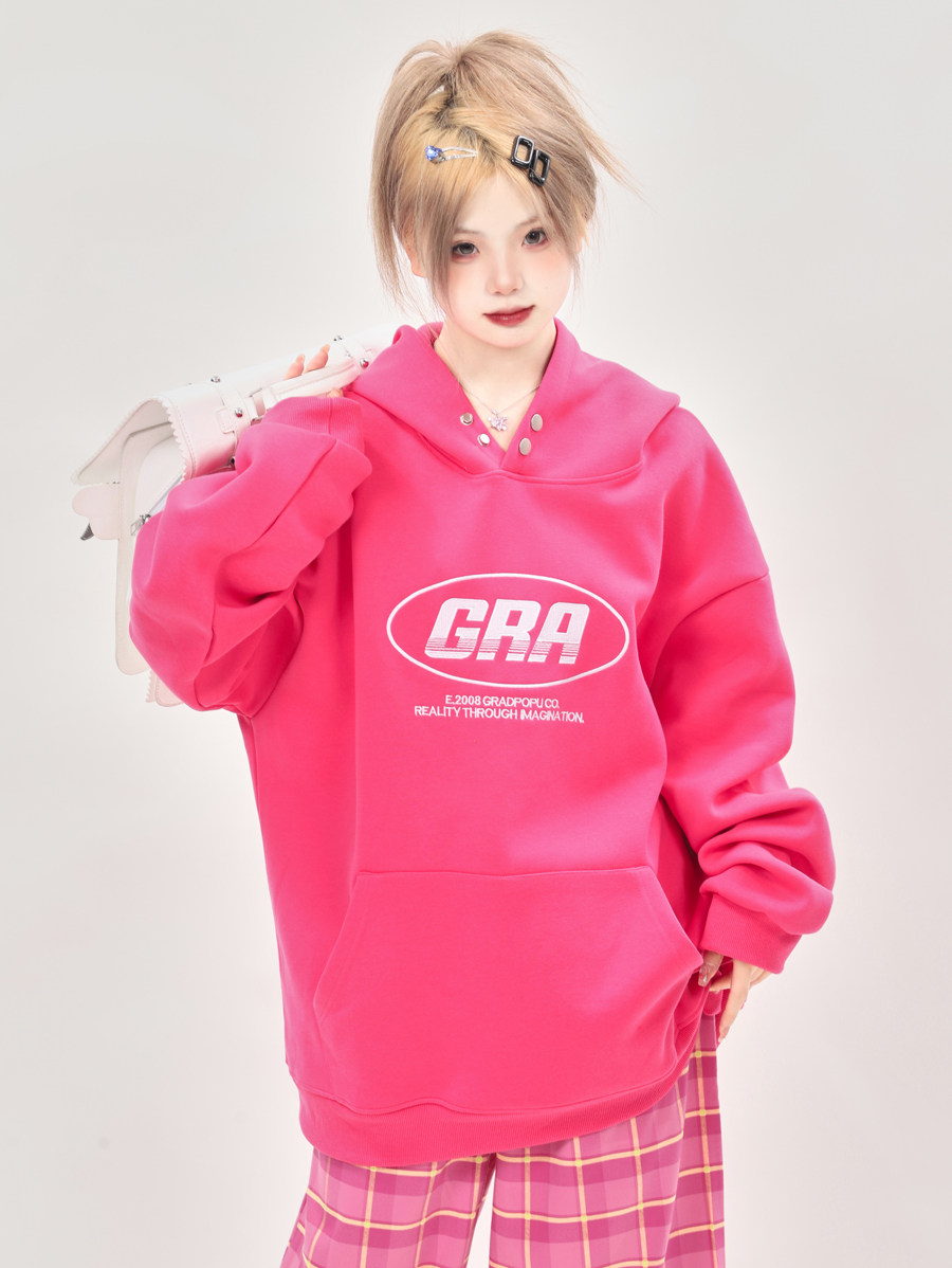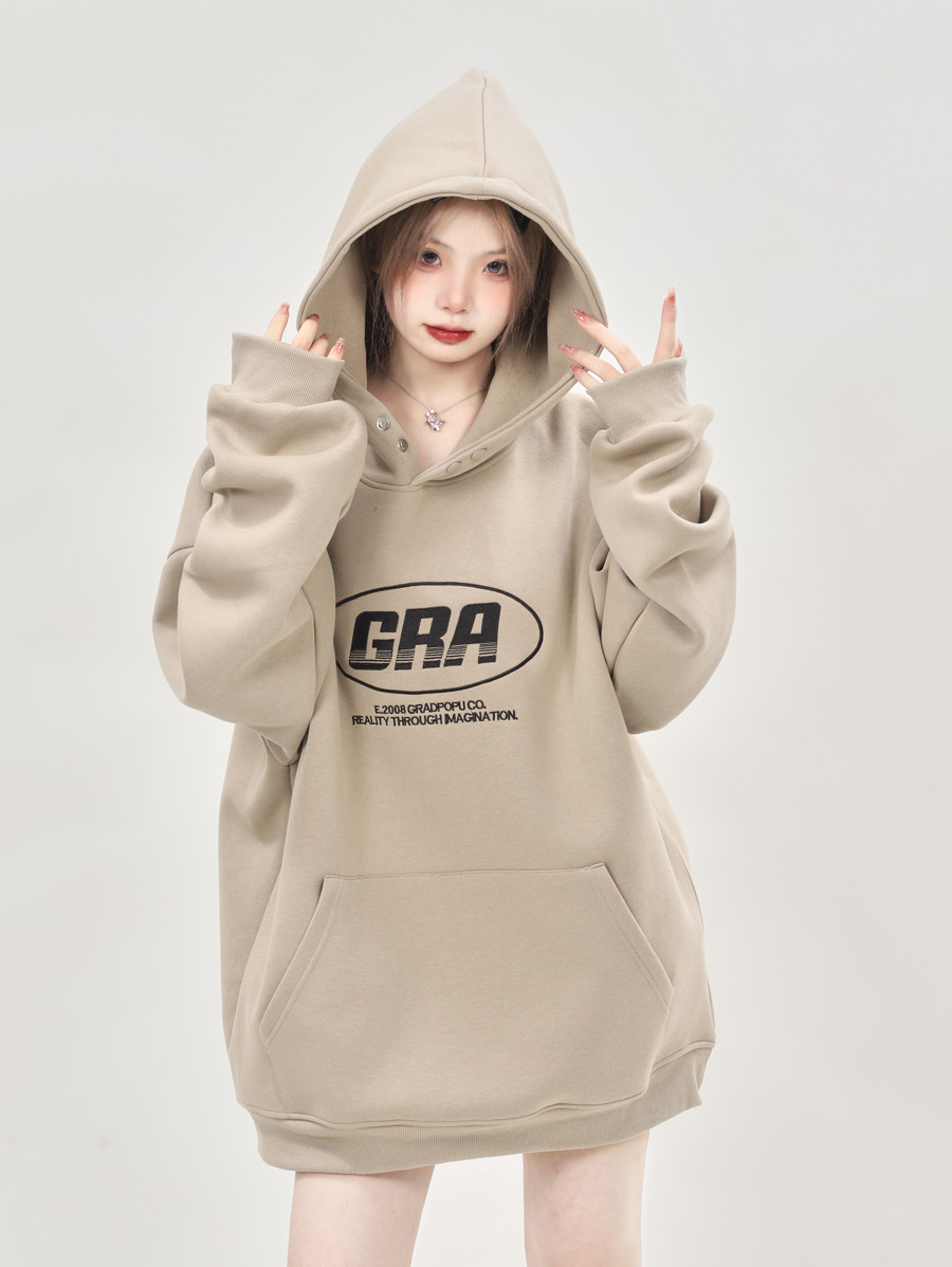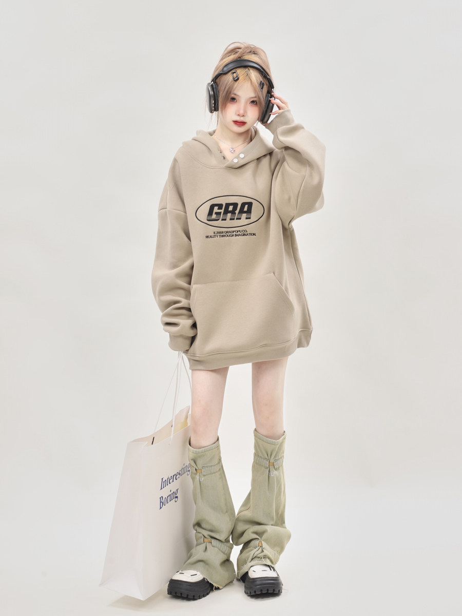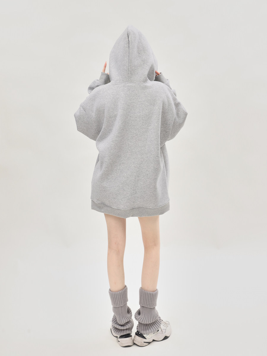 美式潮牌重磅oversize小眾設計感刺繡灰色厚棉T女春秋連帽外套上衣