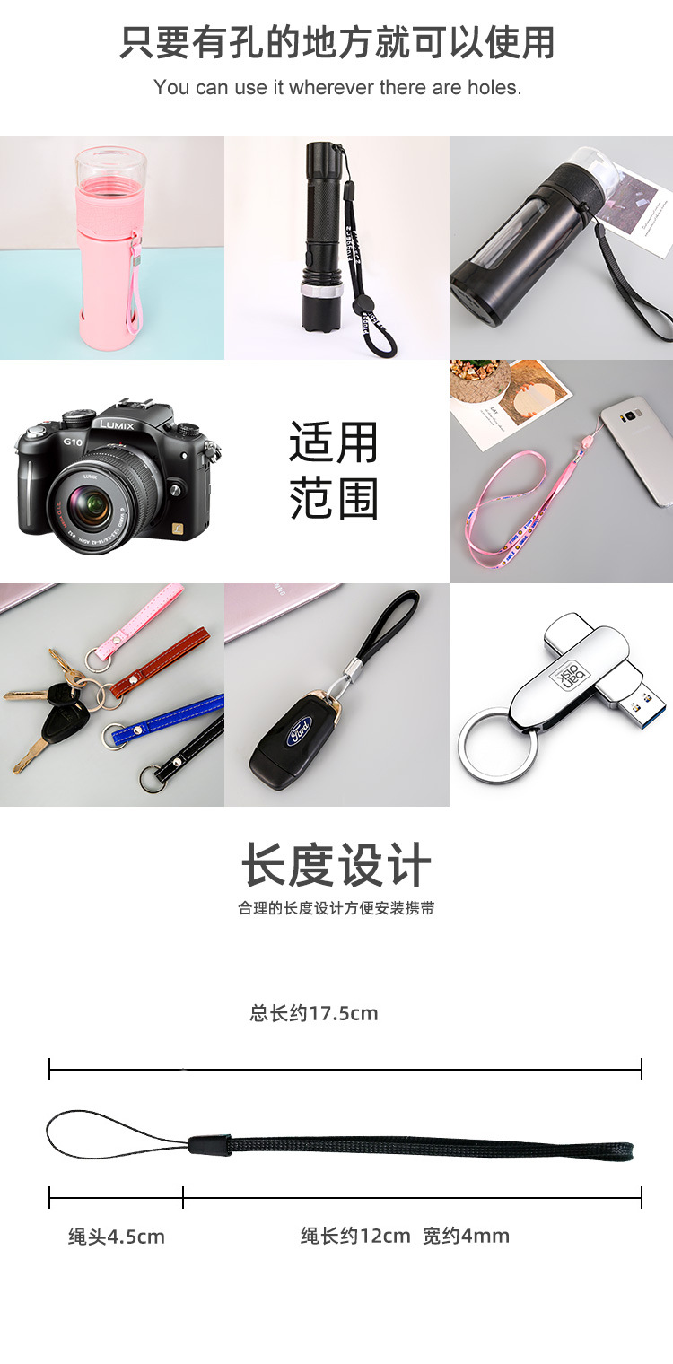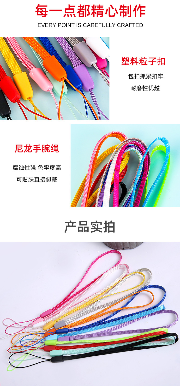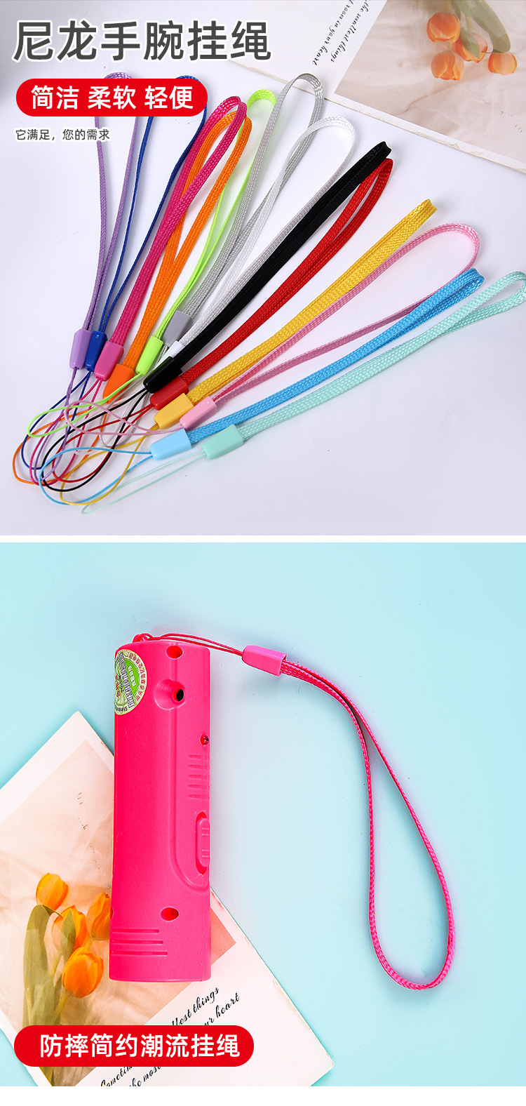 工厂批发彩色手机挂绳小风扇手电筒玩具吊绳短款尼龙手腕绳松子绳