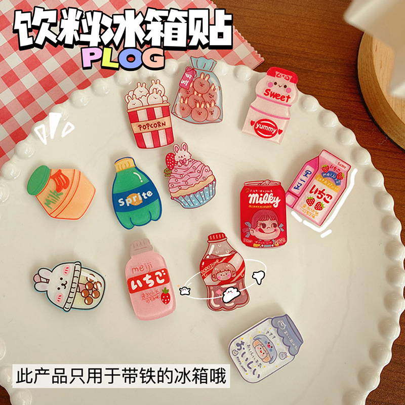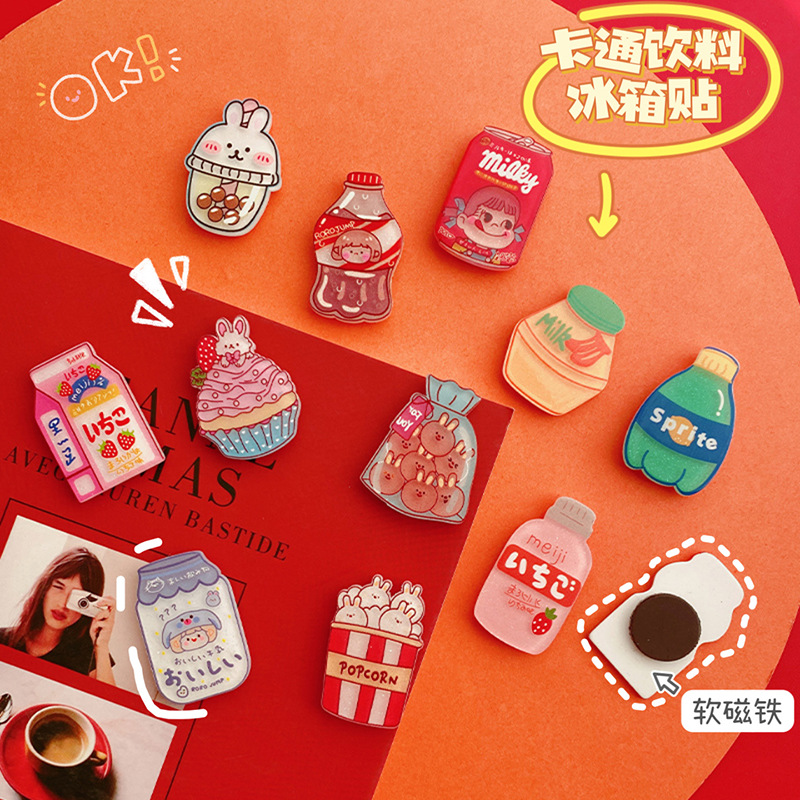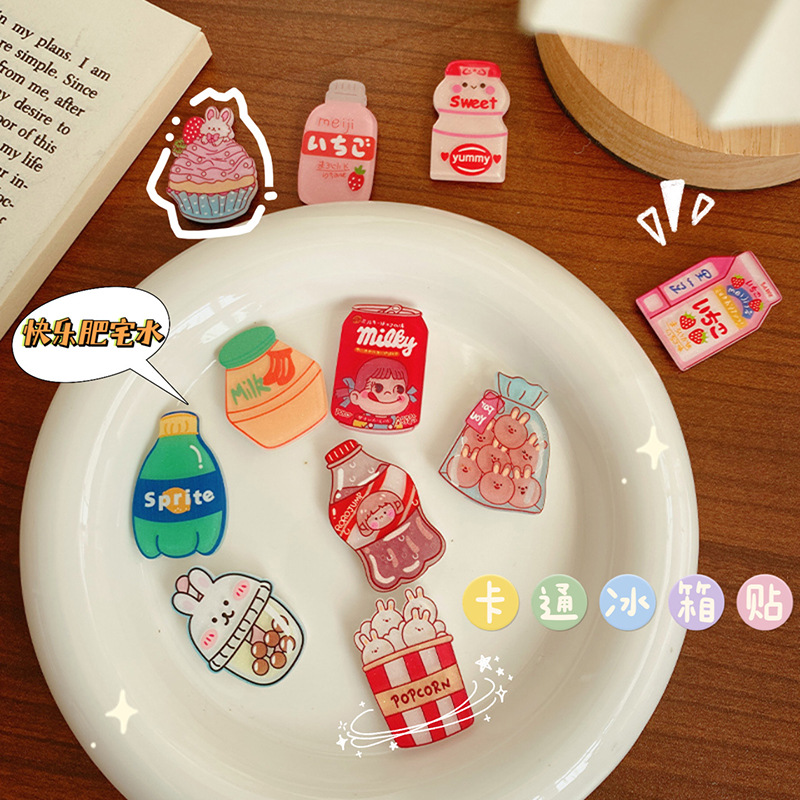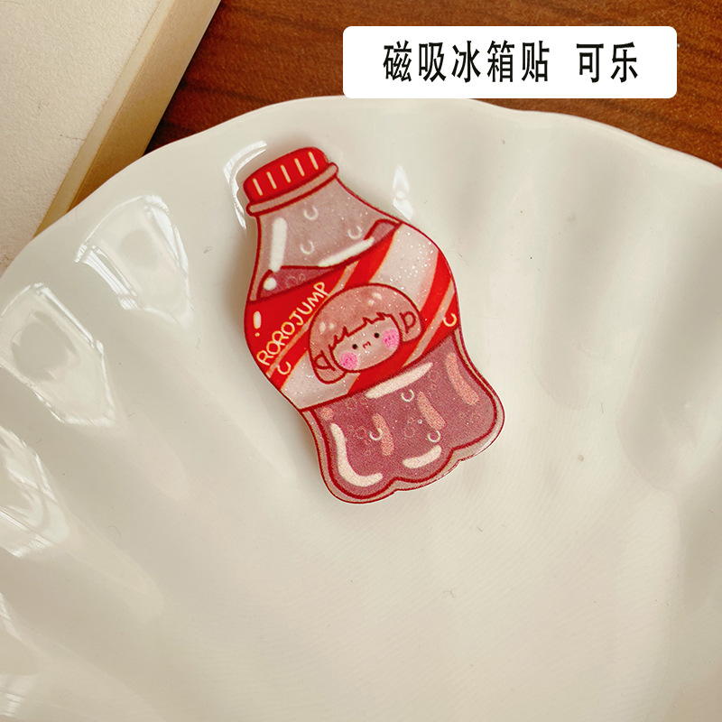 饮料瓶亚克力冰箱贴可爱卡通磁性冰箱贴文创异形滴胶软磁吸墙壁贴