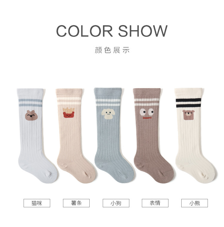 21婴儿袜子儿童男女童精梳棉春秋过及膝中长筒卡通松口不勒腿袜子