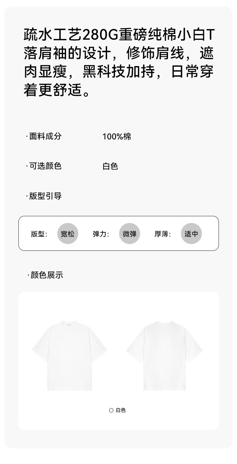BODYDREAM疏水工藝280克重磅純棉白色T恤男寬鬆圓領基礎短袖T恤