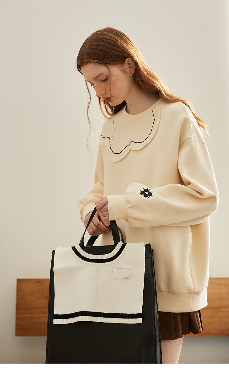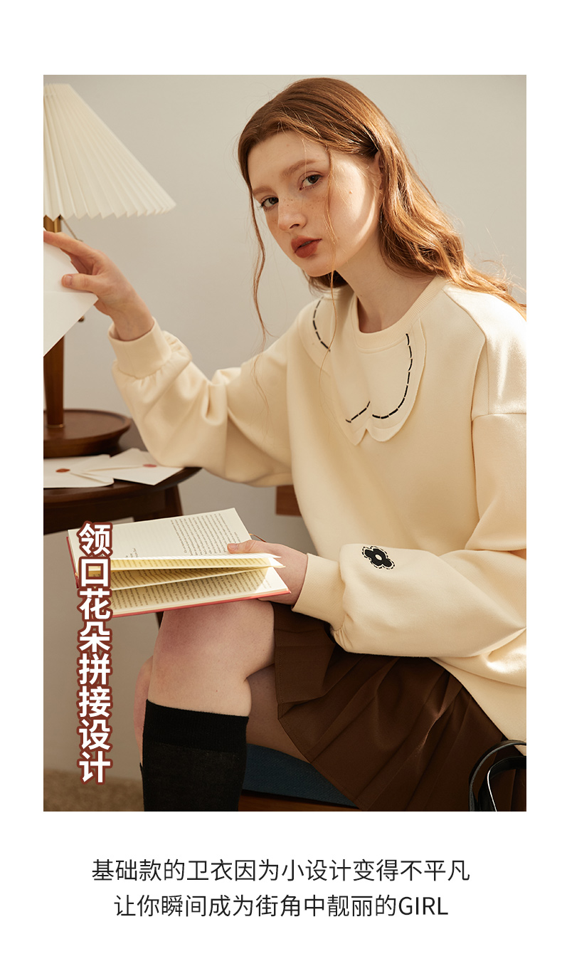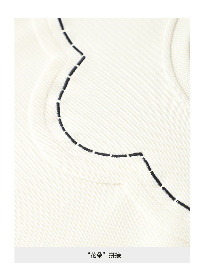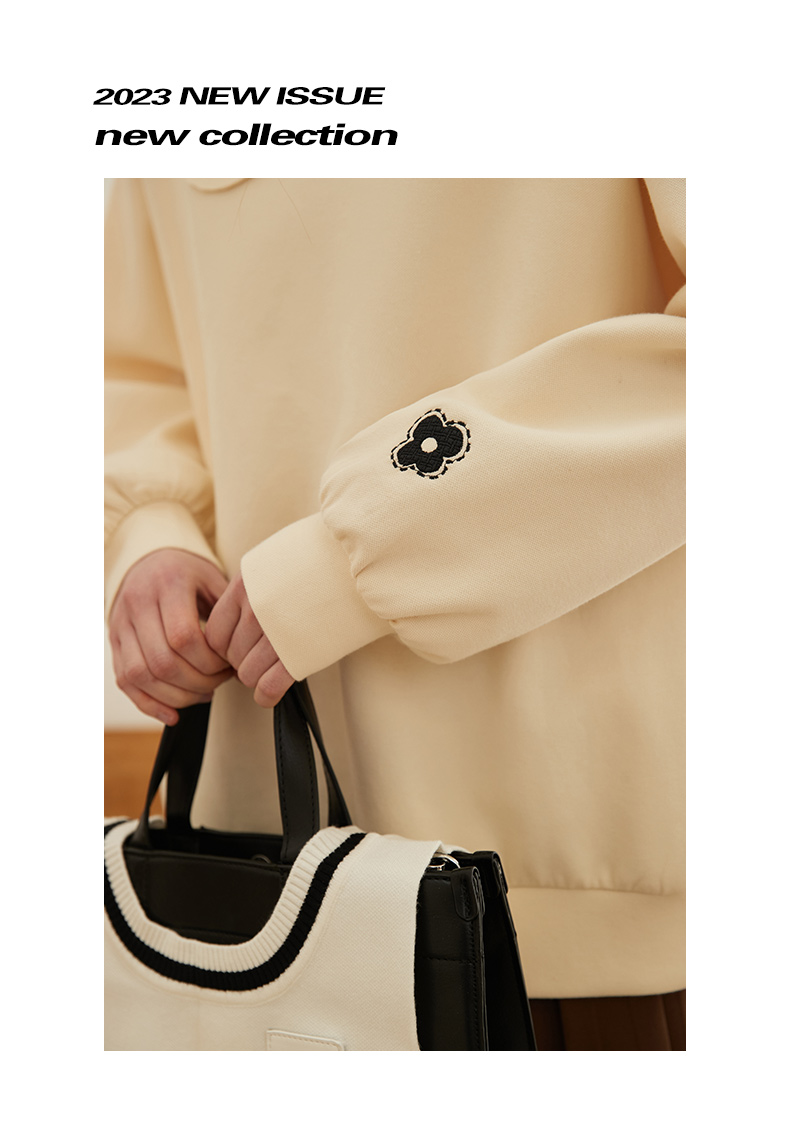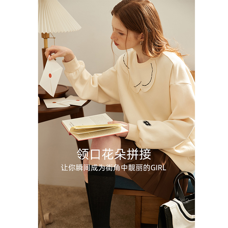 庫恩瑪維小眾拼接刺繡長袖無帽衛衣2023新款早秋別致內搭休閒上衣