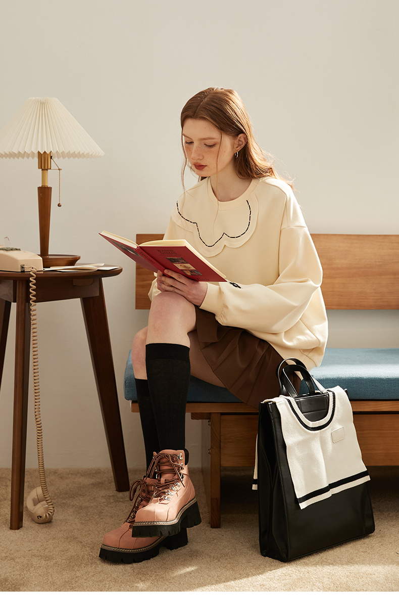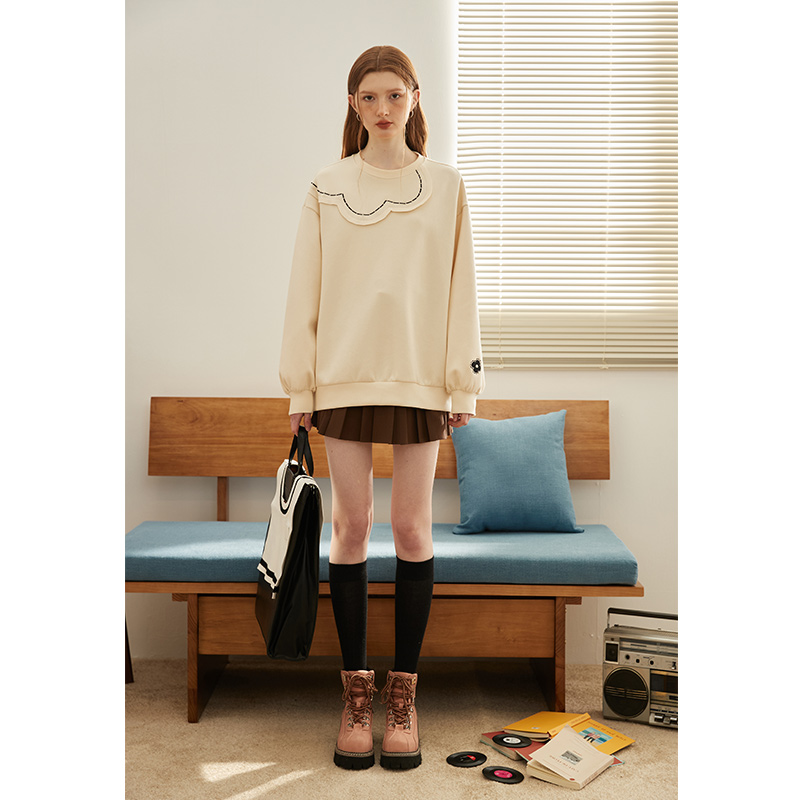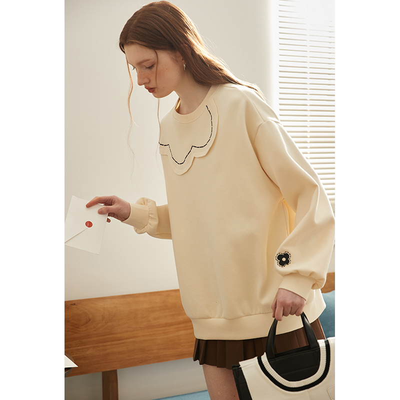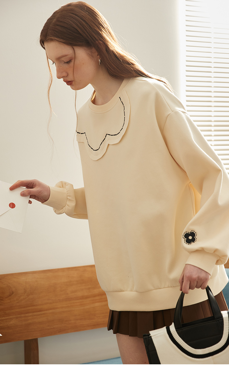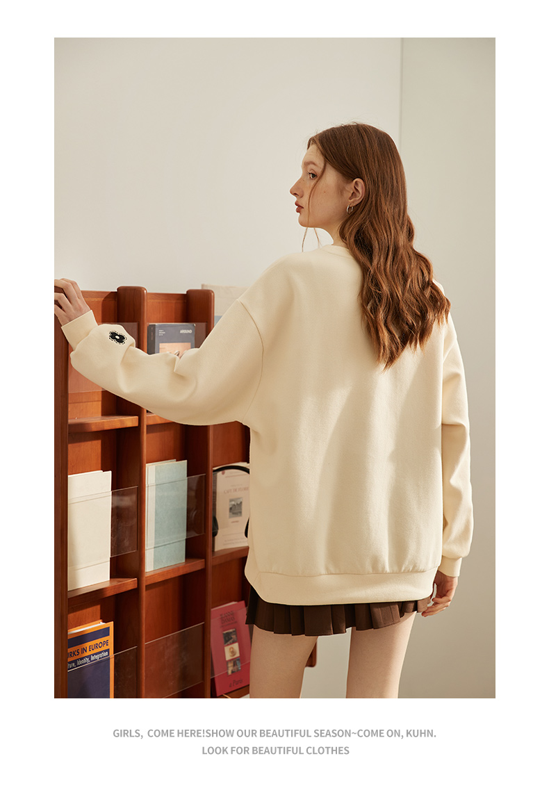 庫恩瑪維小眾拼接刺繡長袖無帽衛衣2023新款早秋別致內搭休閒上衣
