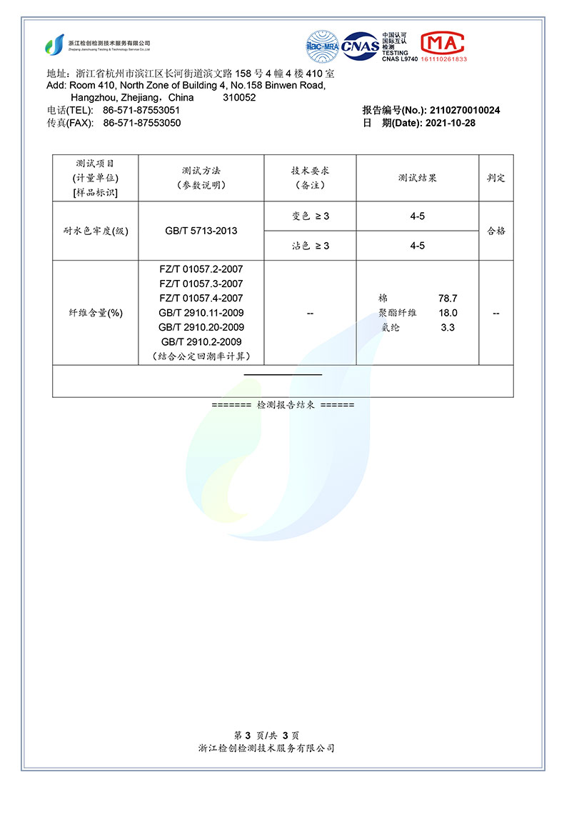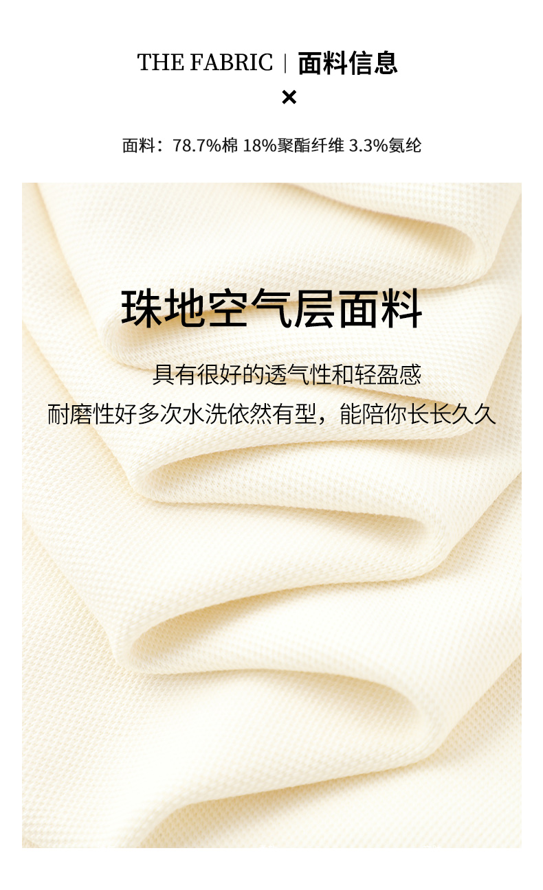 材質成分 棉78.7% 聚酯纖維18% 聚氨酯彈性纖維(氨綸)3.3%