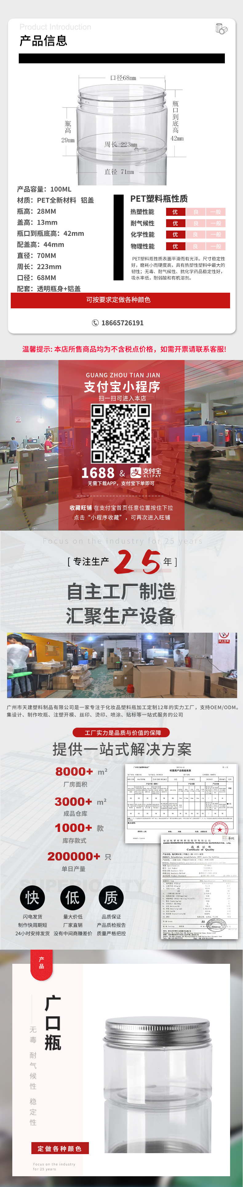 工厂现货销售100mlPET塑料广口瓶100g克膏霜瓶配铝盖面霜膏体瓶