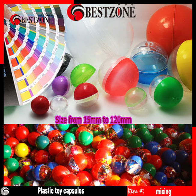 我司生产各种不同大小的塑料球(扭蛋,塑料空壳),大小有28MM,30MM,32mm 35MM,38MM,39MM,40MM,45MM,50MM,55M,58MM,65MM,70MM,85MM,92MM,96MM,100MM, 120MM,127MM