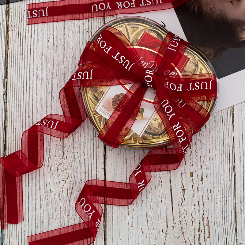 2.5cm宽透明雪纱带缎带手工DIY礼品蛋糕鲜花包装彩带花艺印字丝带